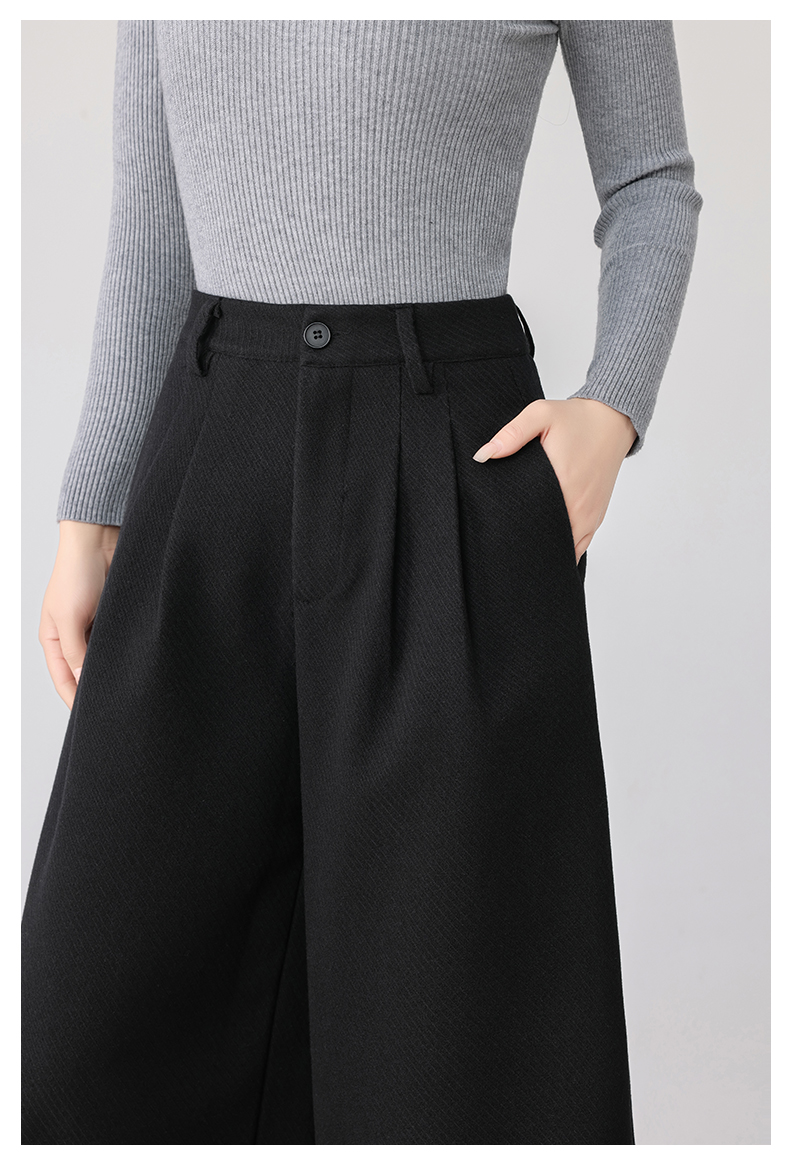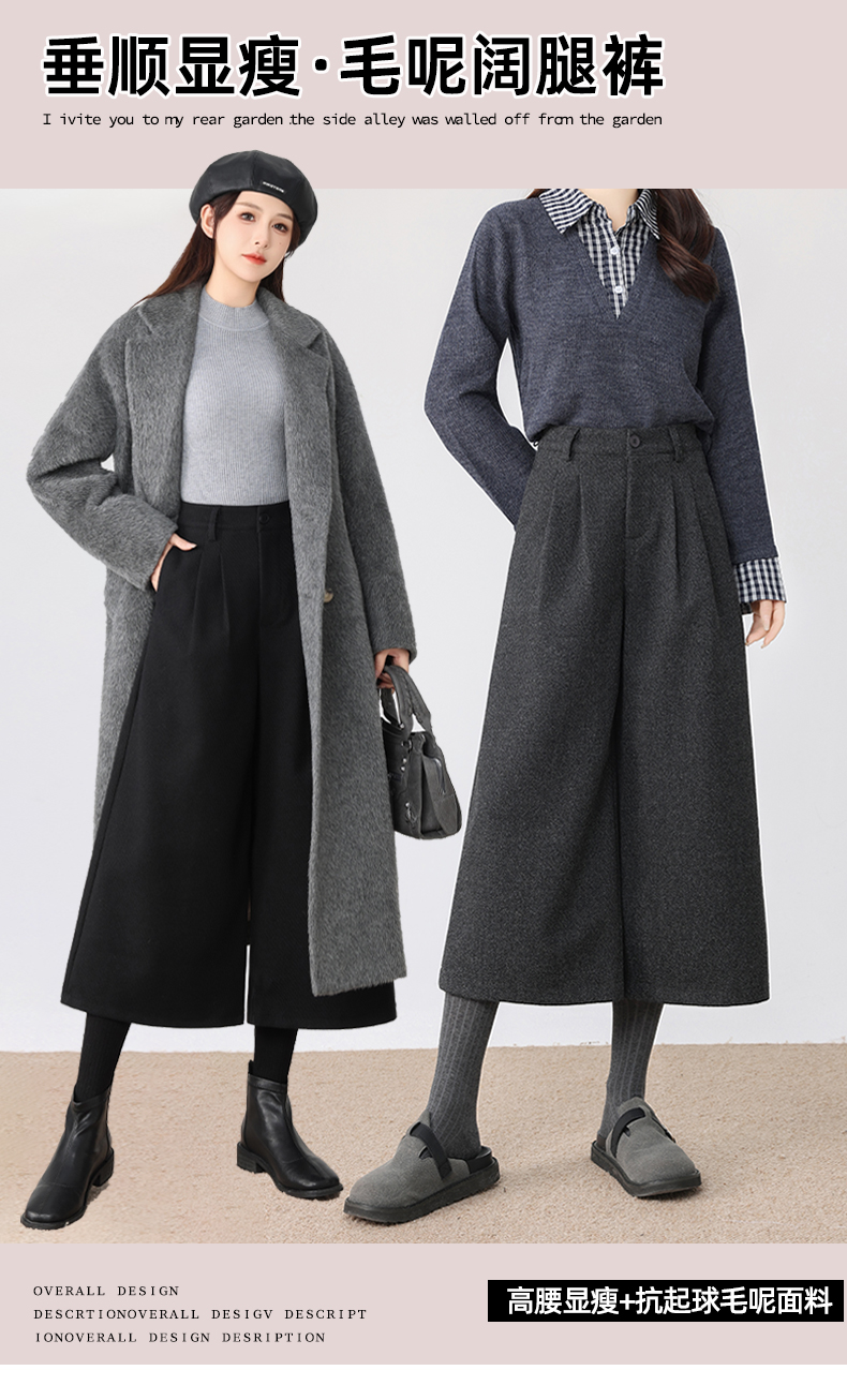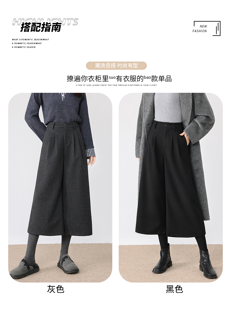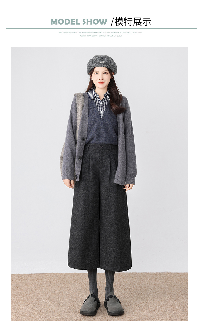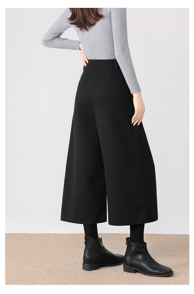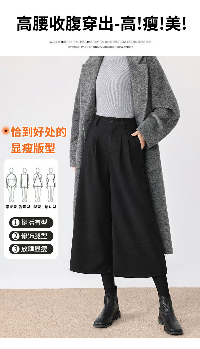 秋冬新款软糯毛呢阔腿裤高腰七分休闲裤高端斜纹毛呢靴裤百搭女裤