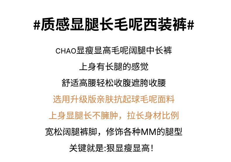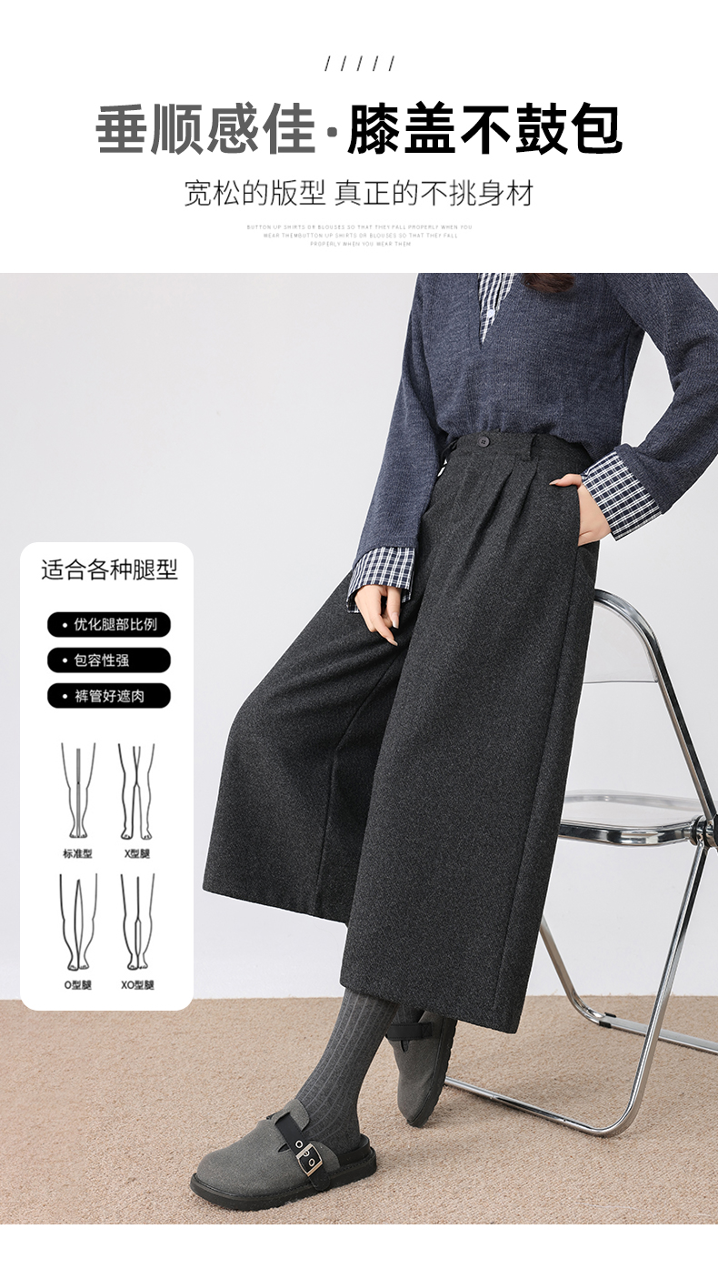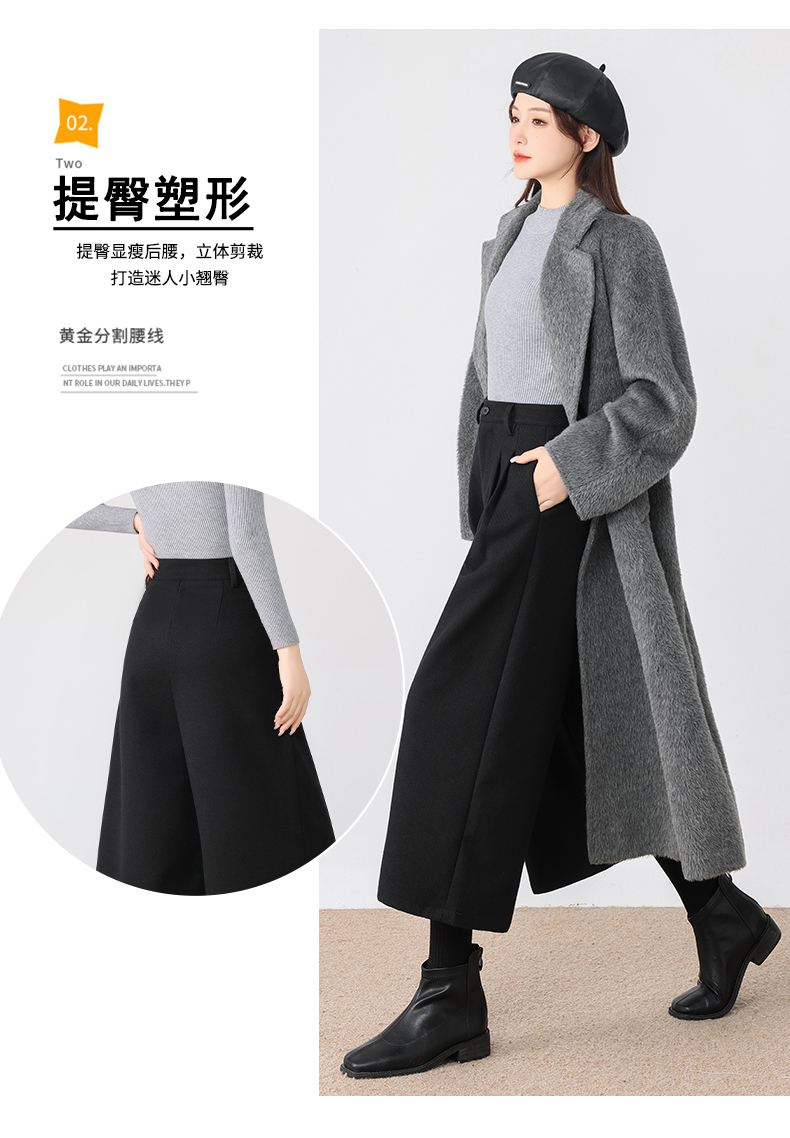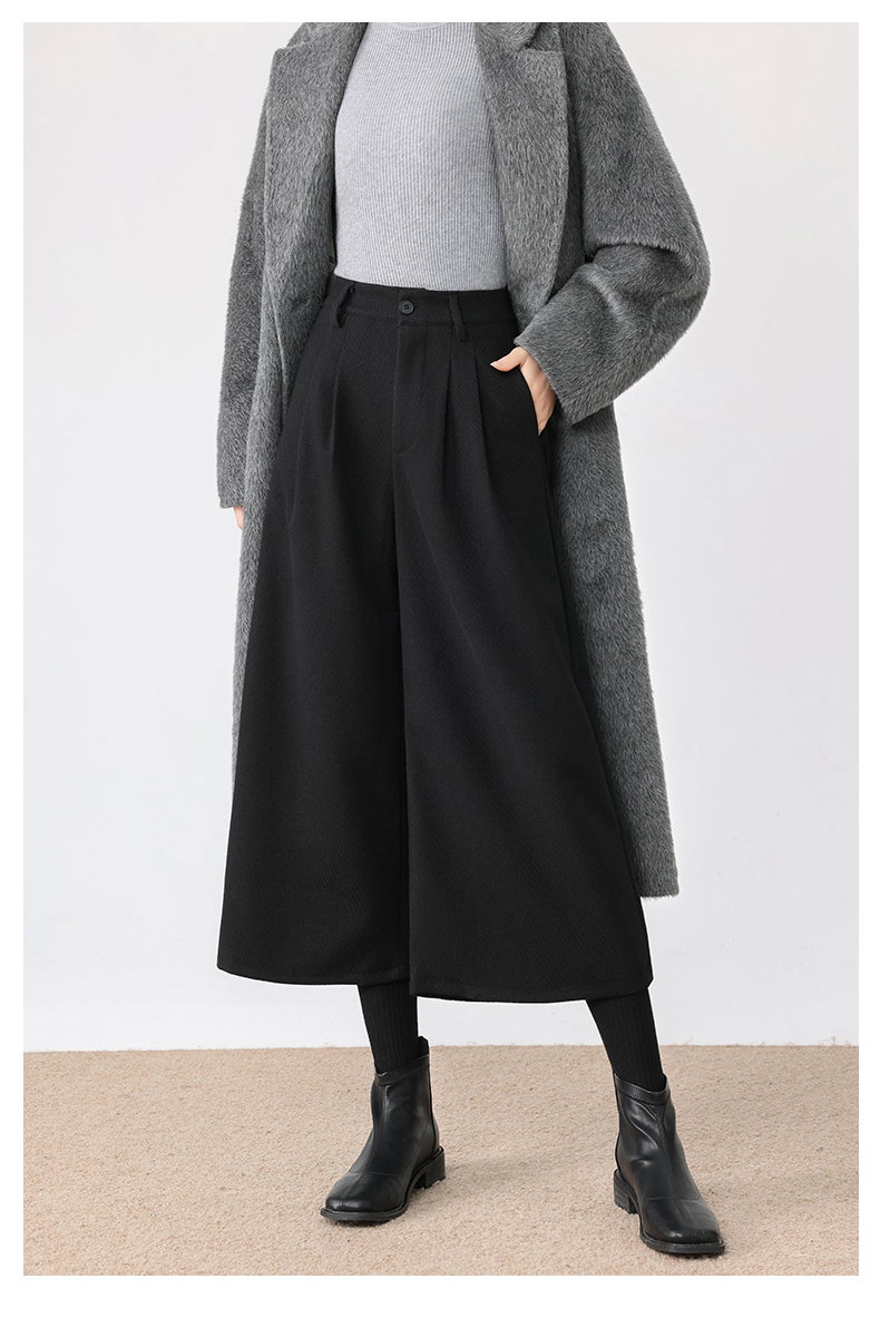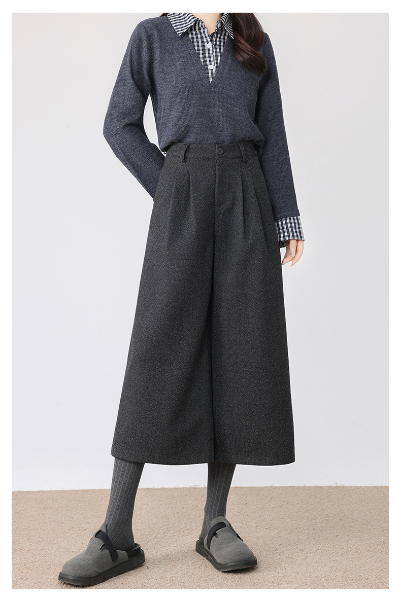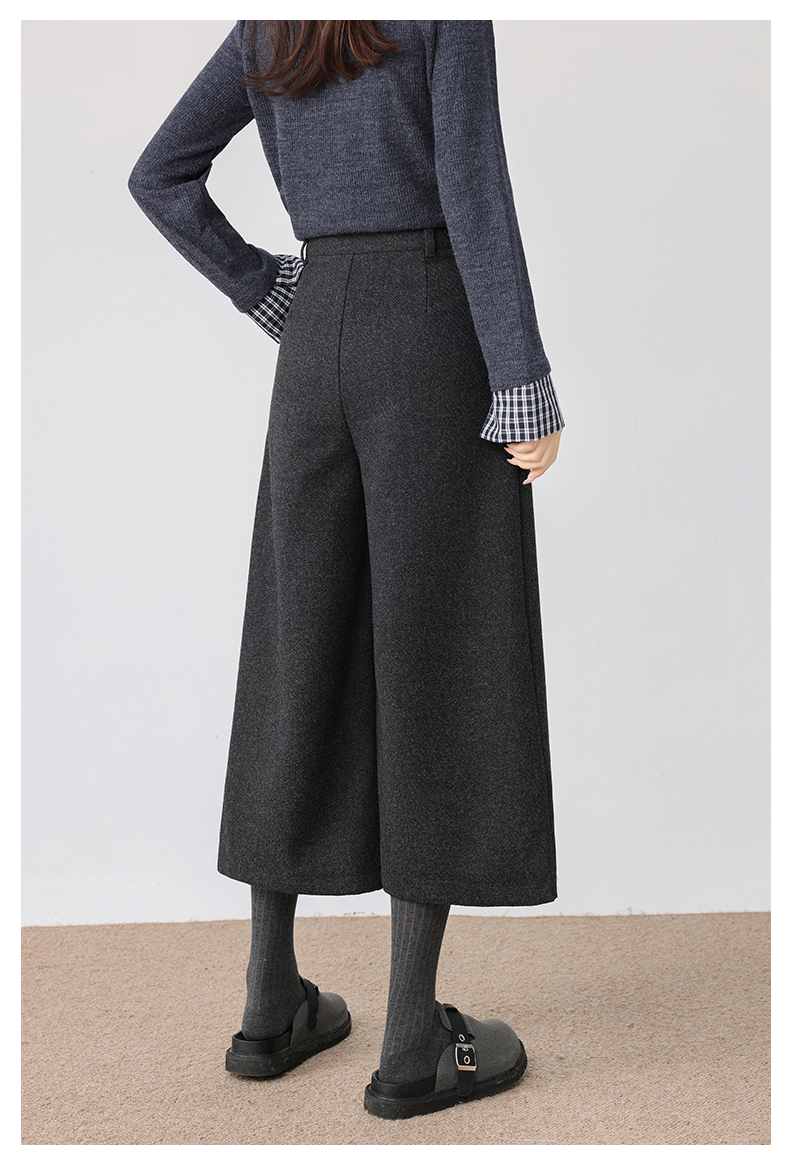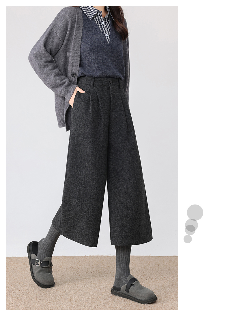 秋冬新款软糯毛呢阔腿裤高腰七分休闲裤高端斜纹毛呢靴裤百搭女裤