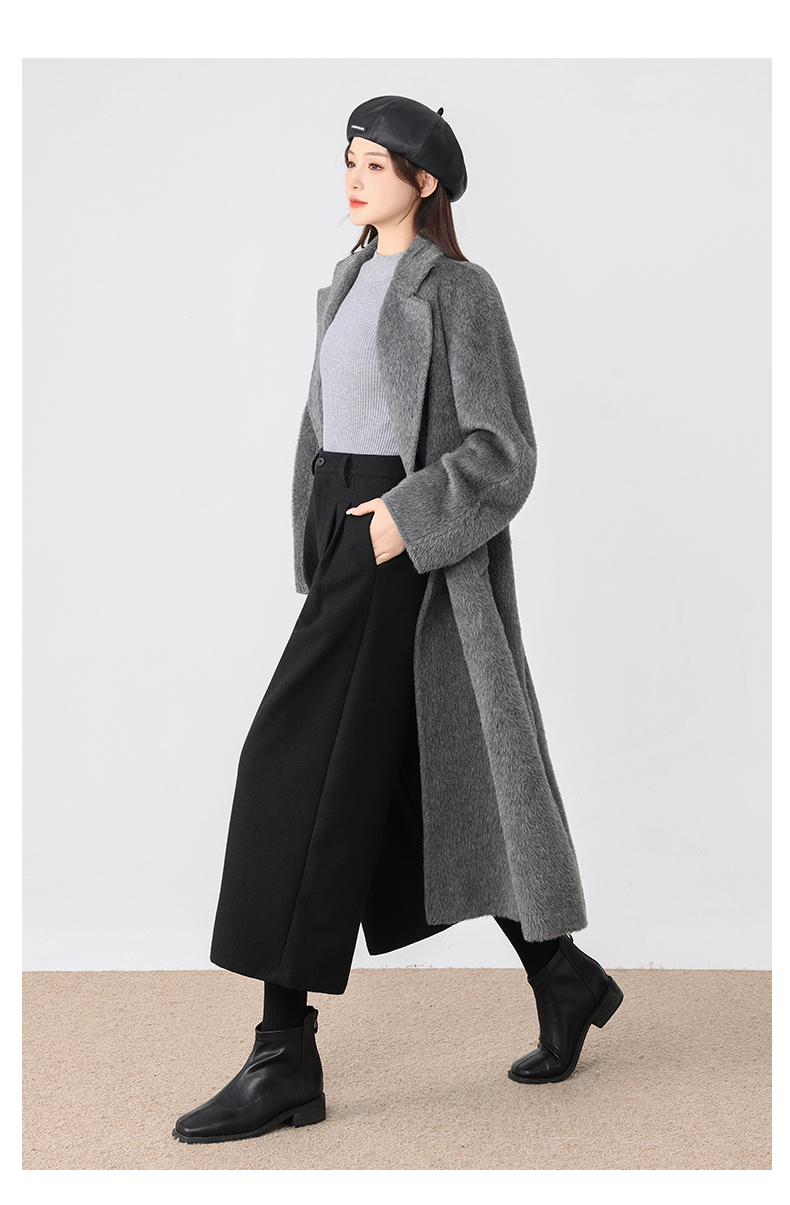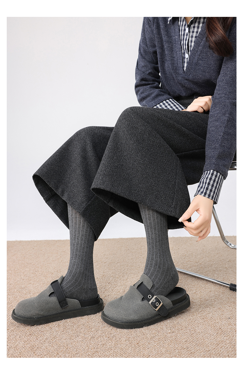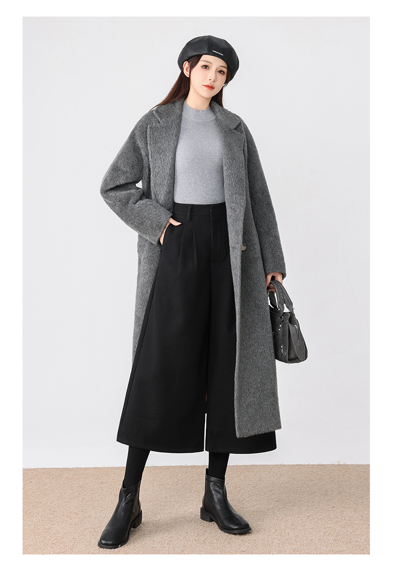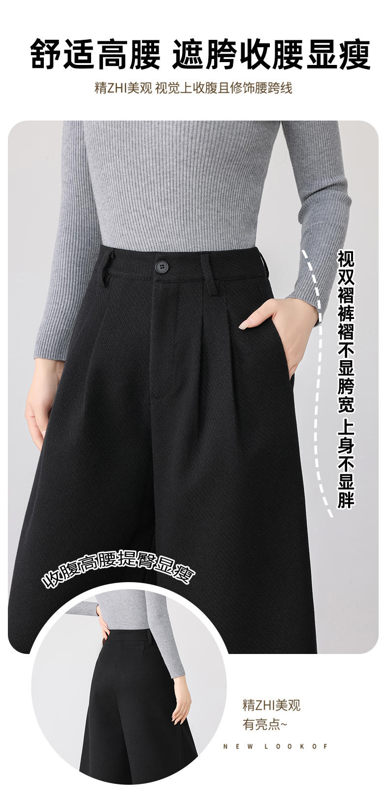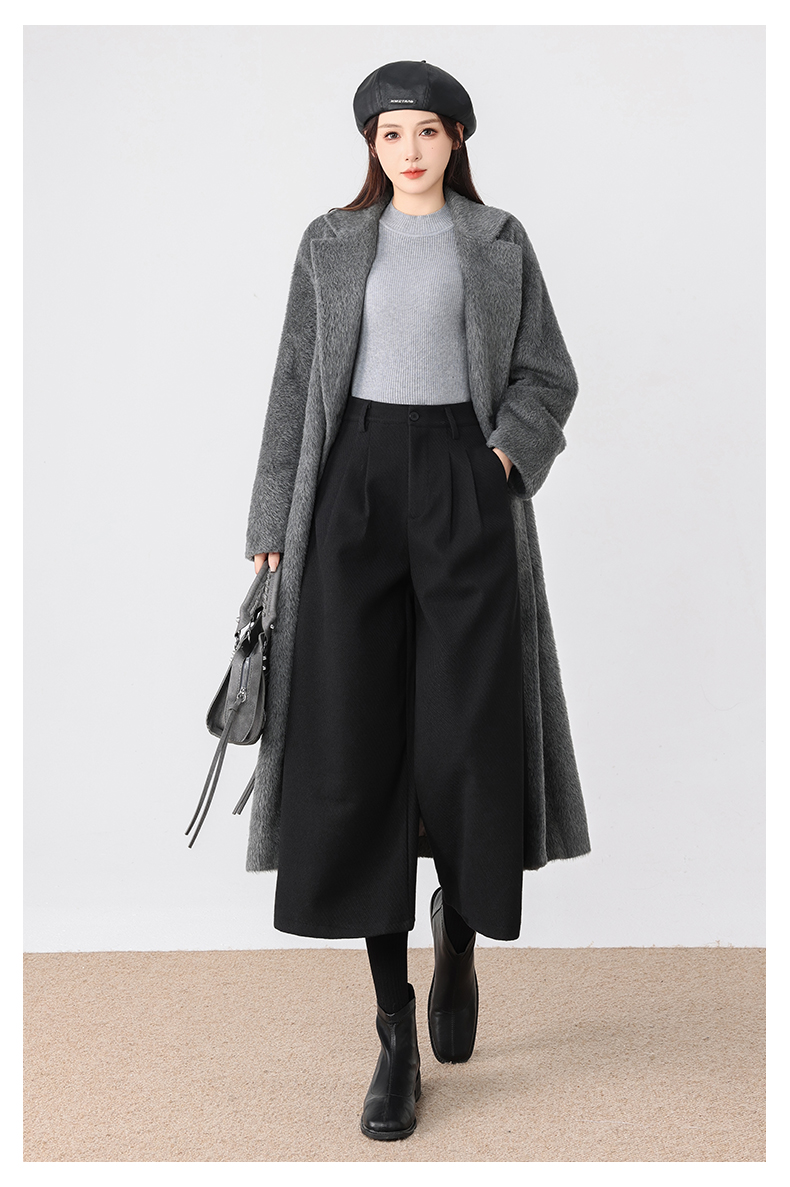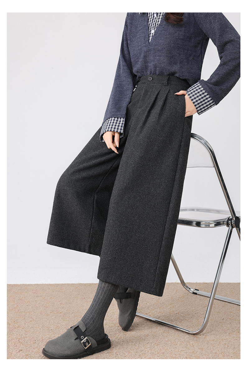 秋冬新款软糯毛呢阔腿裤高腰七分休闲裤高端斜纹毛呢靴裤百搭女裤