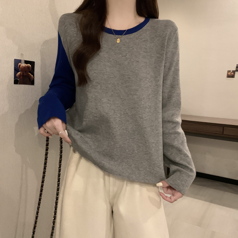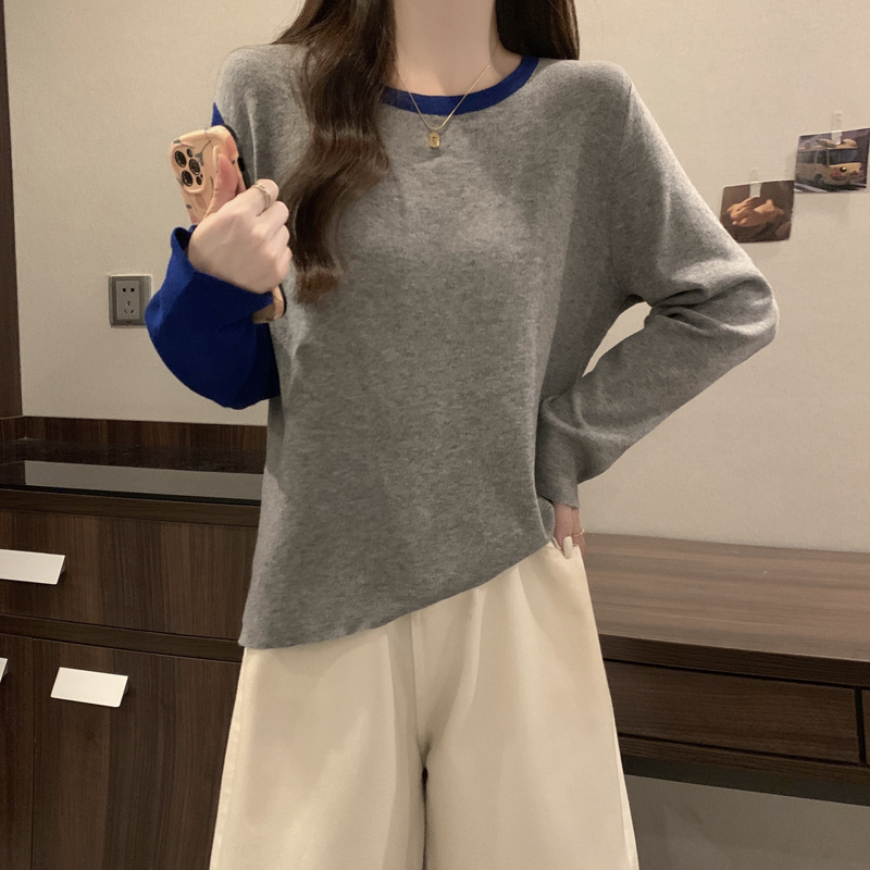 实拍大码女装秋冬新款针织衫胖妹妹减龄撞色百搭宽松毛衣胖mm上衣