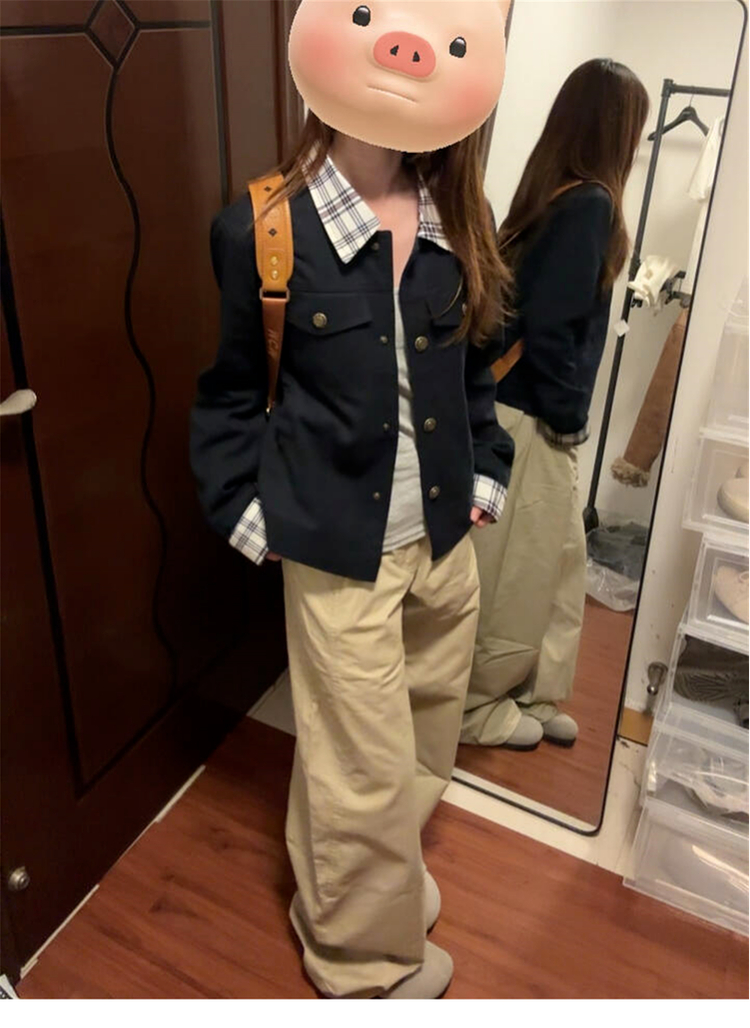 源头工厂来版定制—格子拼接翻领外套秋季设计感休闲百搭夹克上衣