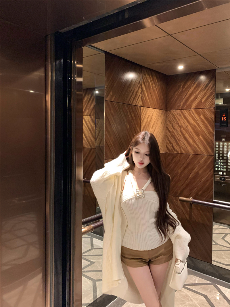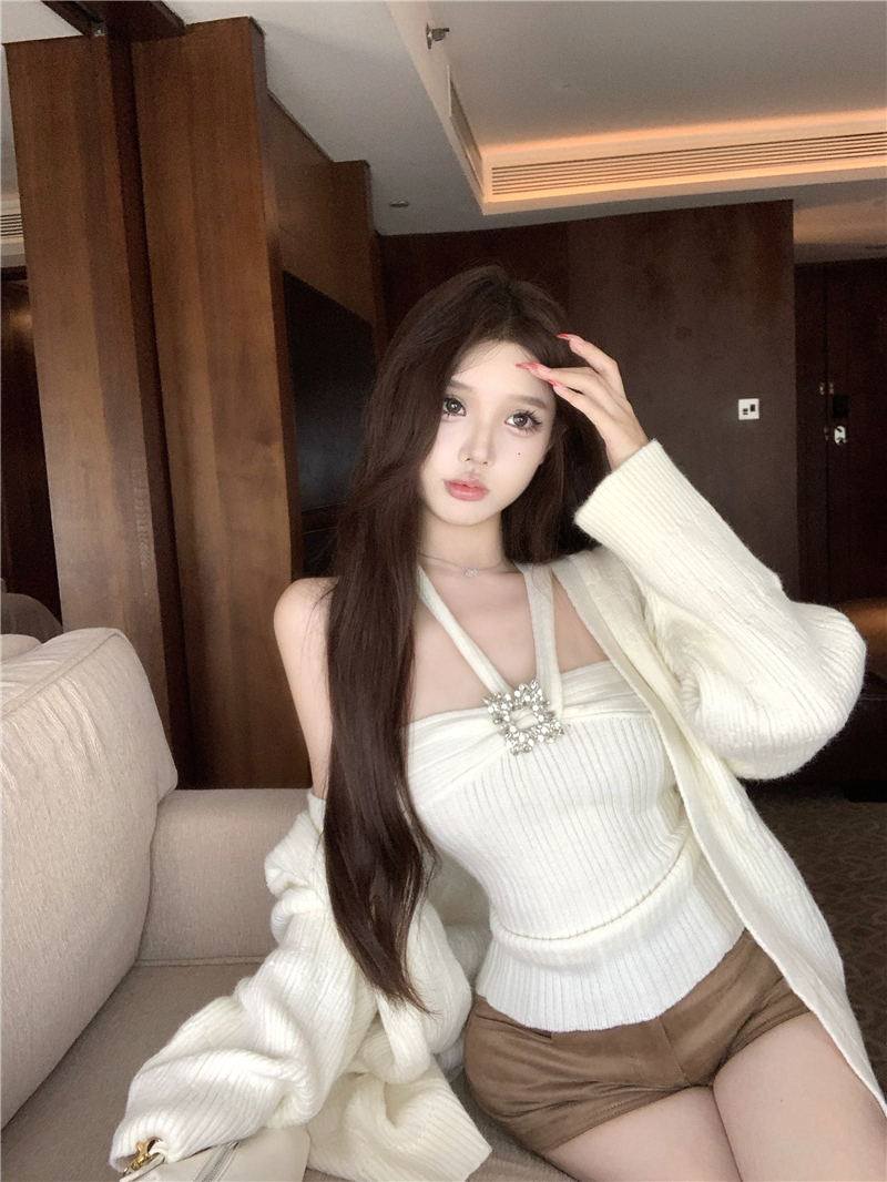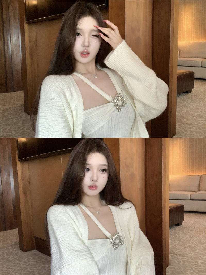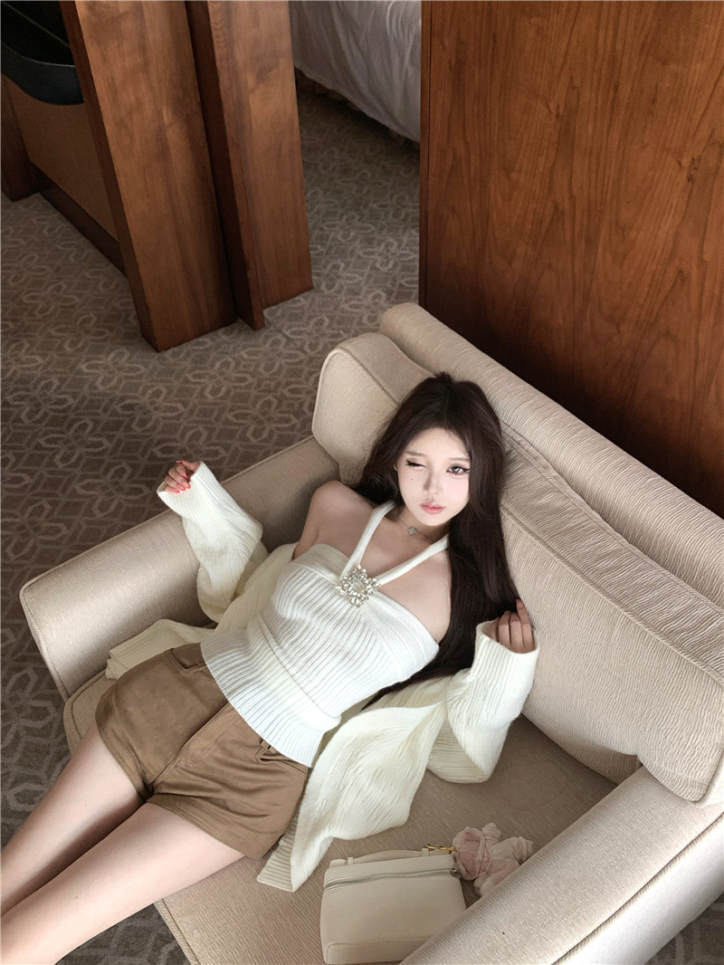 实拍 soft 温柔奶芙镶钻慵懒羊毛开衫百搭显瘦短裤
