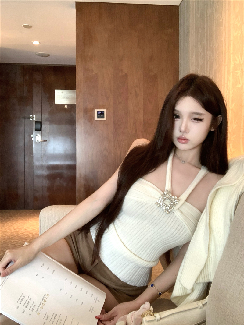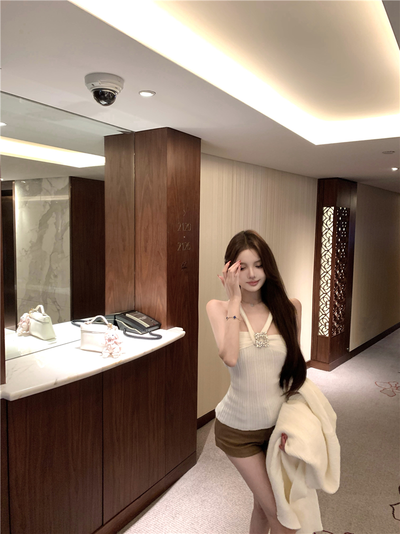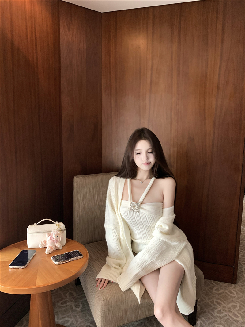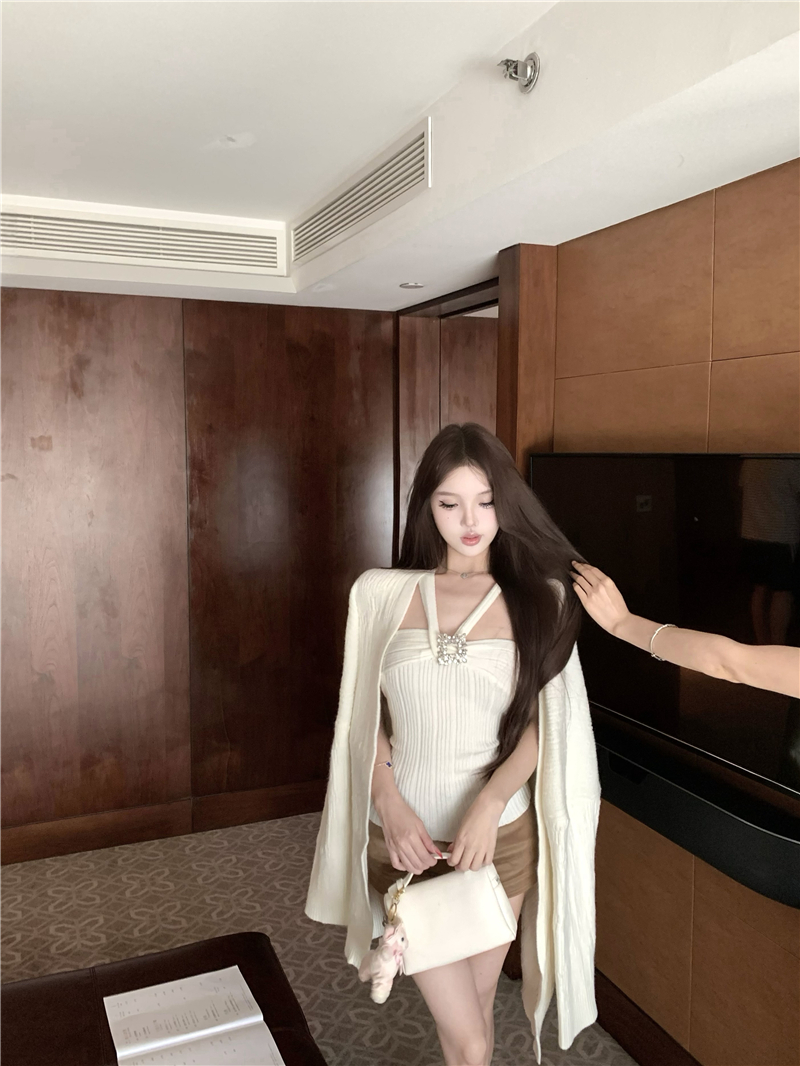 实拍 soft 温柔奶芙镶钻慵懒羊毛开衫百搭显瘦短裤