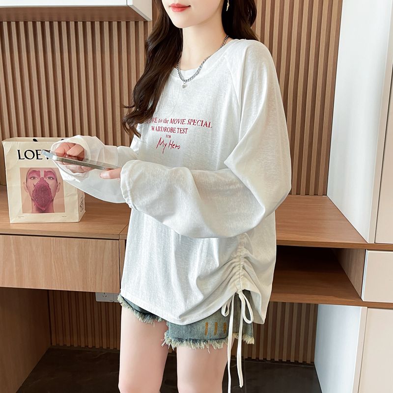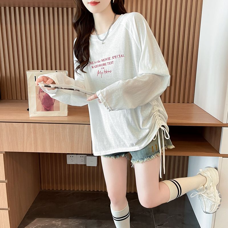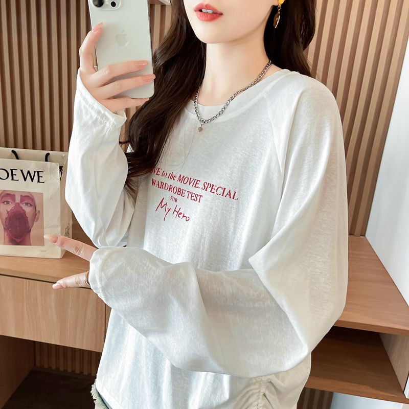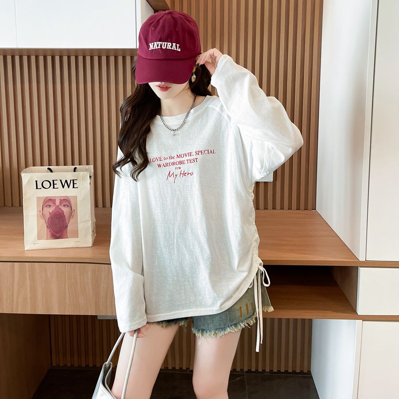 实拍50棉雪花棉长袖T恤女春秋新款休闲韩版宽松上衣