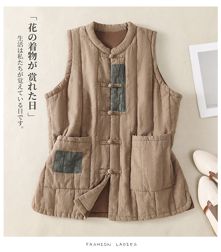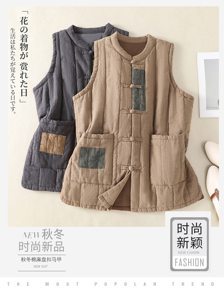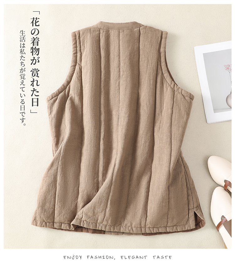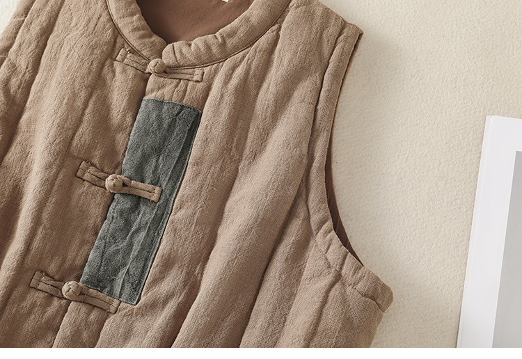 实拍棉麻加厚马甲2025冬急新款禅意女装宽松棉麻夹棉保暖坎肩