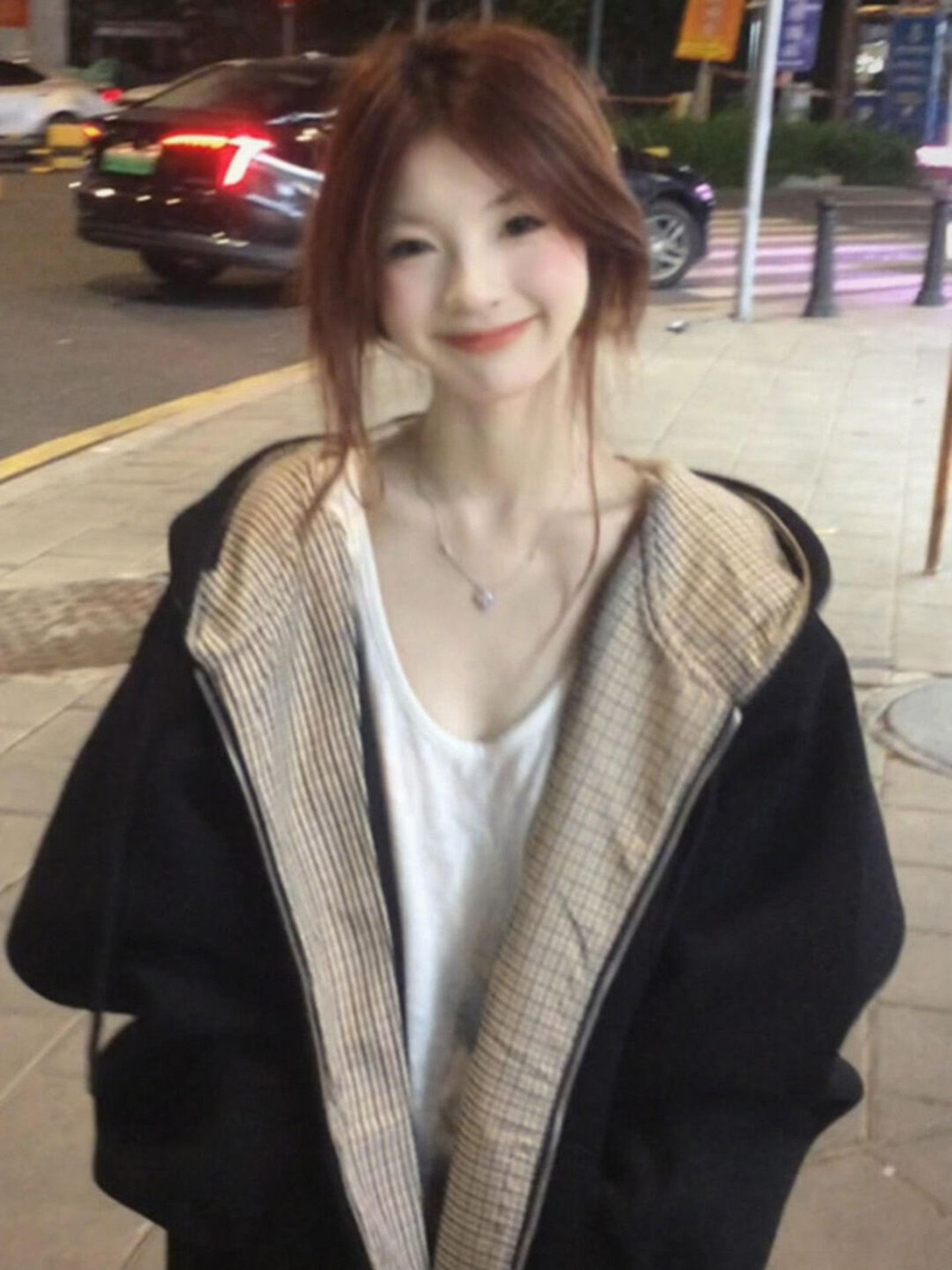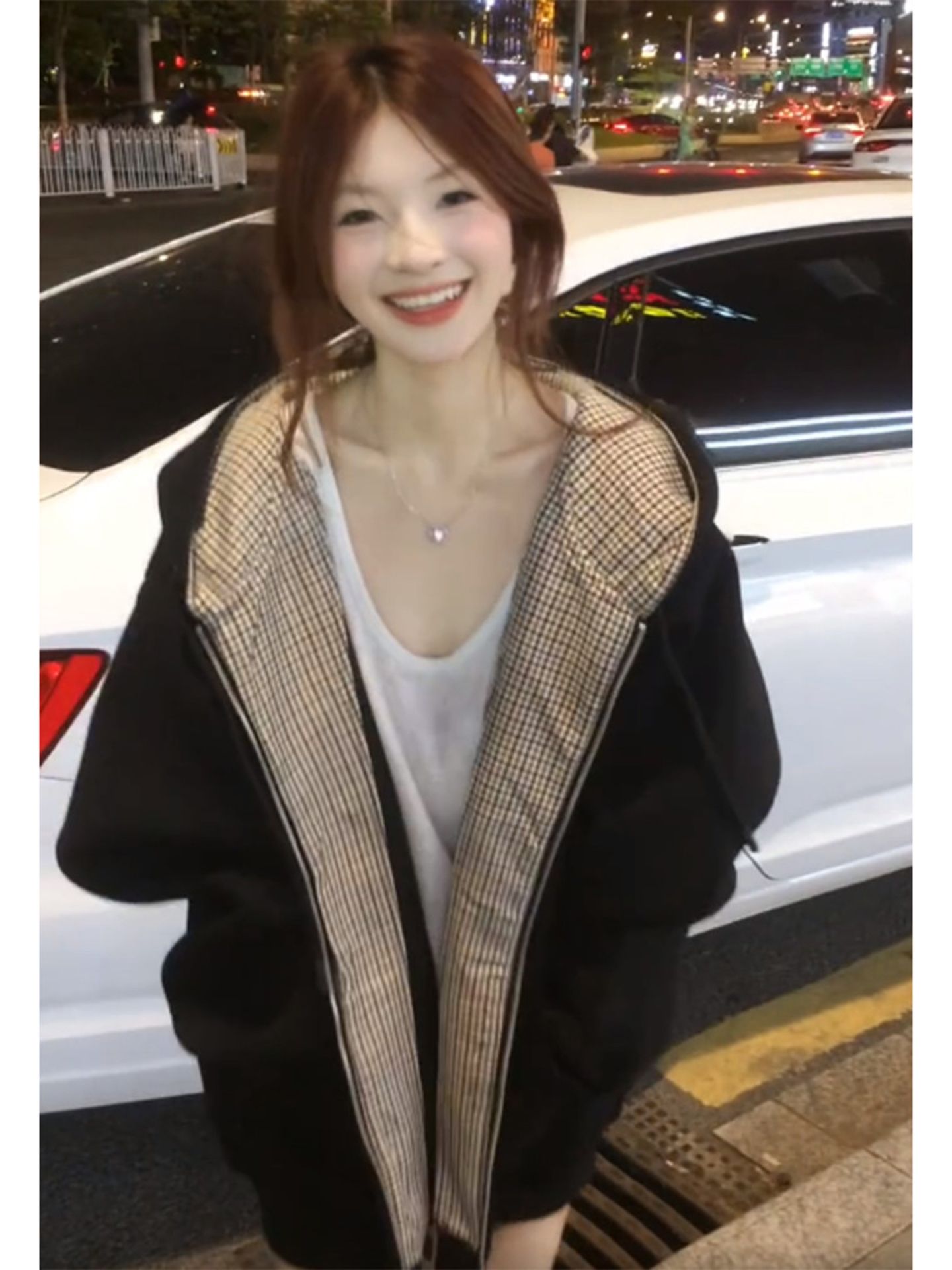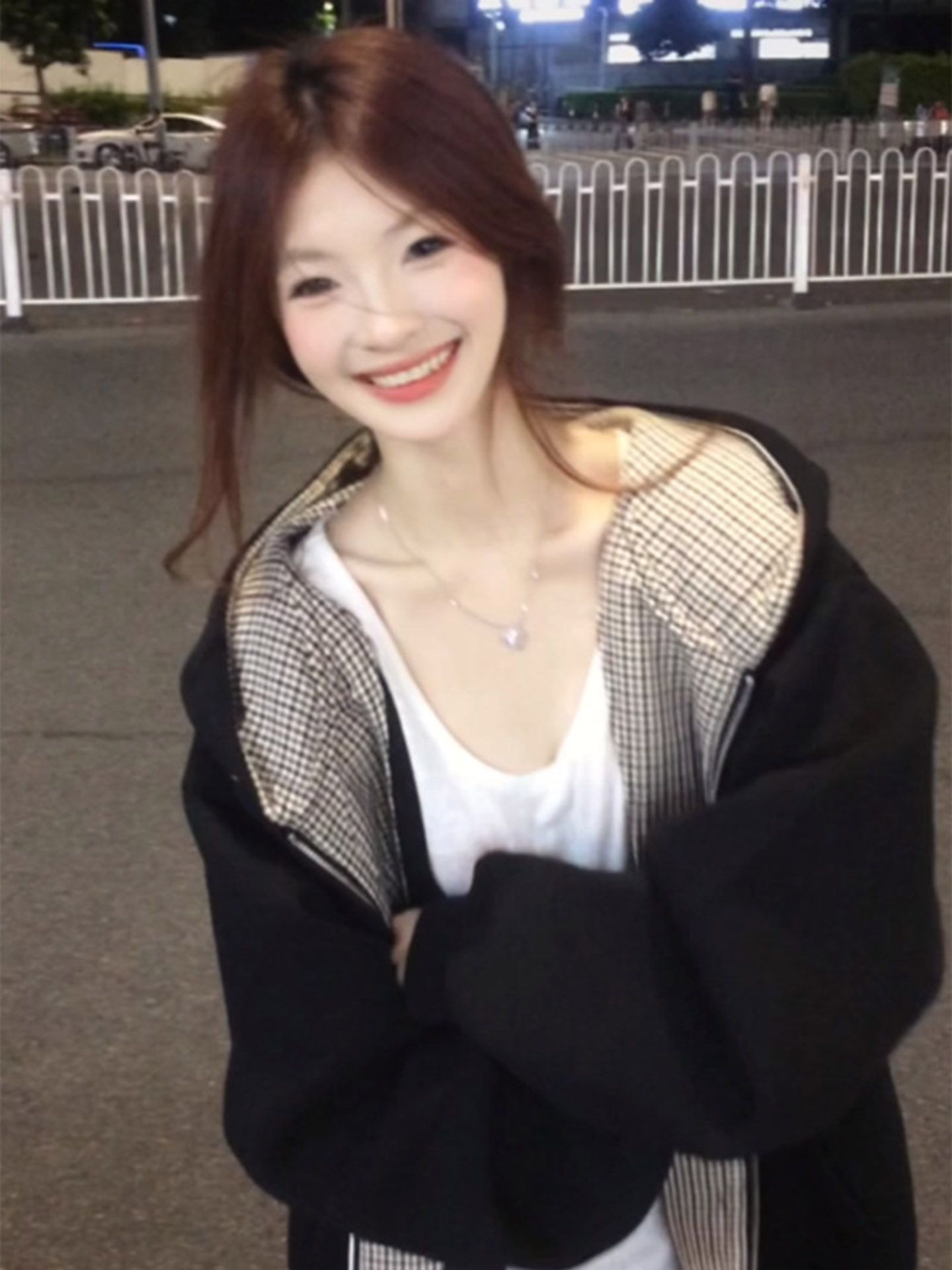 刺绣+纯棉华棉复合牛奶丝特大码300斤格纹连帽卫衣女