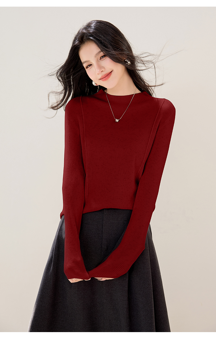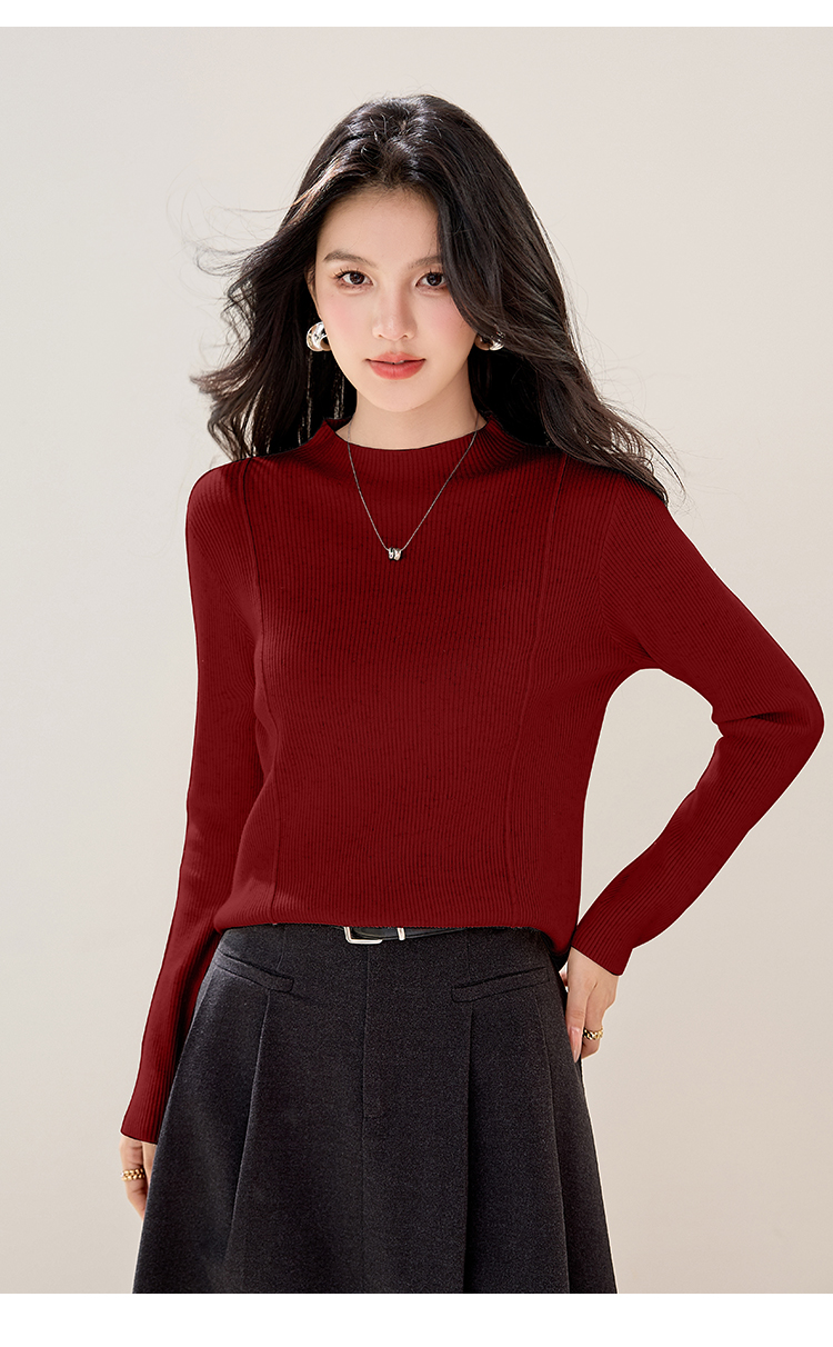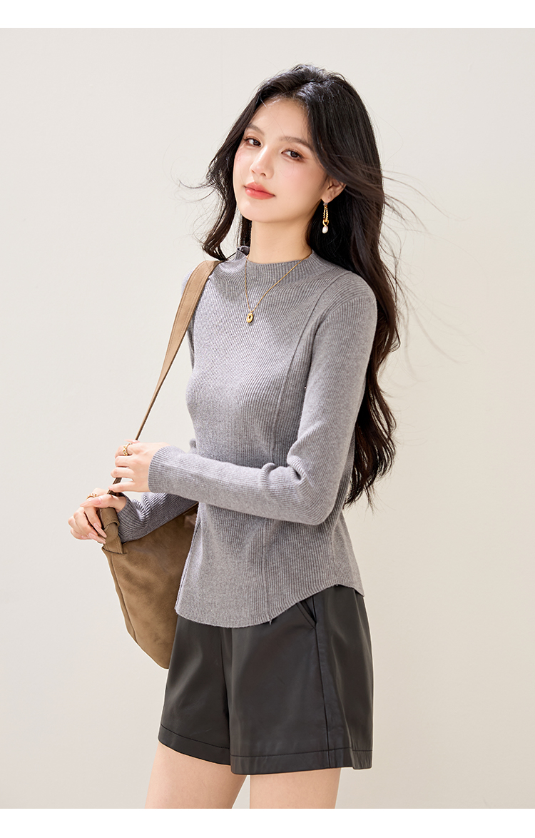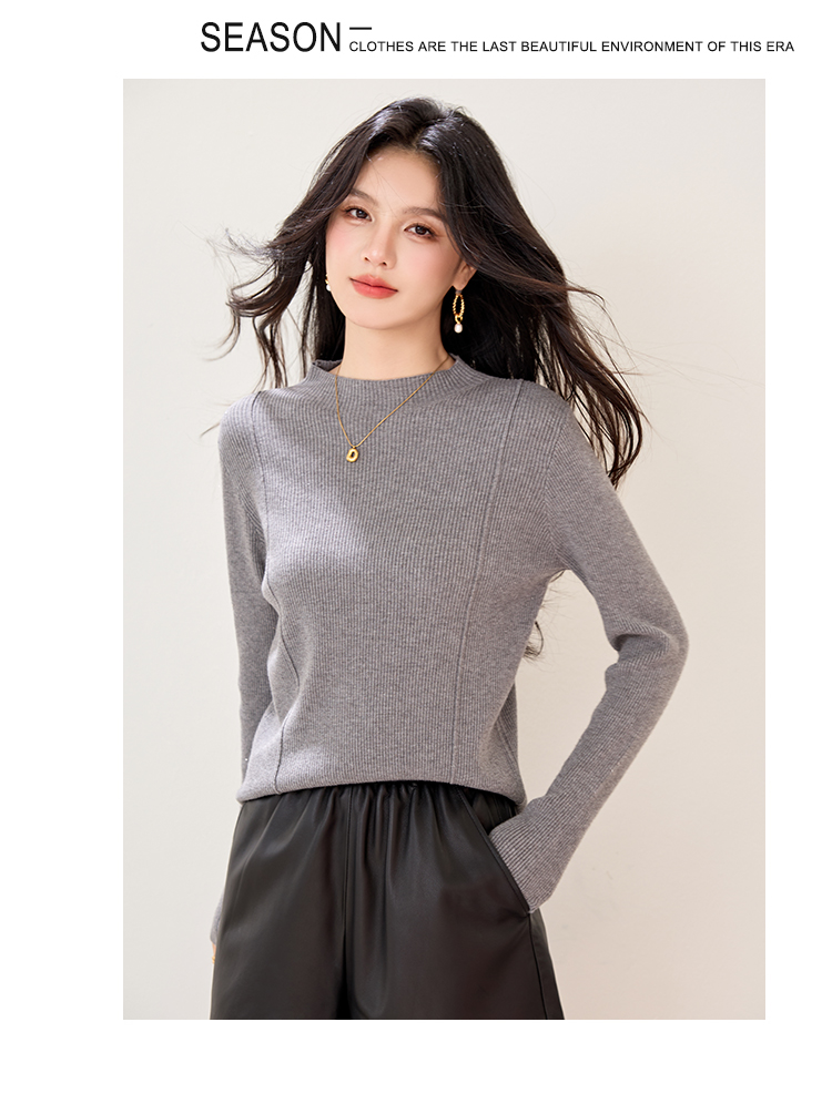 实拍新款秋冬针织衫女半高领打底衫女韩版燕尾纯色长袖针织毛衣女