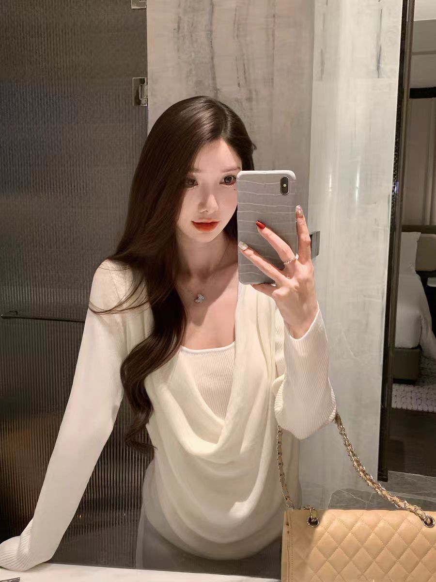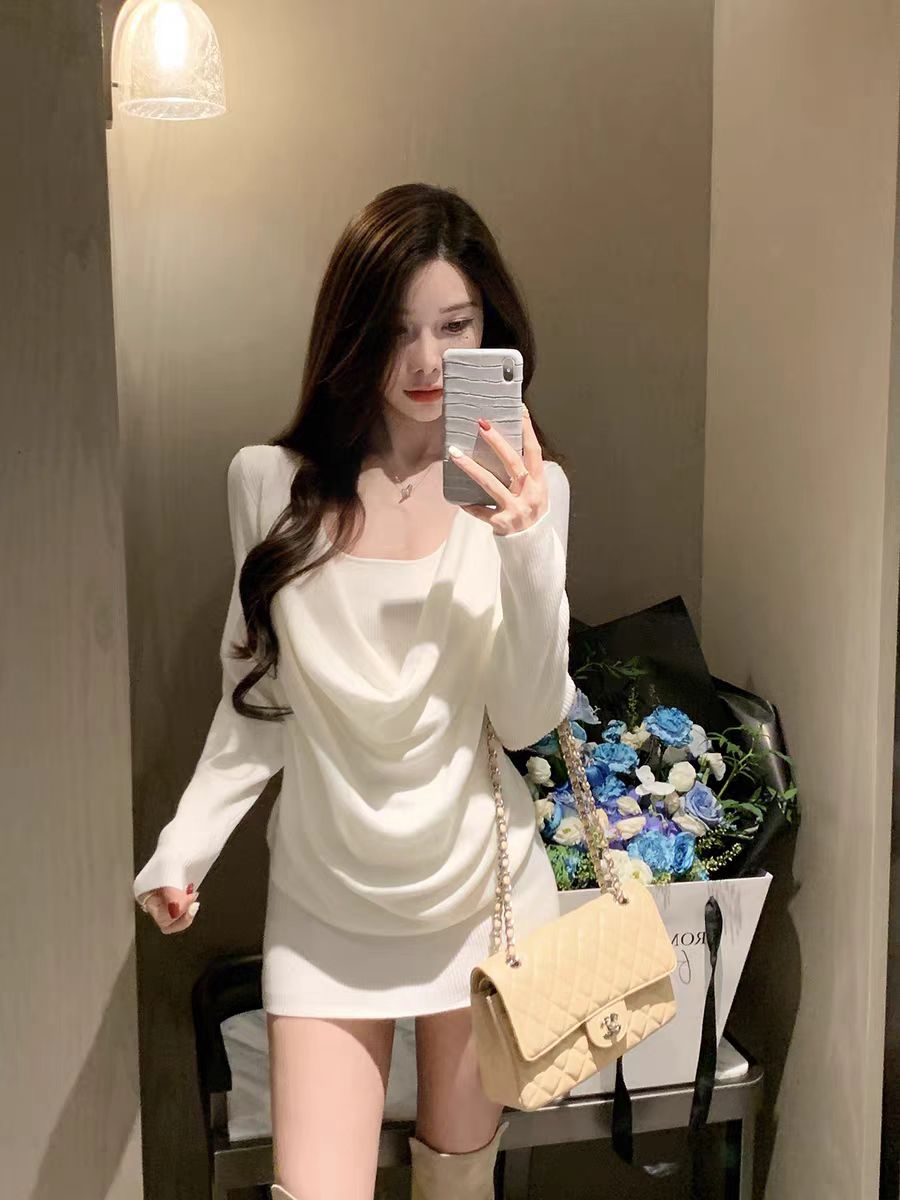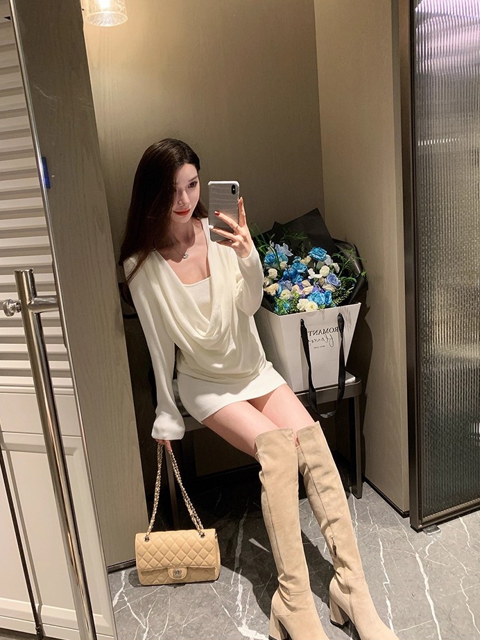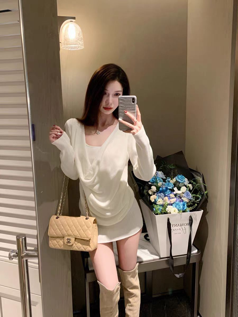 JustQin 纯欲combo秋冬假两件荡领羊毛针织连衣裙性感短裙女