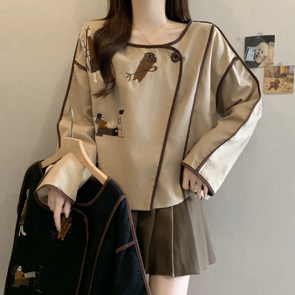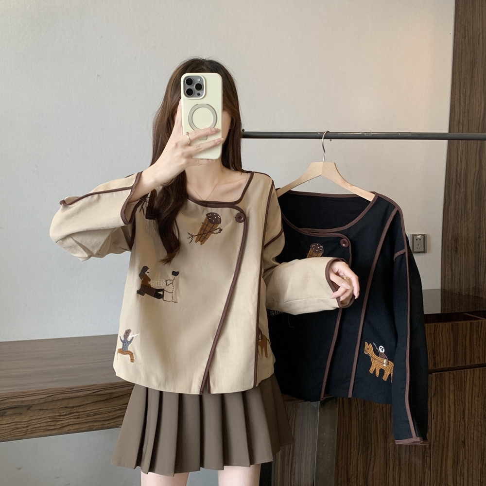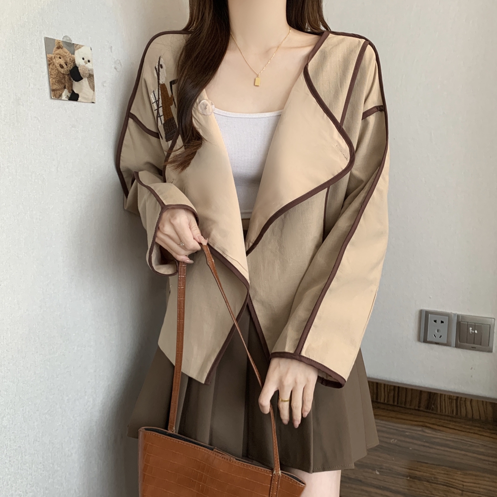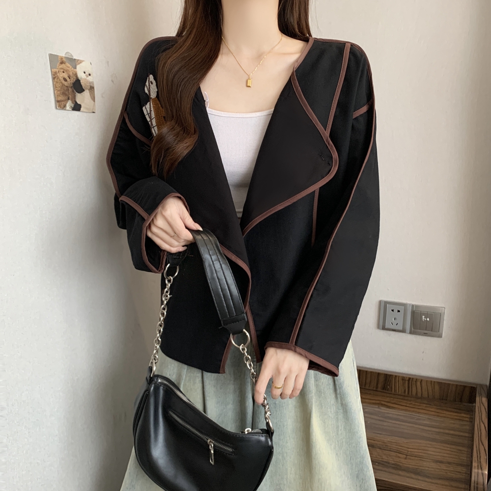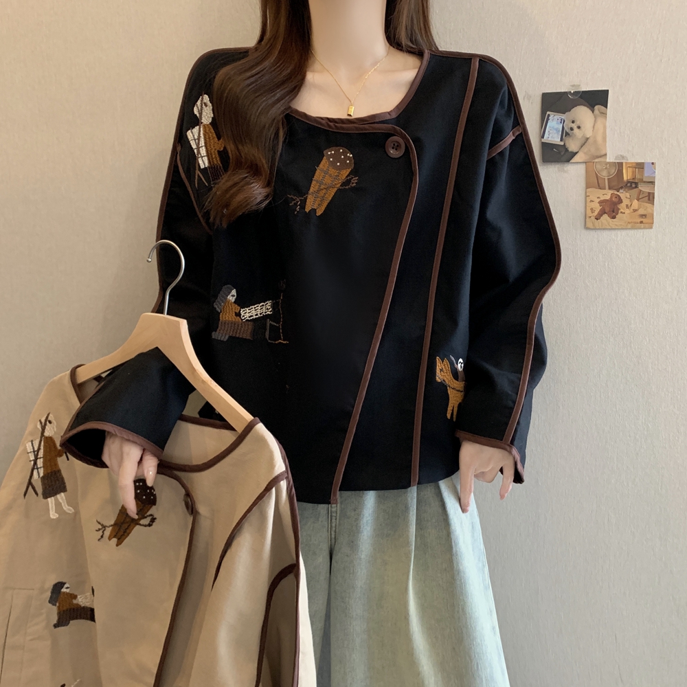 实拍秋装新款高端亚麻重工刺绣圆领短款外套宽松休闲夹克上衣