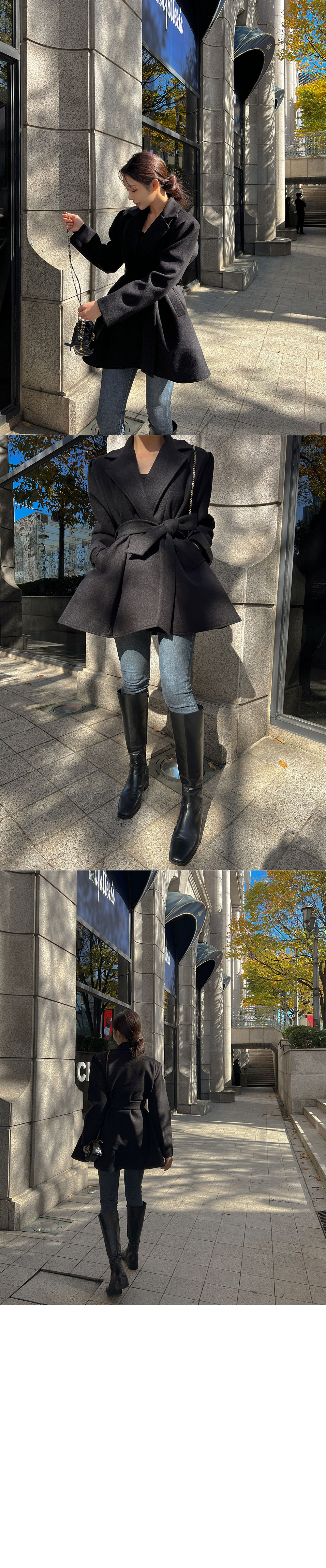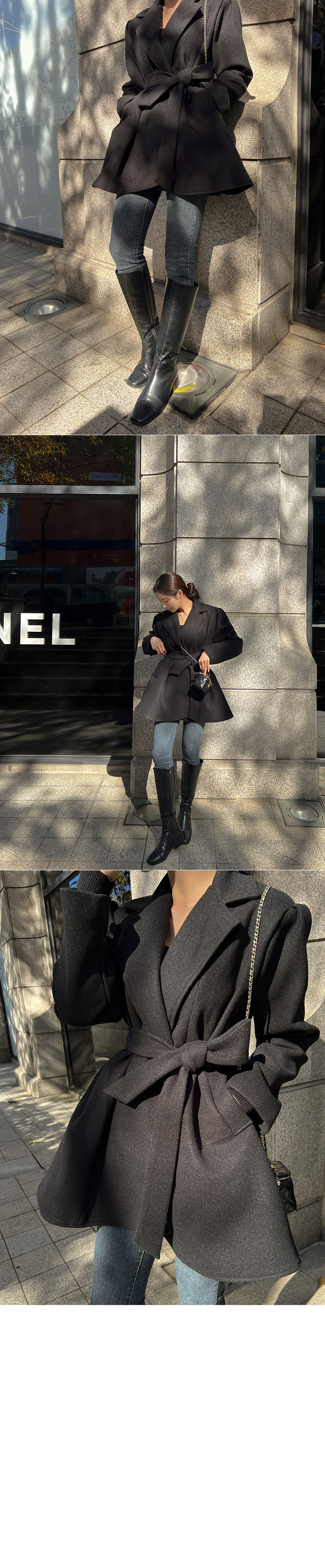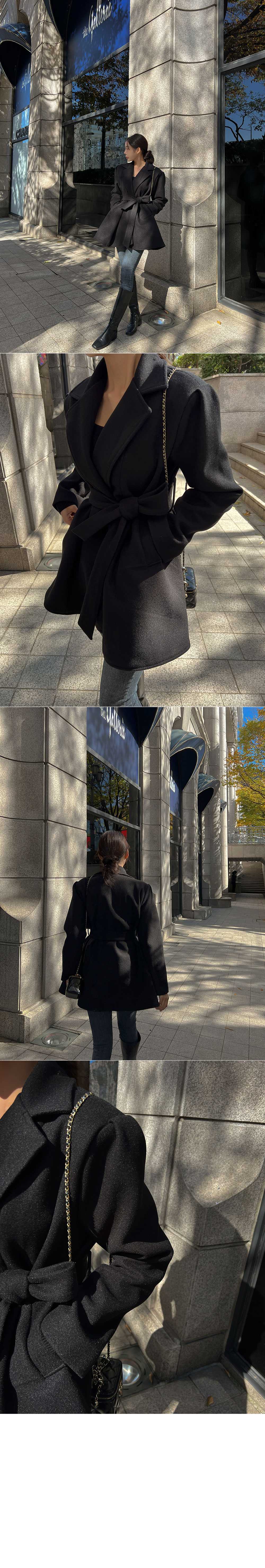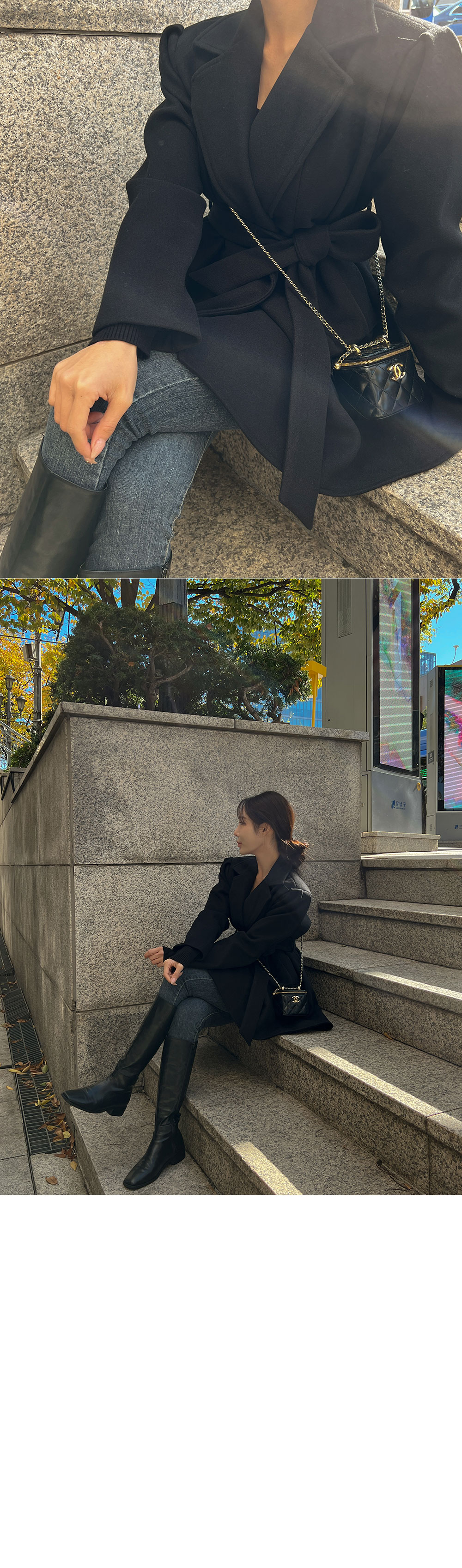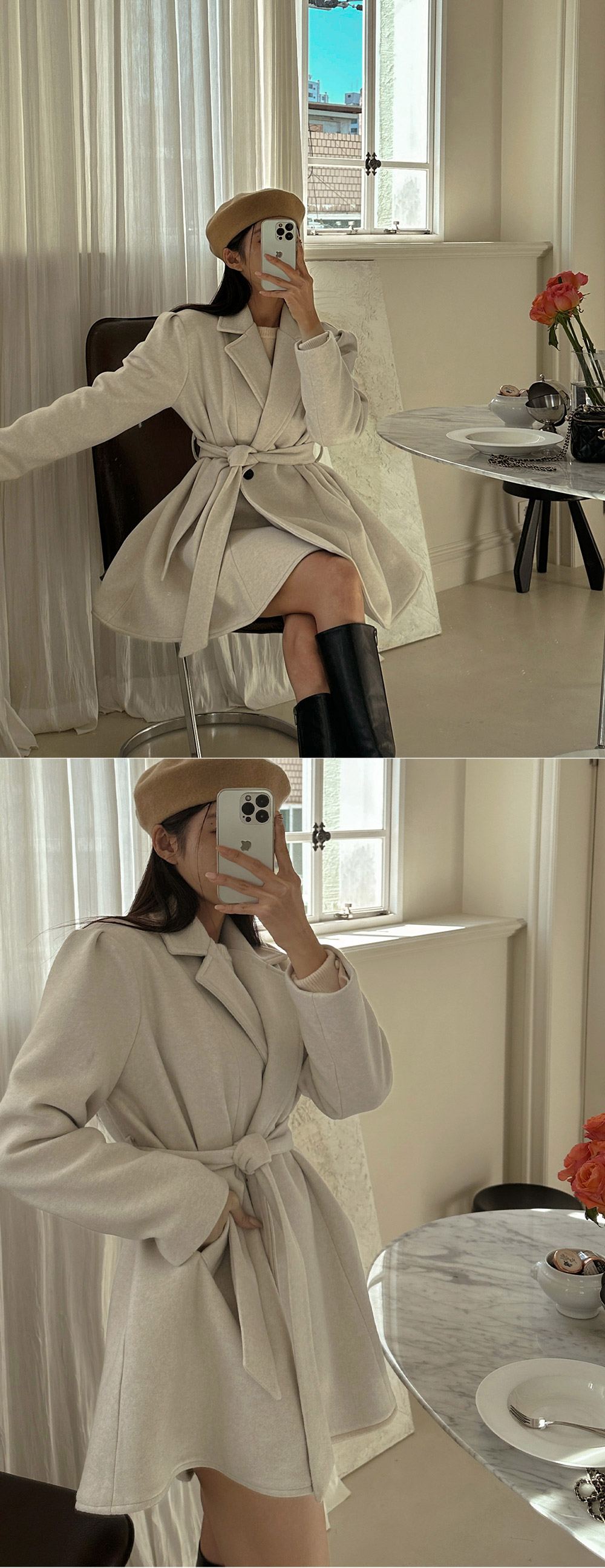 韩国chic 冬季法式系带气质百搭呢子大衣外套