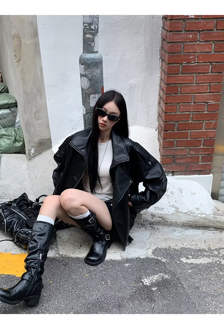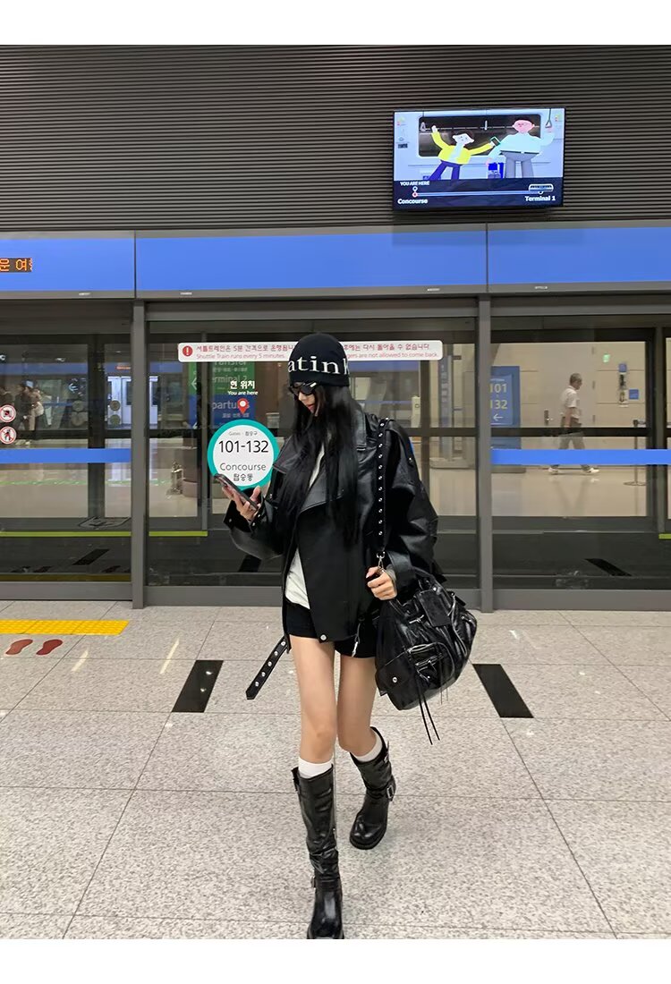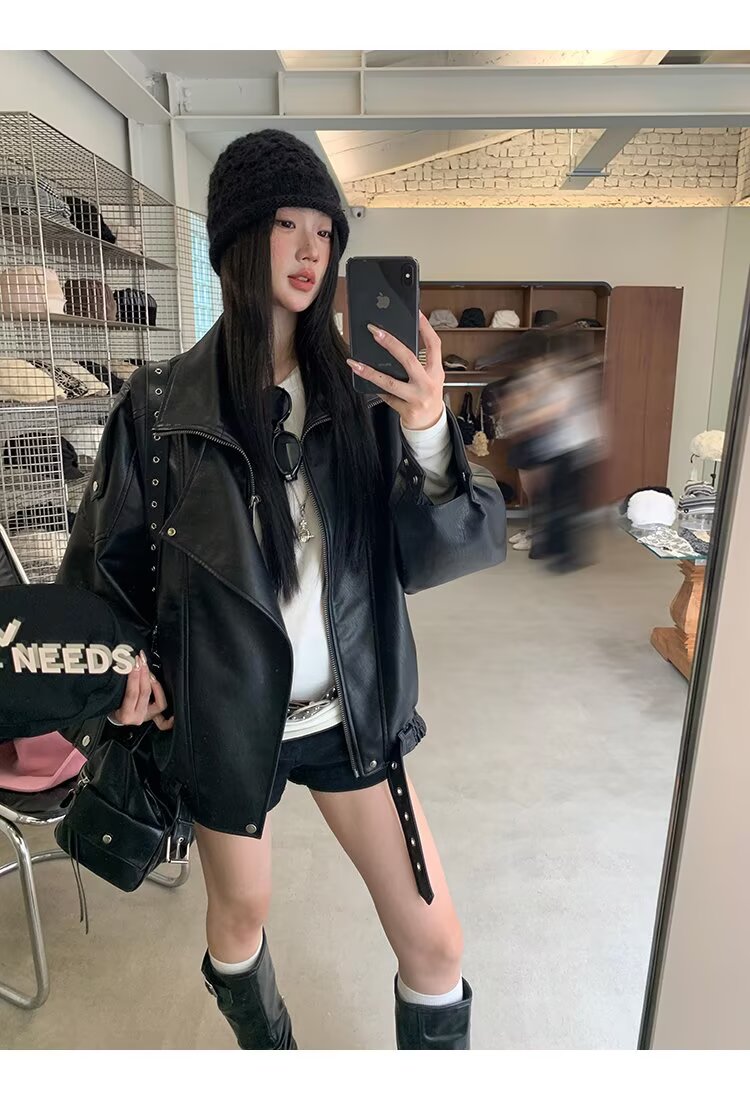 简约潮流ins质量东方巴黎pu皮衣时尚百搭新款流行文艺慵懒日系