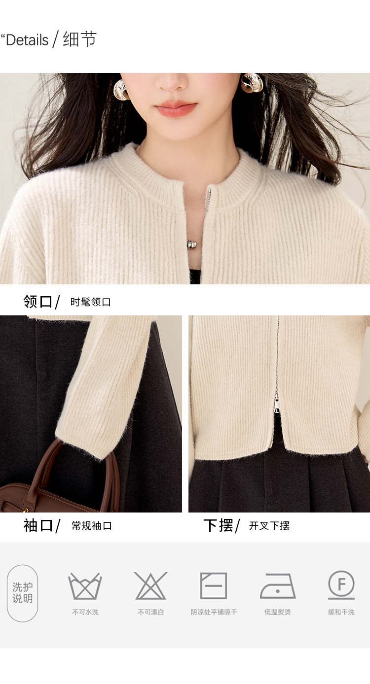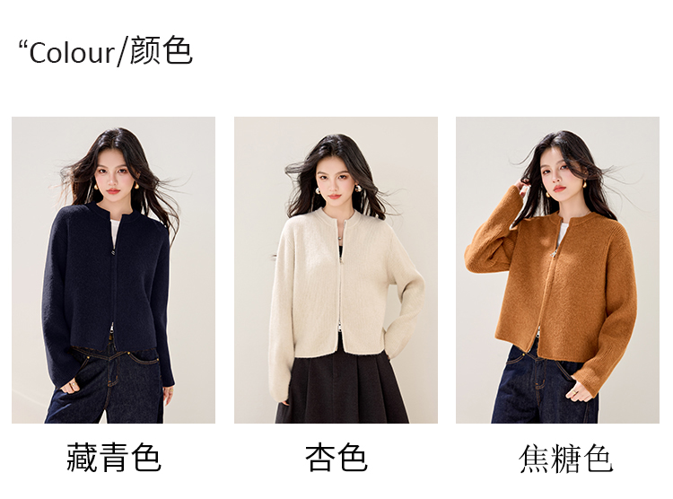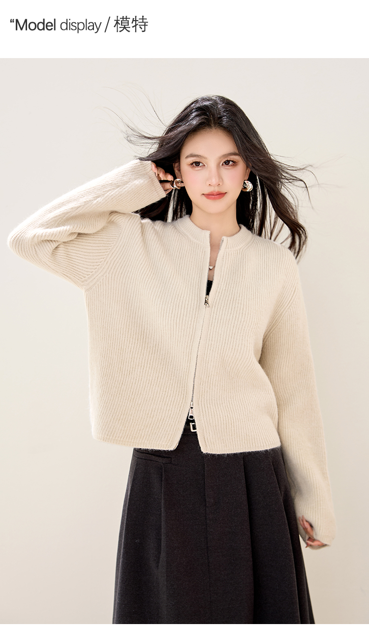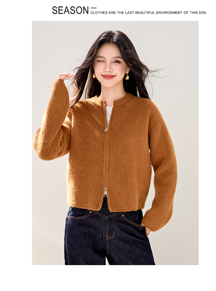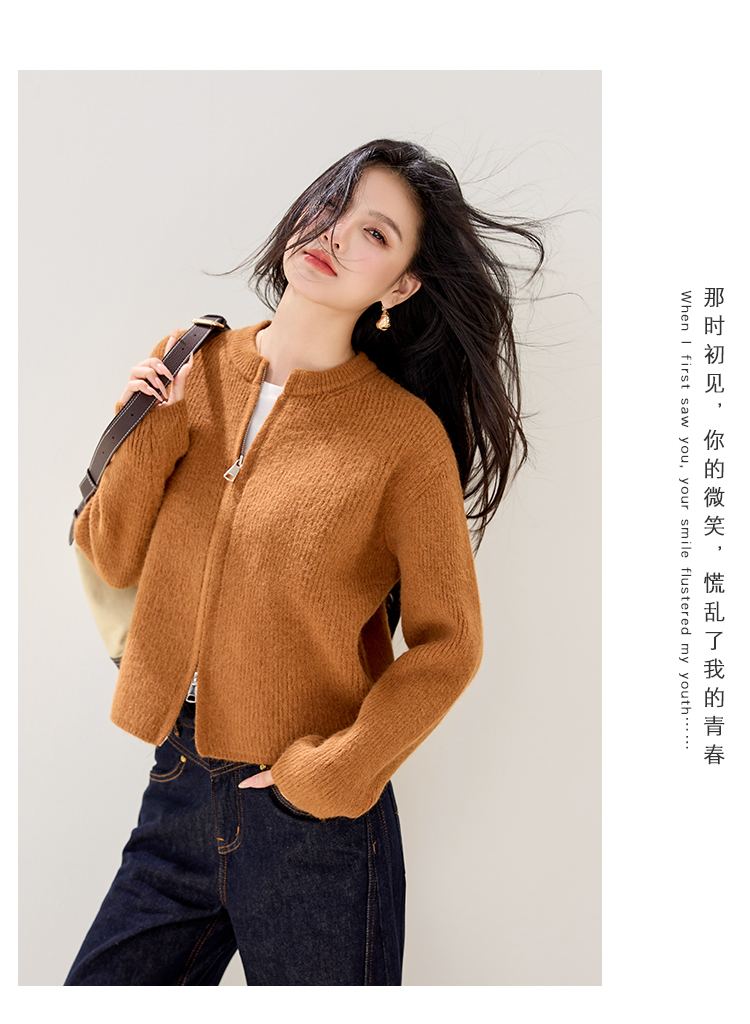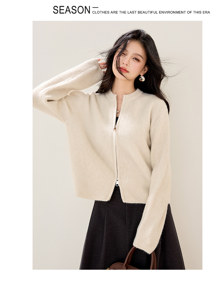 实拍新款秋冬针织衫厚款拉链开衫圆领韩版纯色长袖短款针织毛衣女