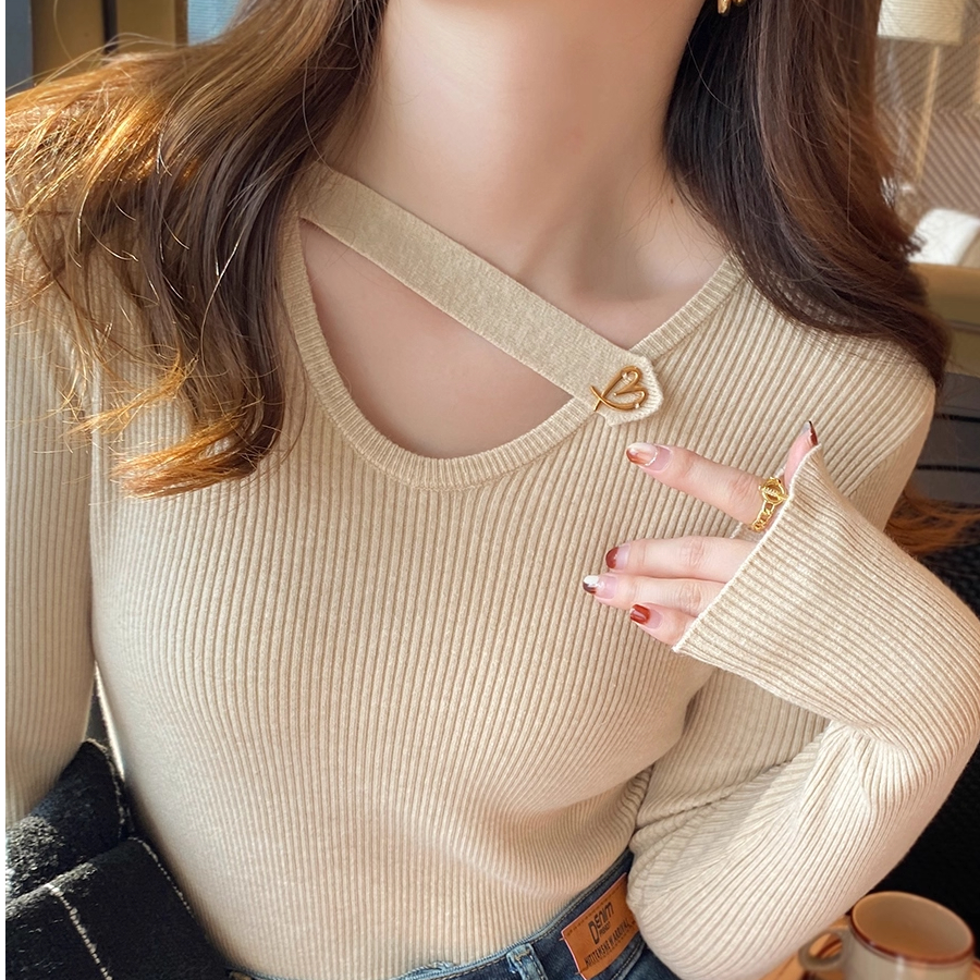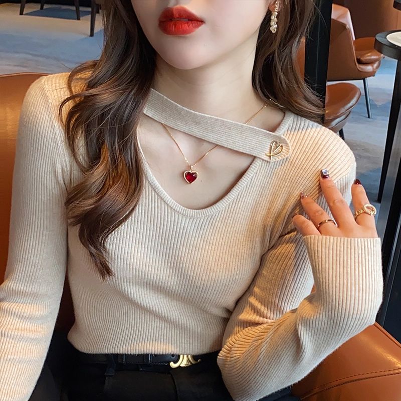 韩版2025年修身秋冬长袖打底上衣女时尚显瘦百搭不规则