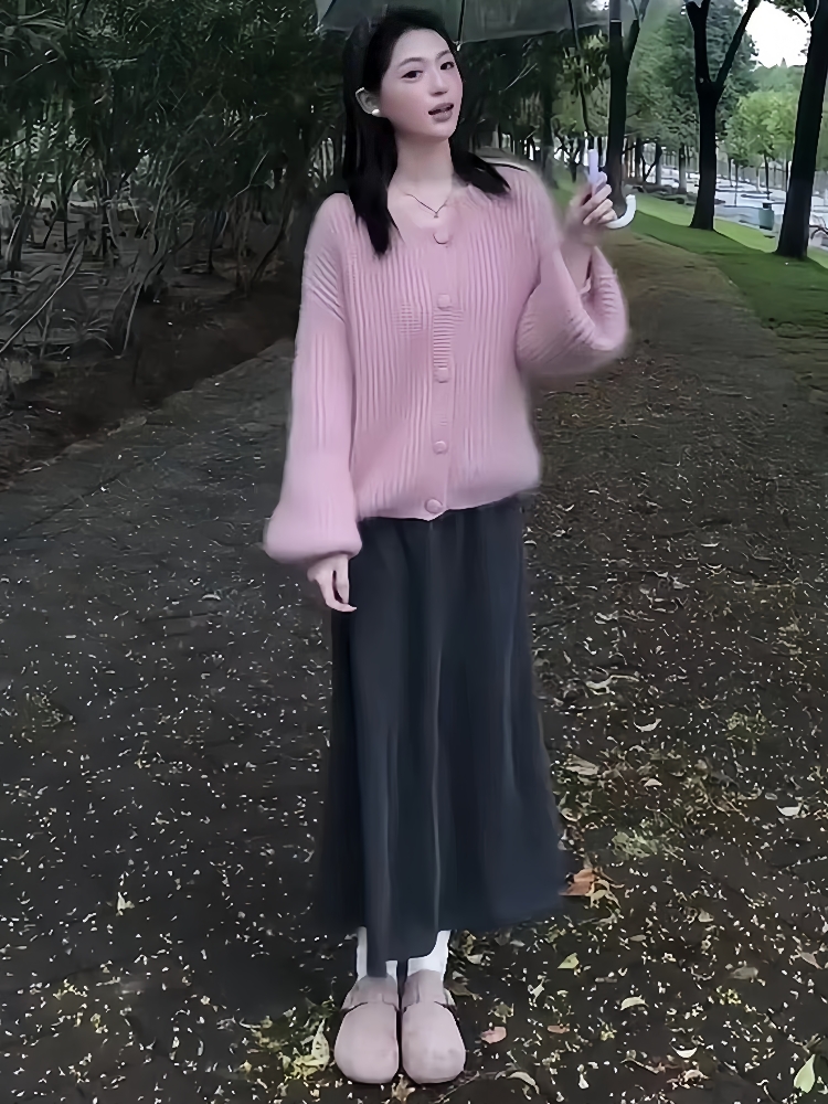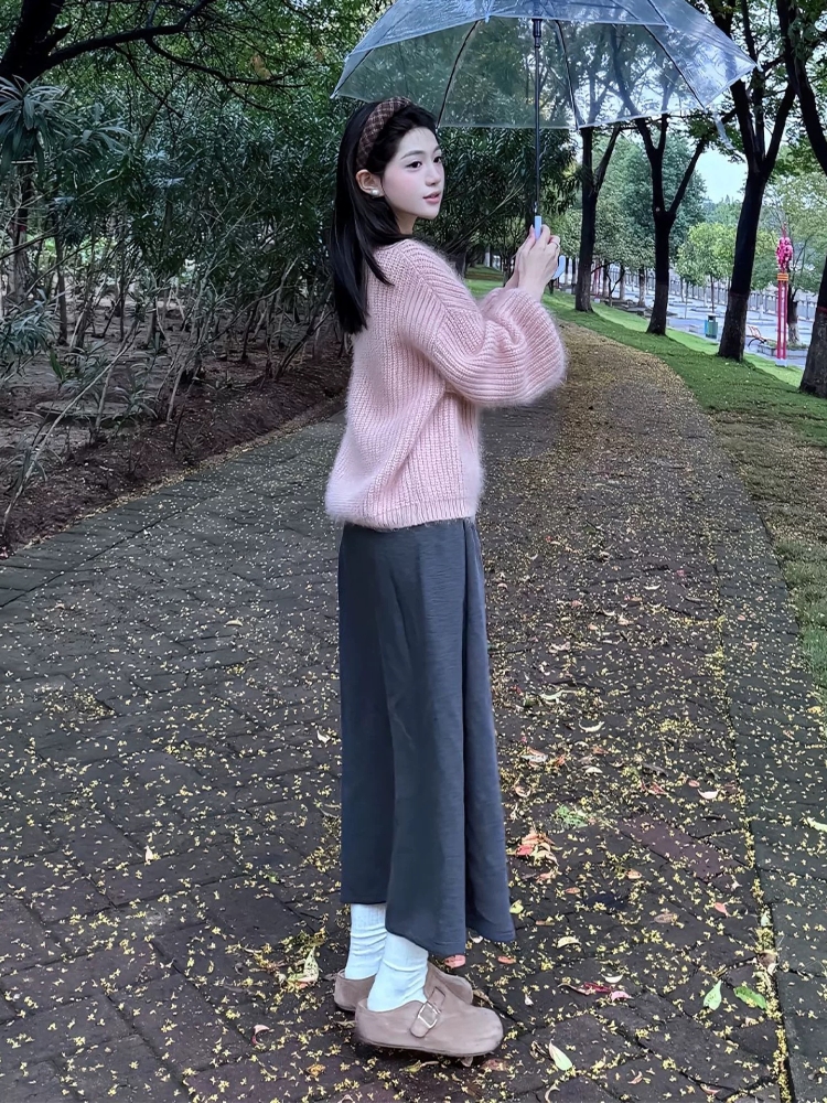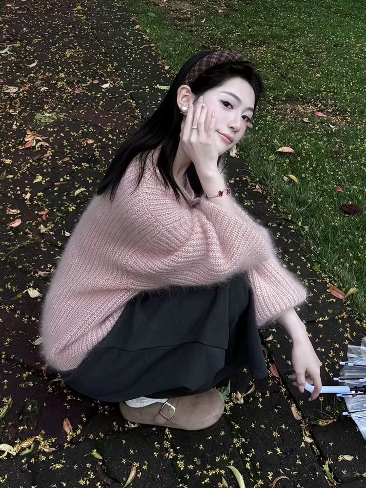 2025超火一整套大方得体轻奢高级减龄洋气粉色针织毛衣两件套装裙
