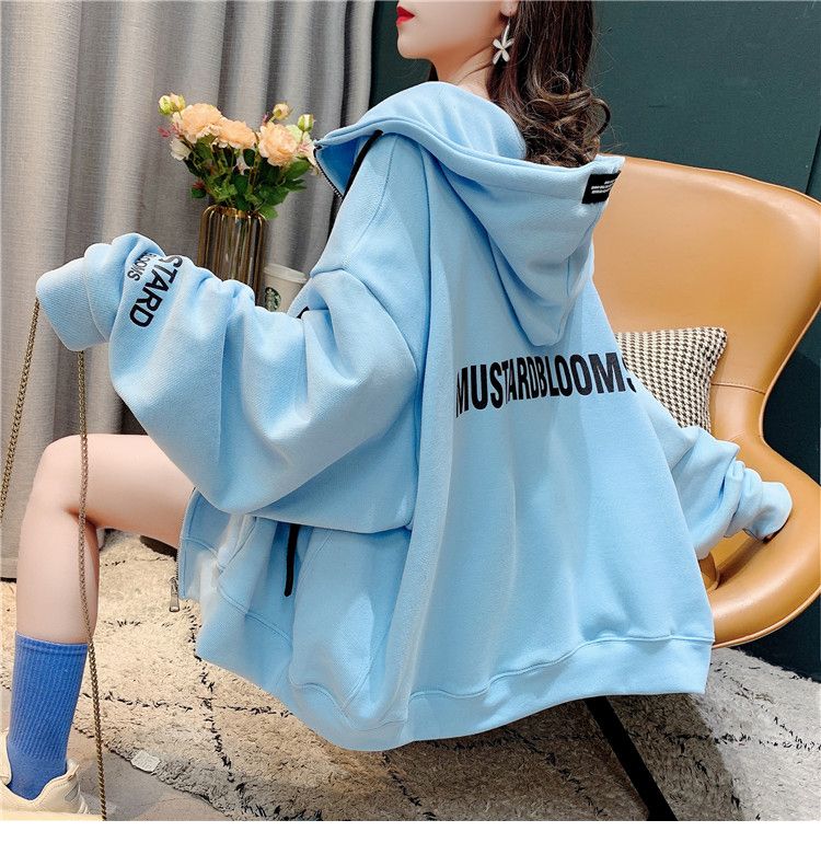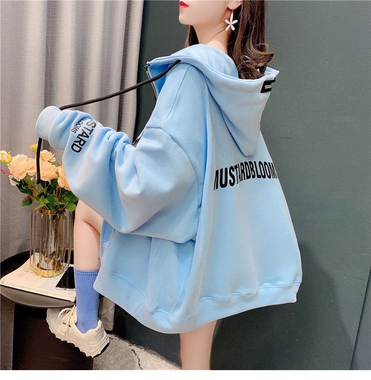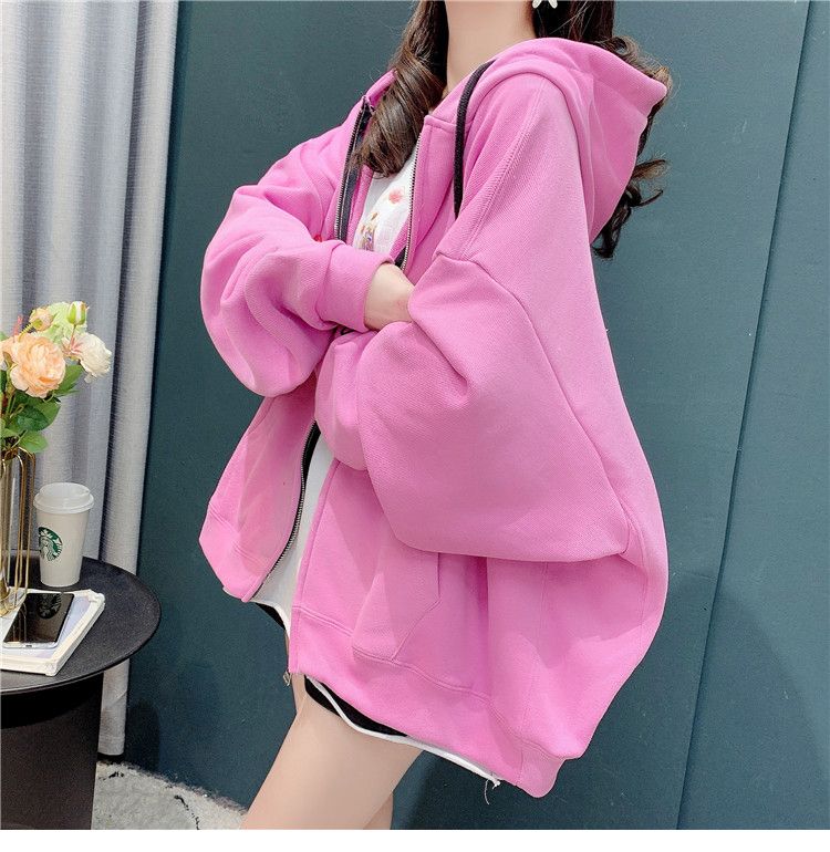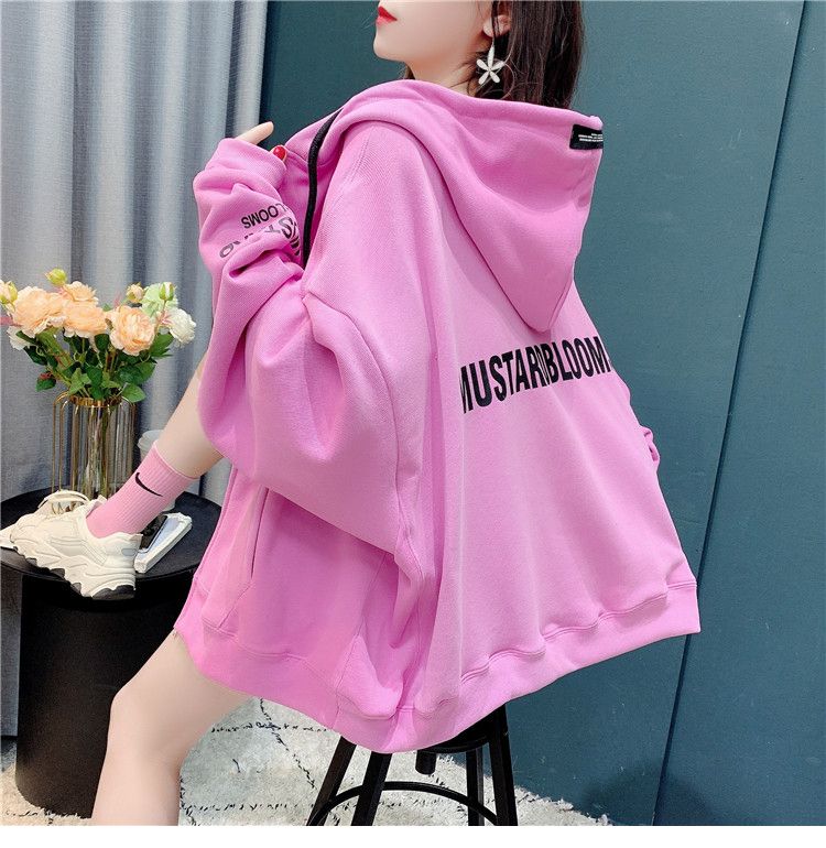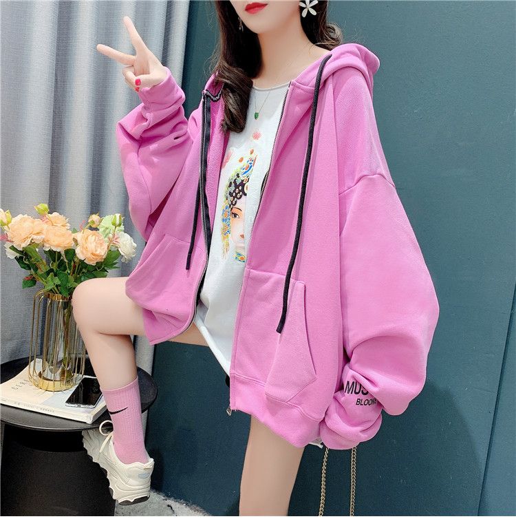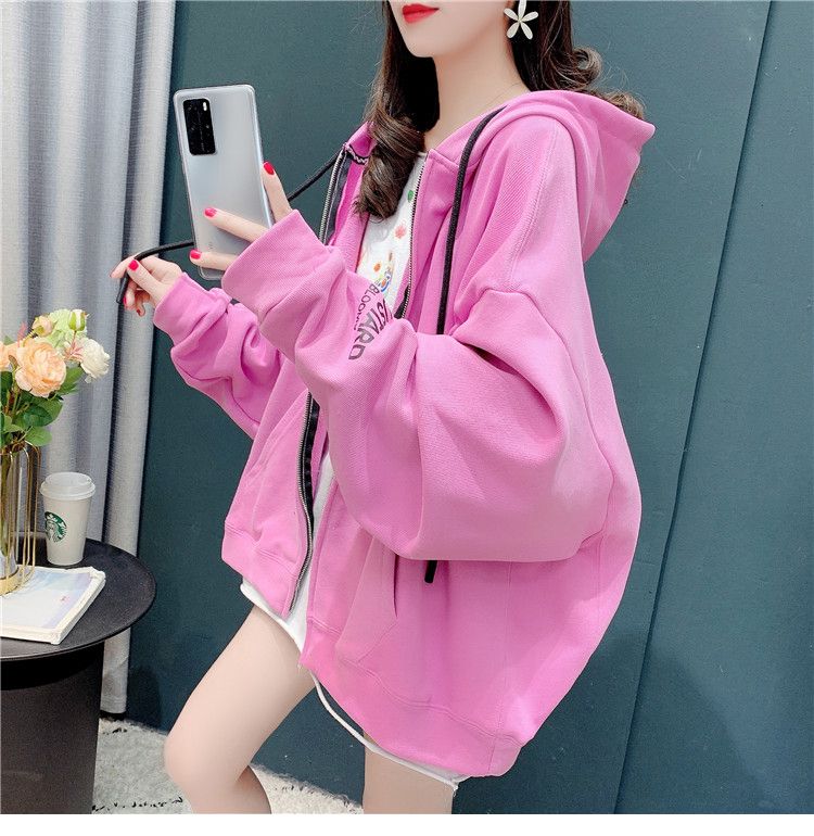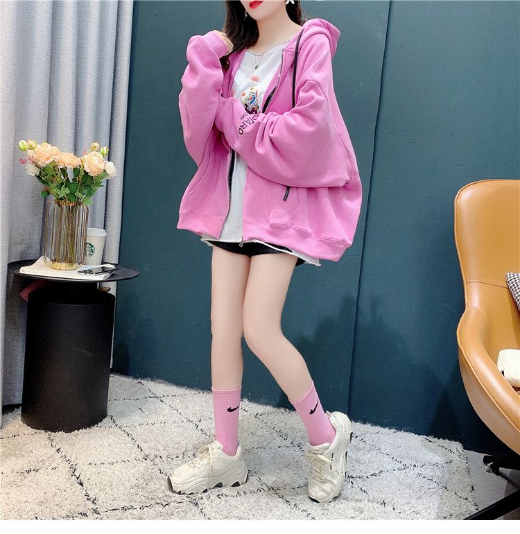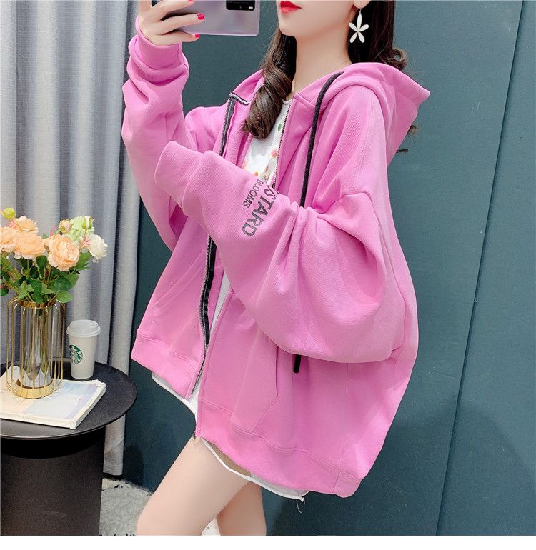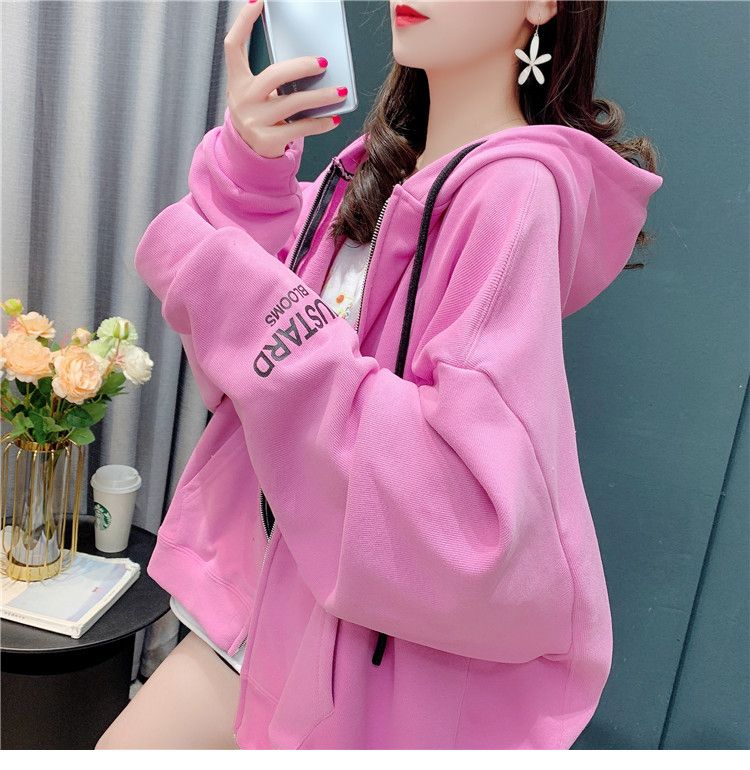25棉春秋季新款宽松连帽拉链开衫卫衣外套女潮