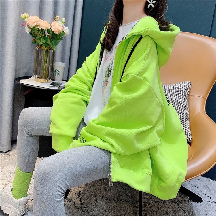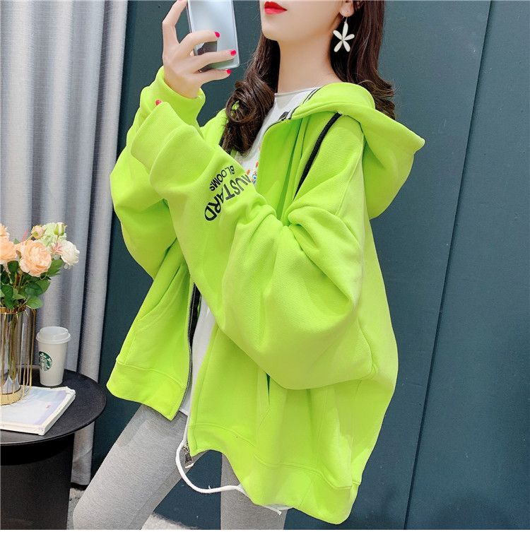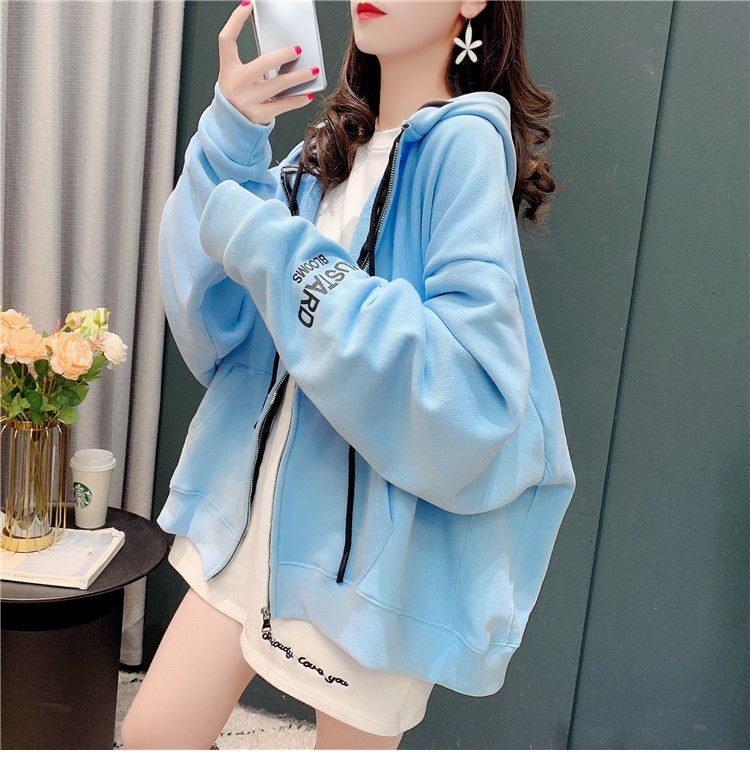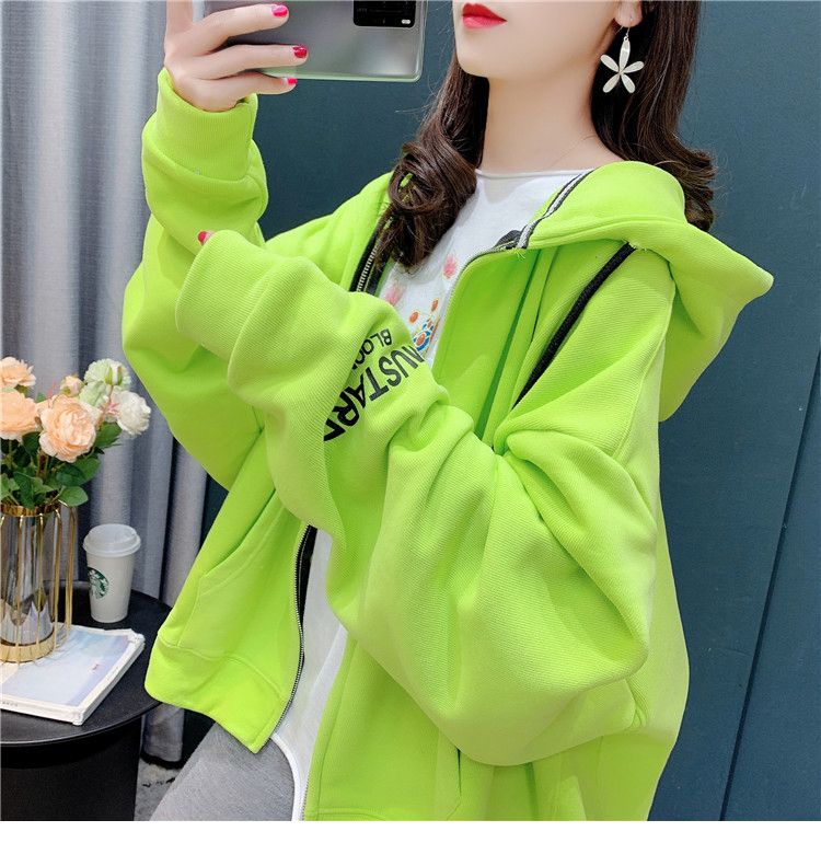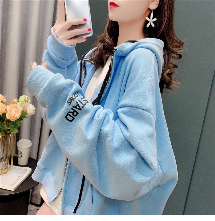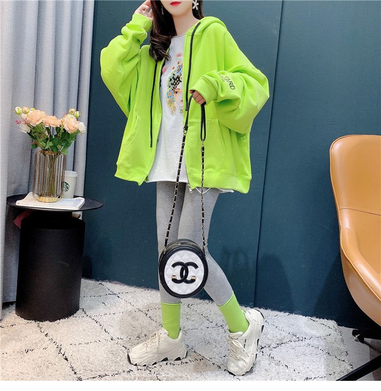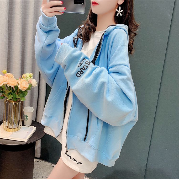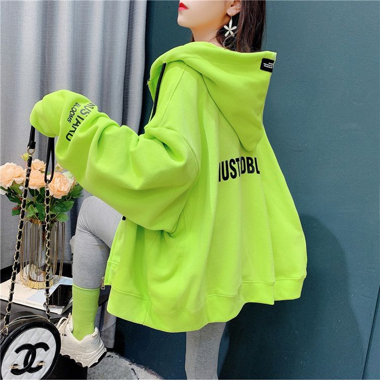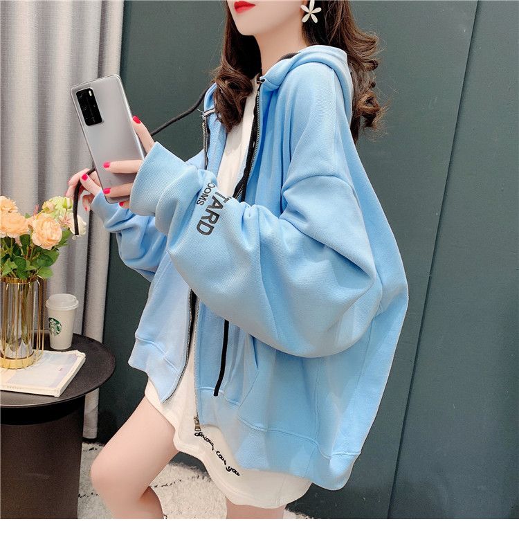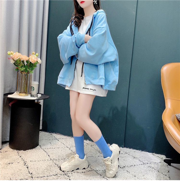 25棉春秋季新款宽松连帽拉链开衫卫衣外套女潮