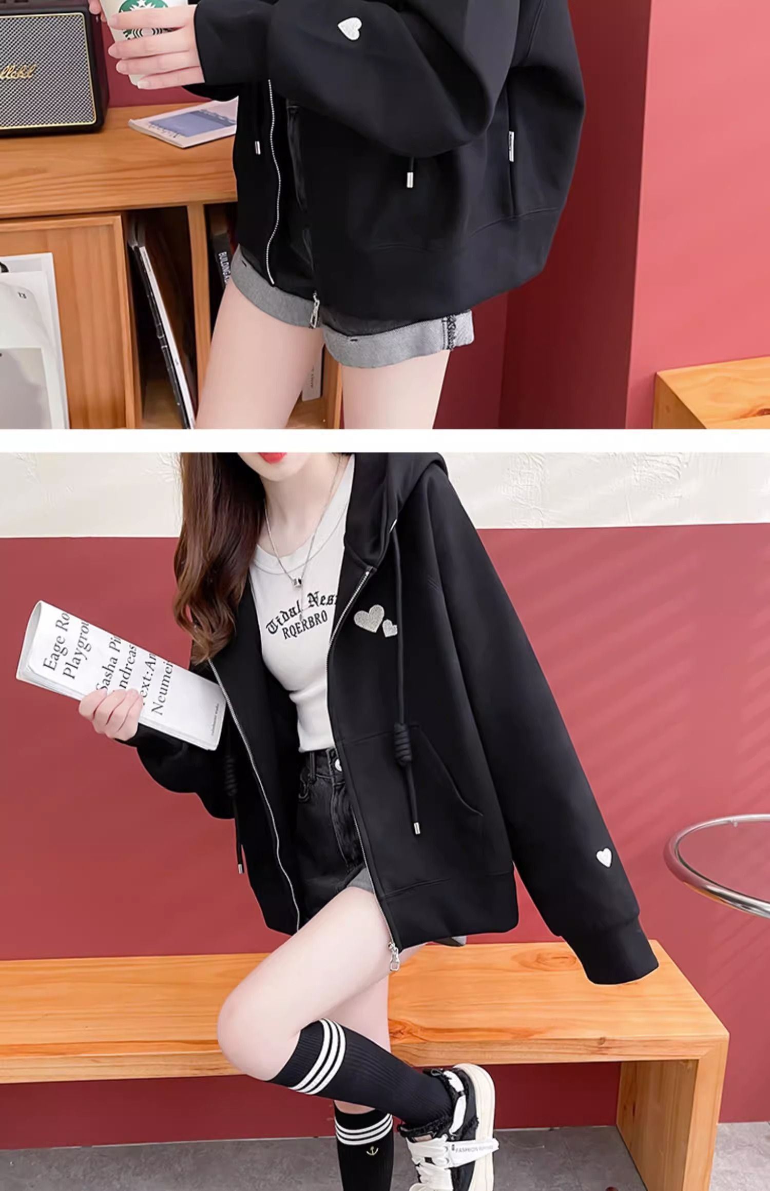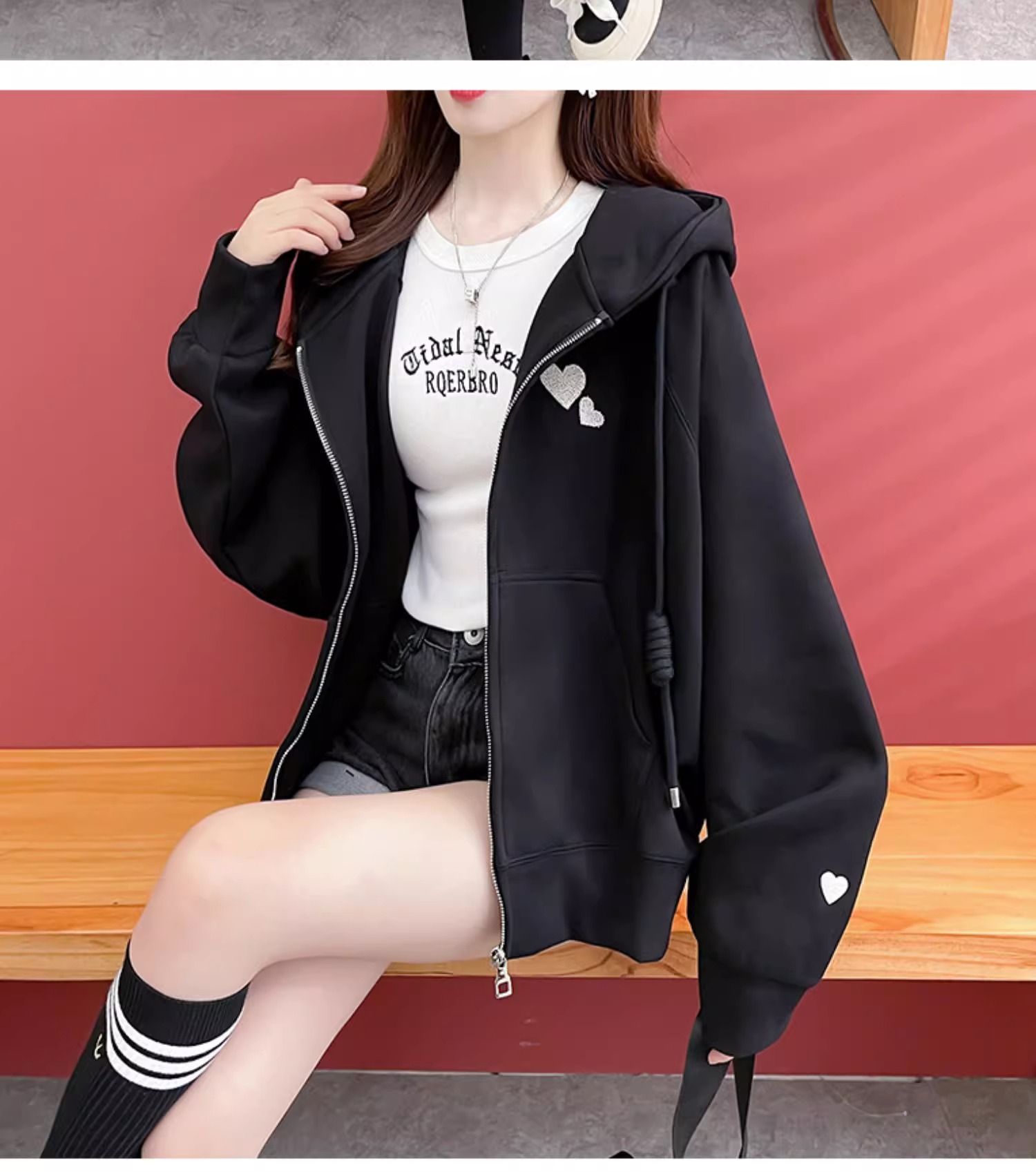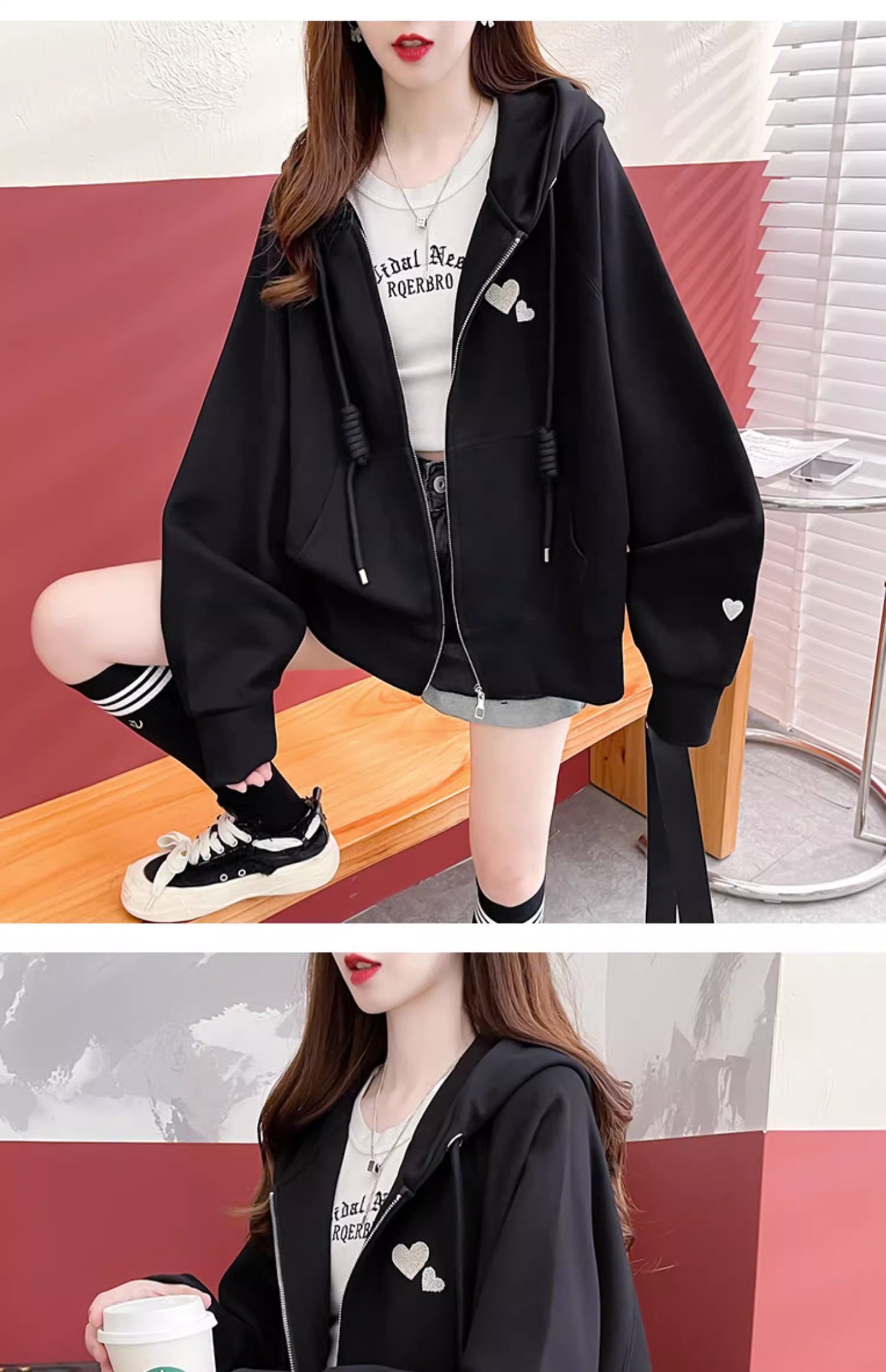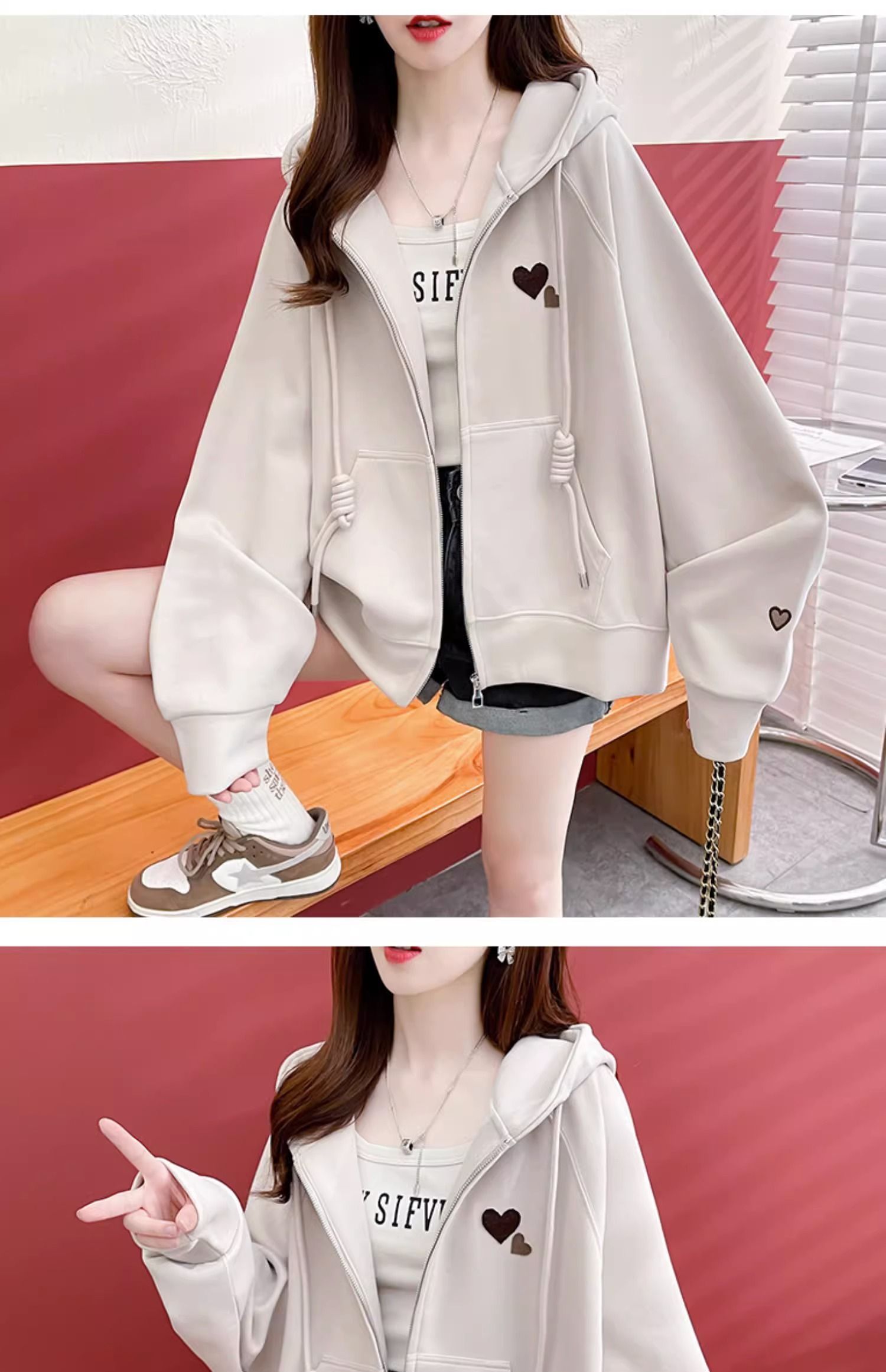 牛奶丝复合贝贝绒秋冬季加绒连帽卫衣外套潮