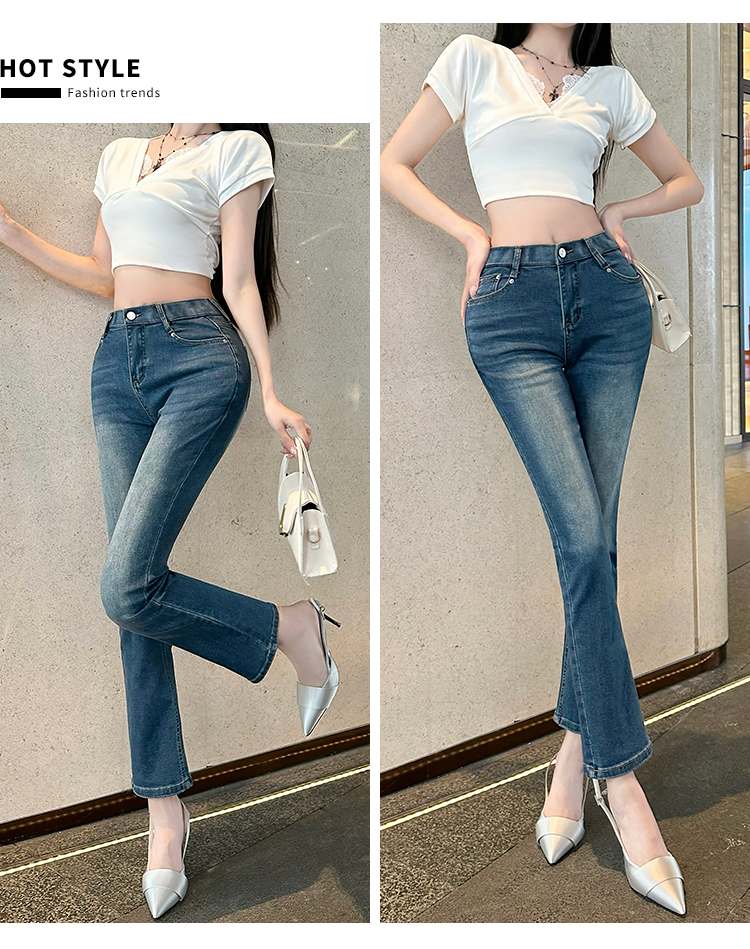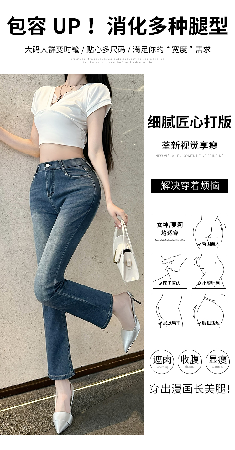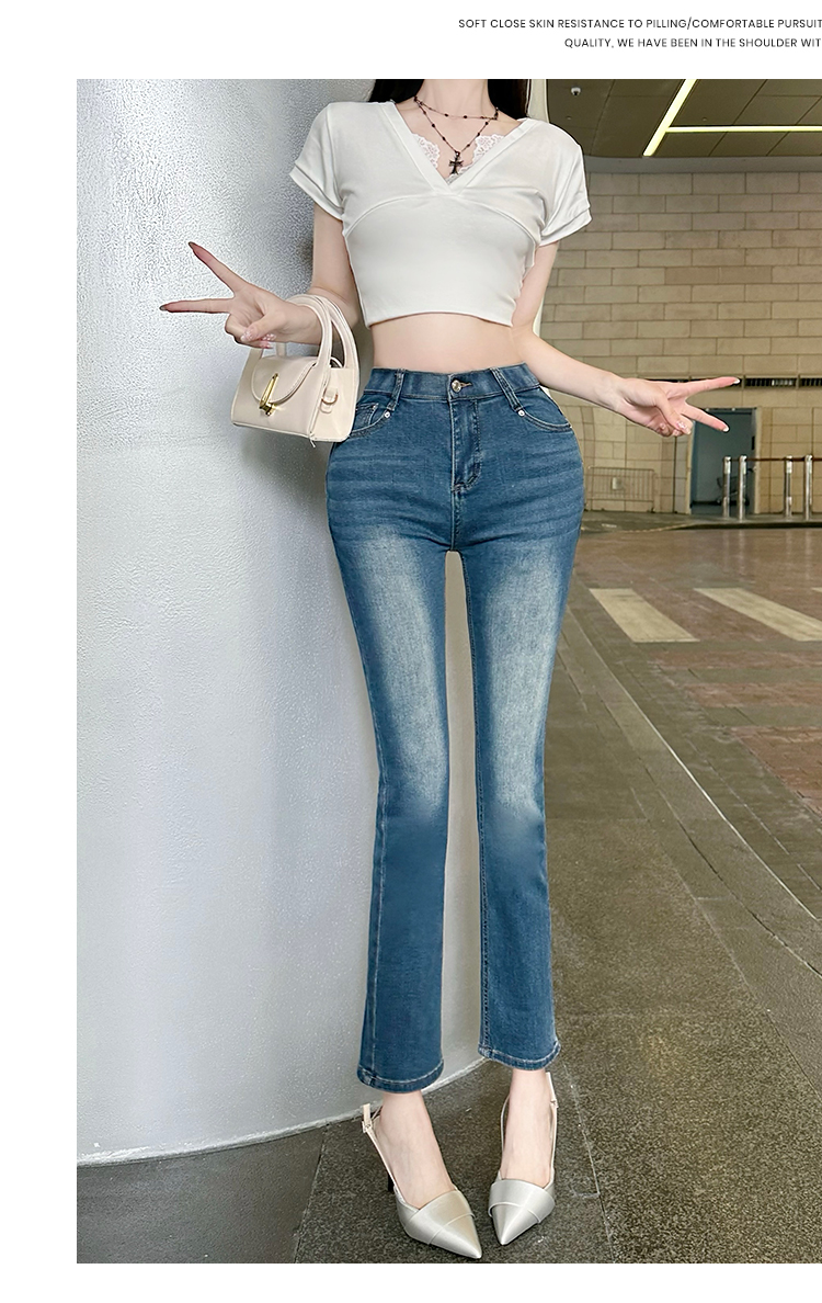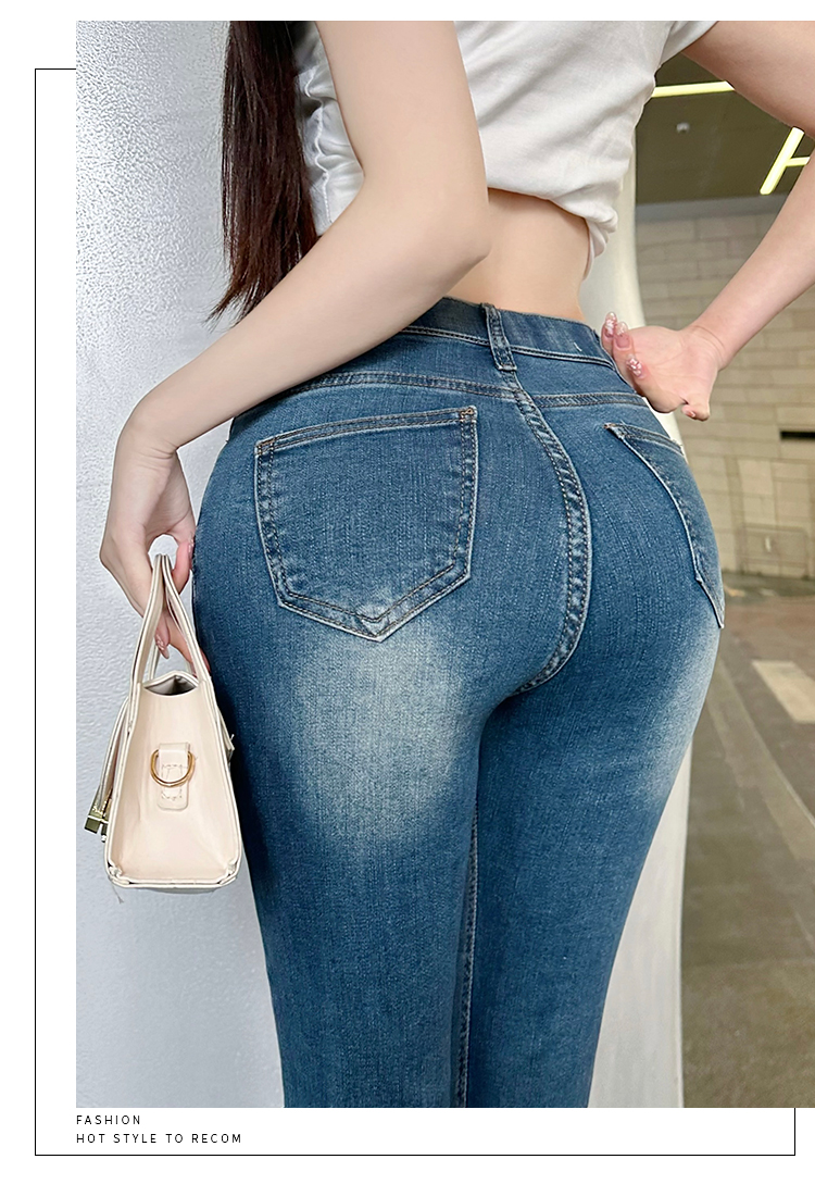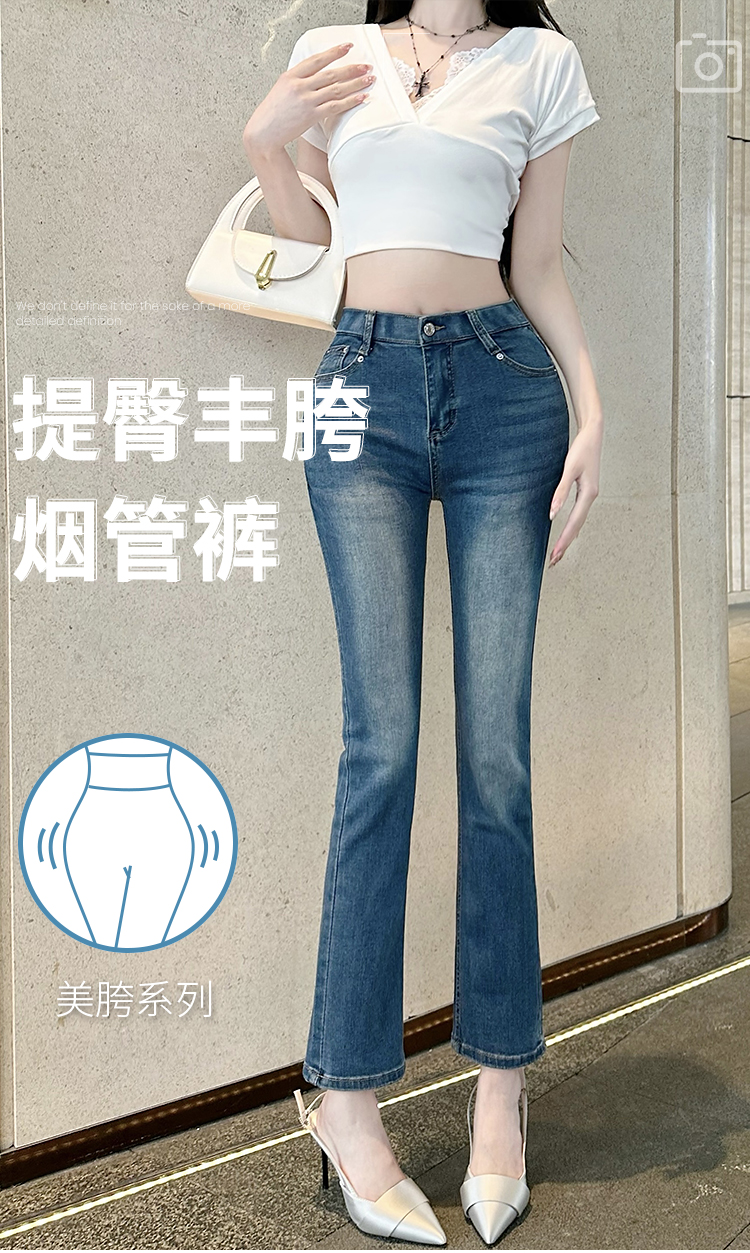 古早韩女丰胯九分裤3色百搭春夏秋冬烟管裤简约弹力牛仔裤直筒裤