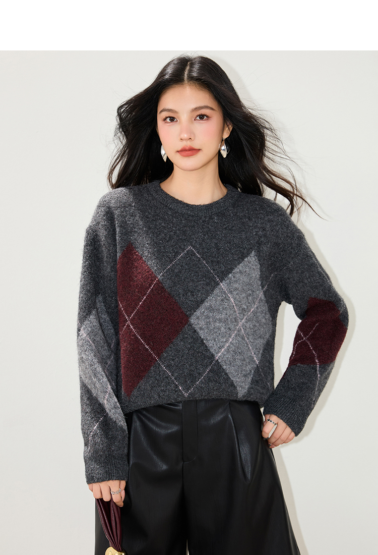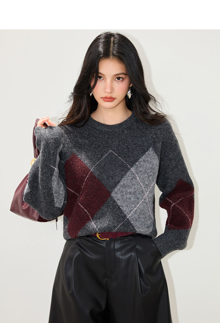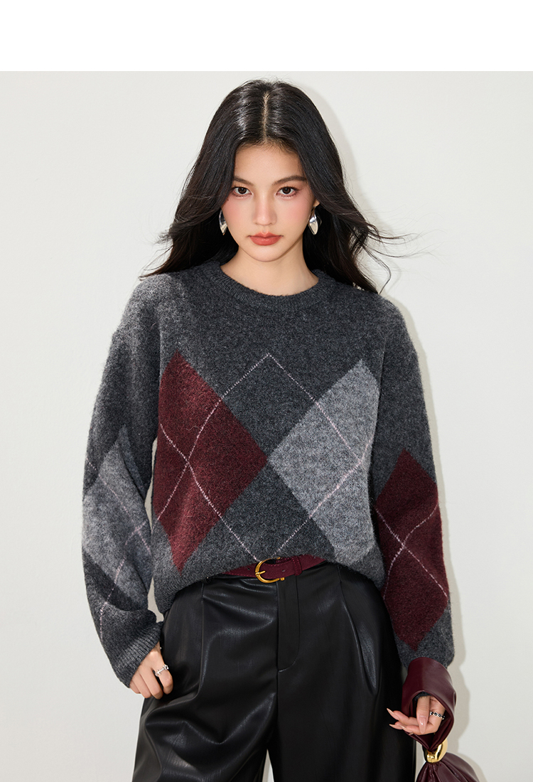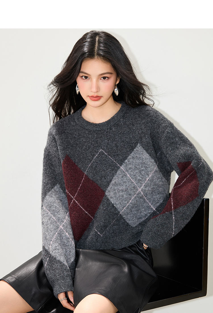 实拍◆2025复古菱格v领咖色毛衣女秋冬慵懒风高级感针织衫上衣