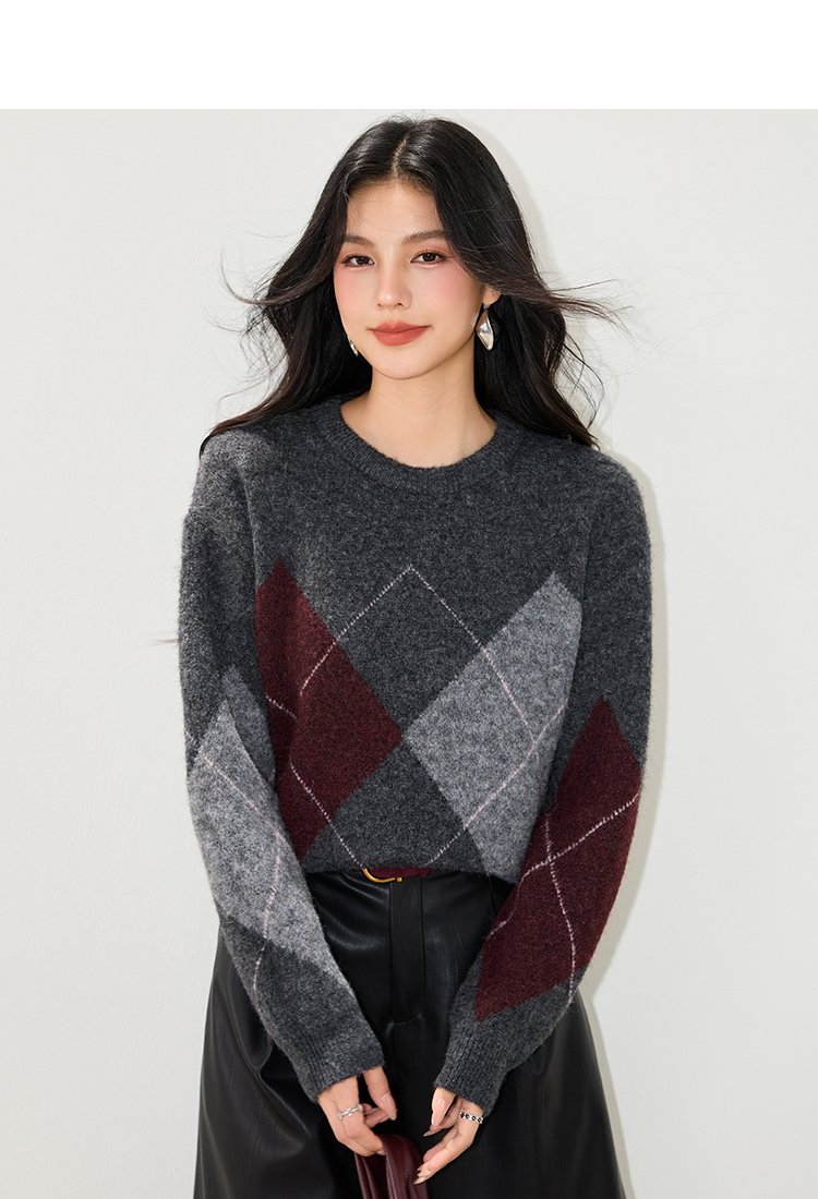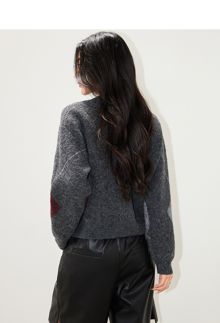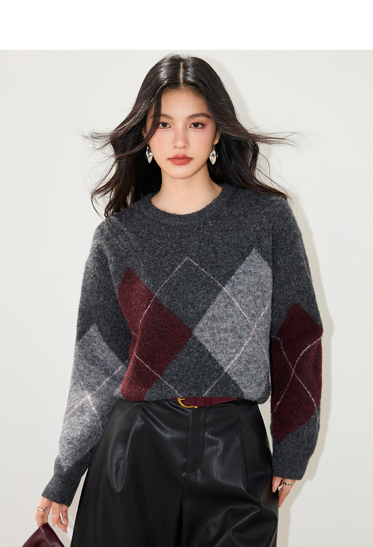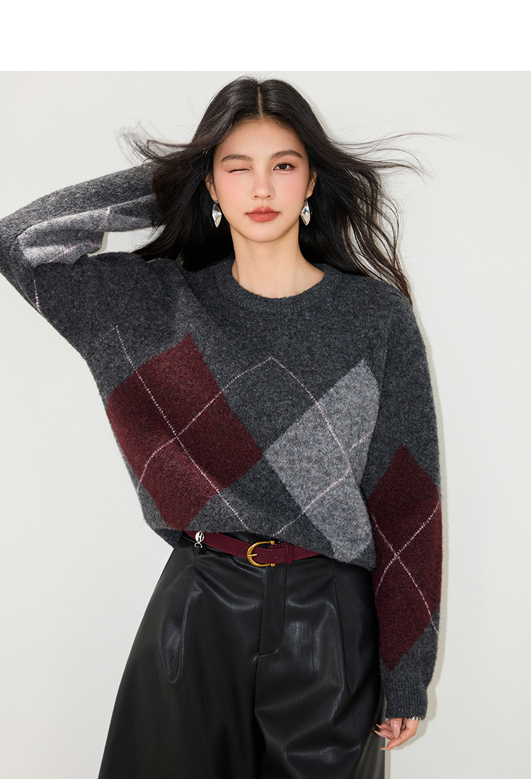 实拍◆2025复古菱格v领咖色毛衣女秋冬慵懒风高级感针织衫上衣