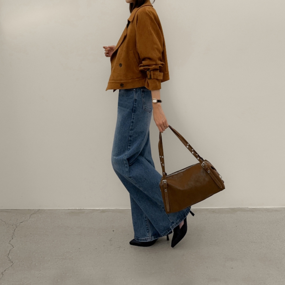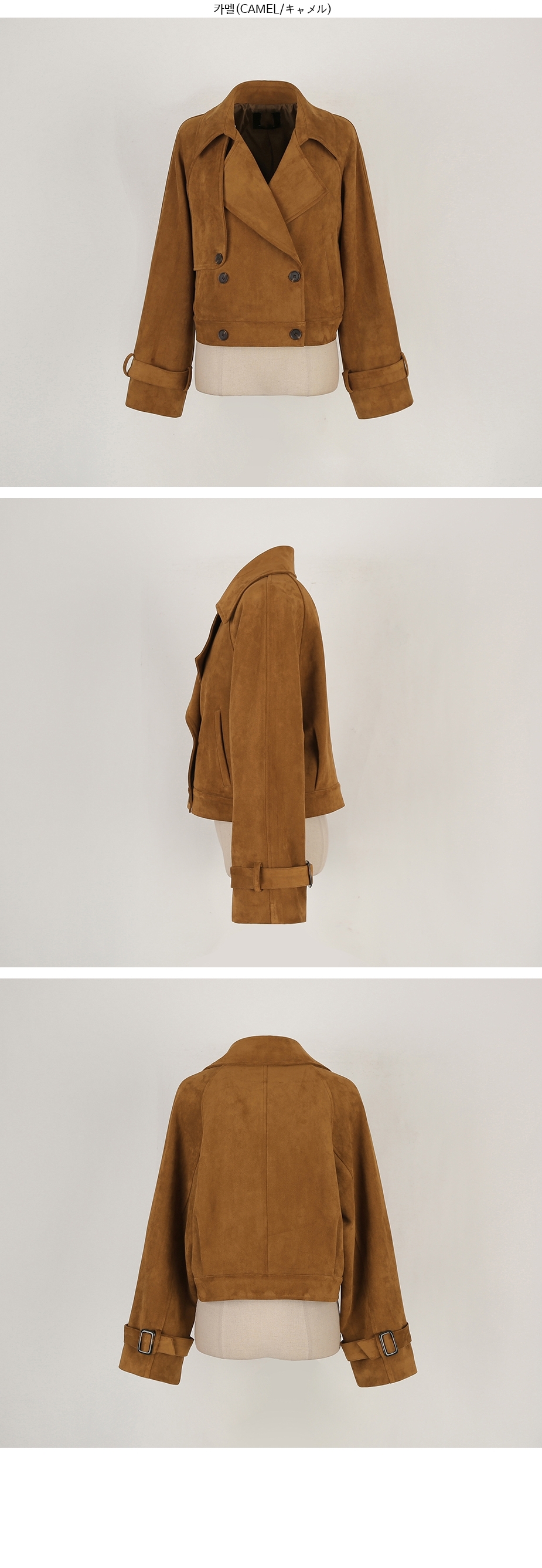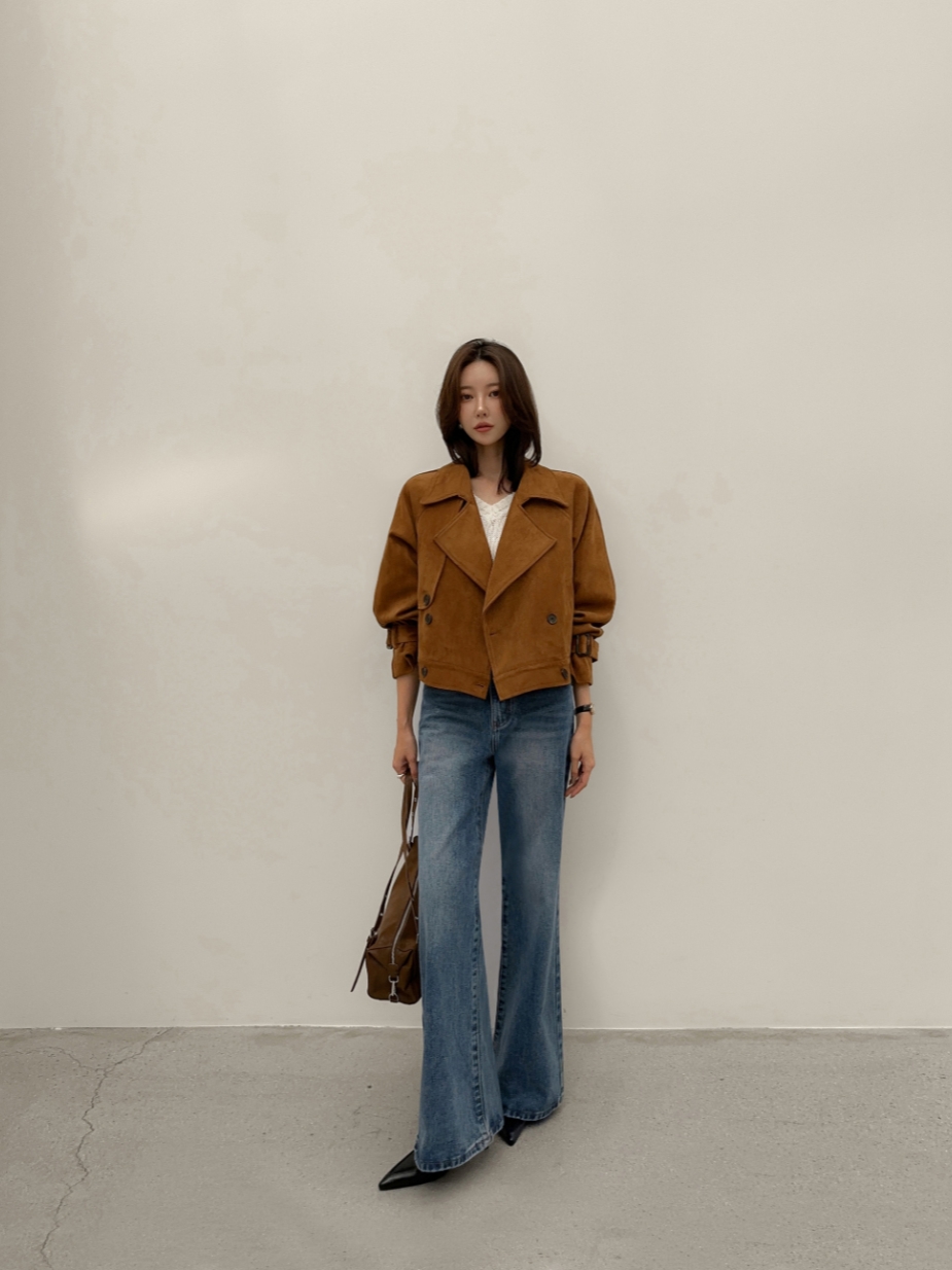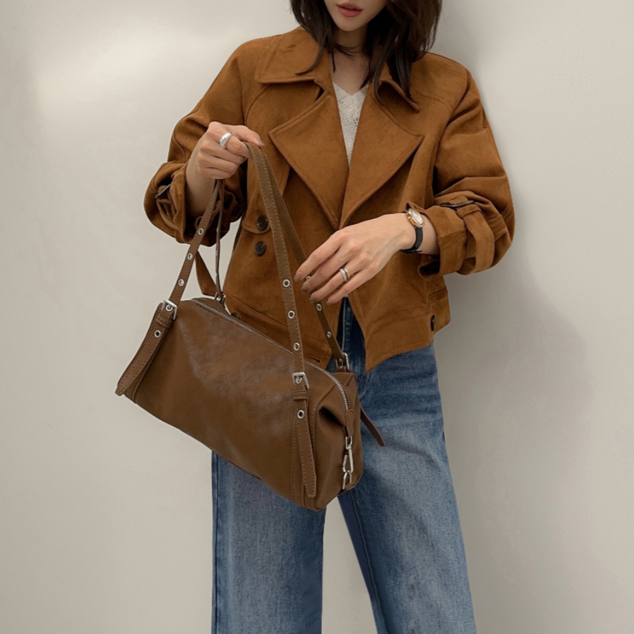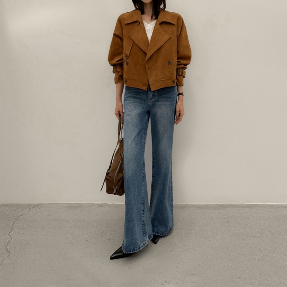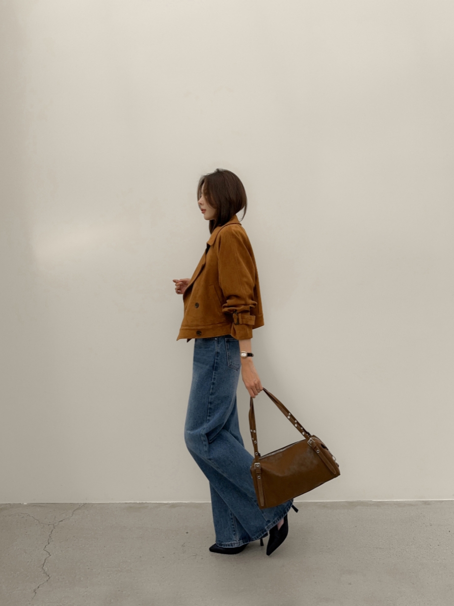 ins 韩国秋冬小众复古翻领高级感气质麂皮绒短款双排扣风衣外套