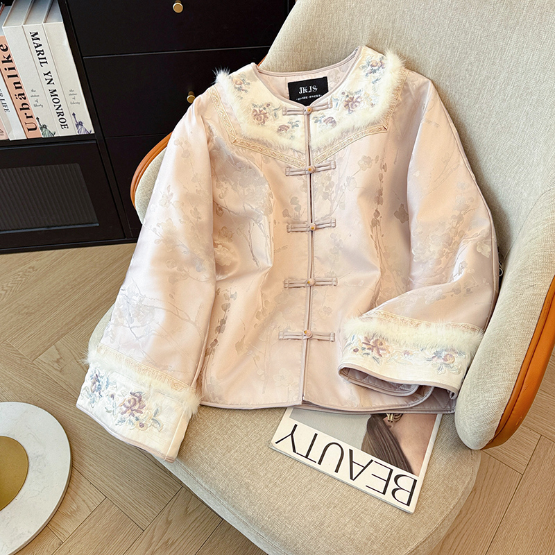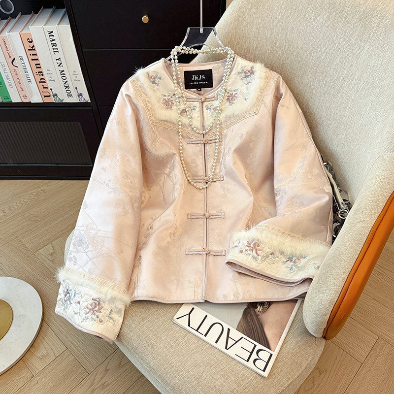 刺绣云肩新中式轻国风棉袄冬季外套设计感盘扣棉衣