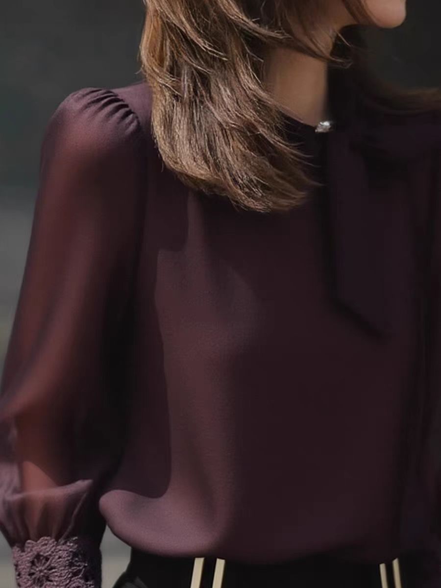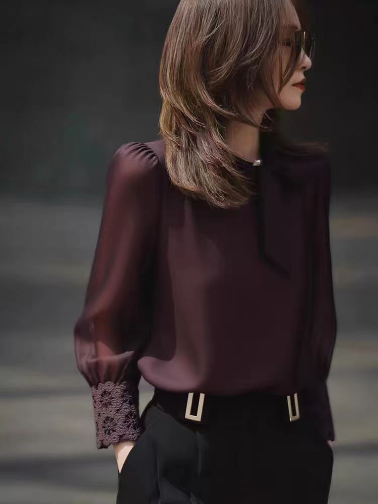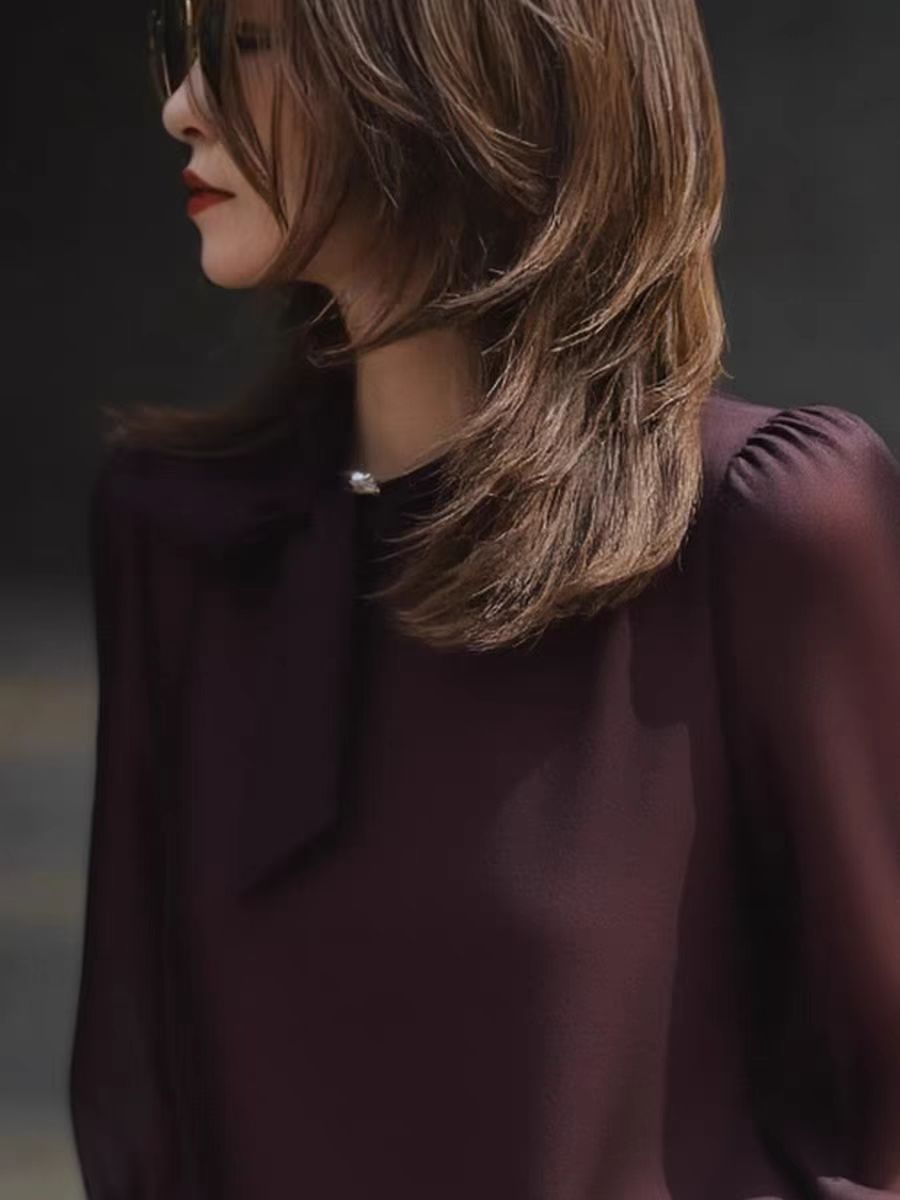 深紫色长袖衬衫上衣女2025秋新款高级感轻奢减龄洋气重要场合小衫