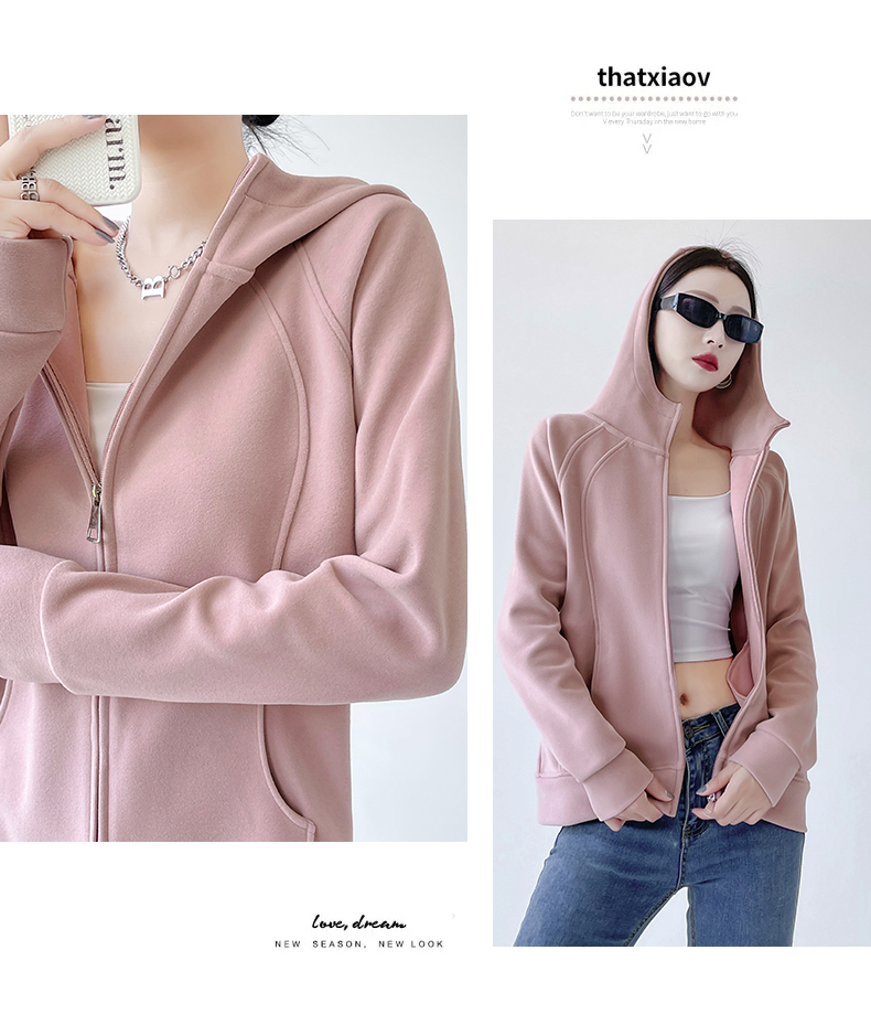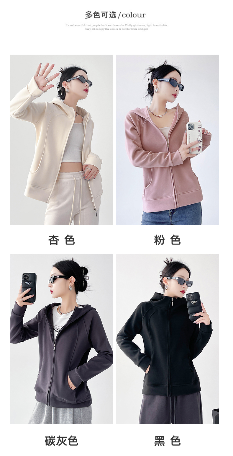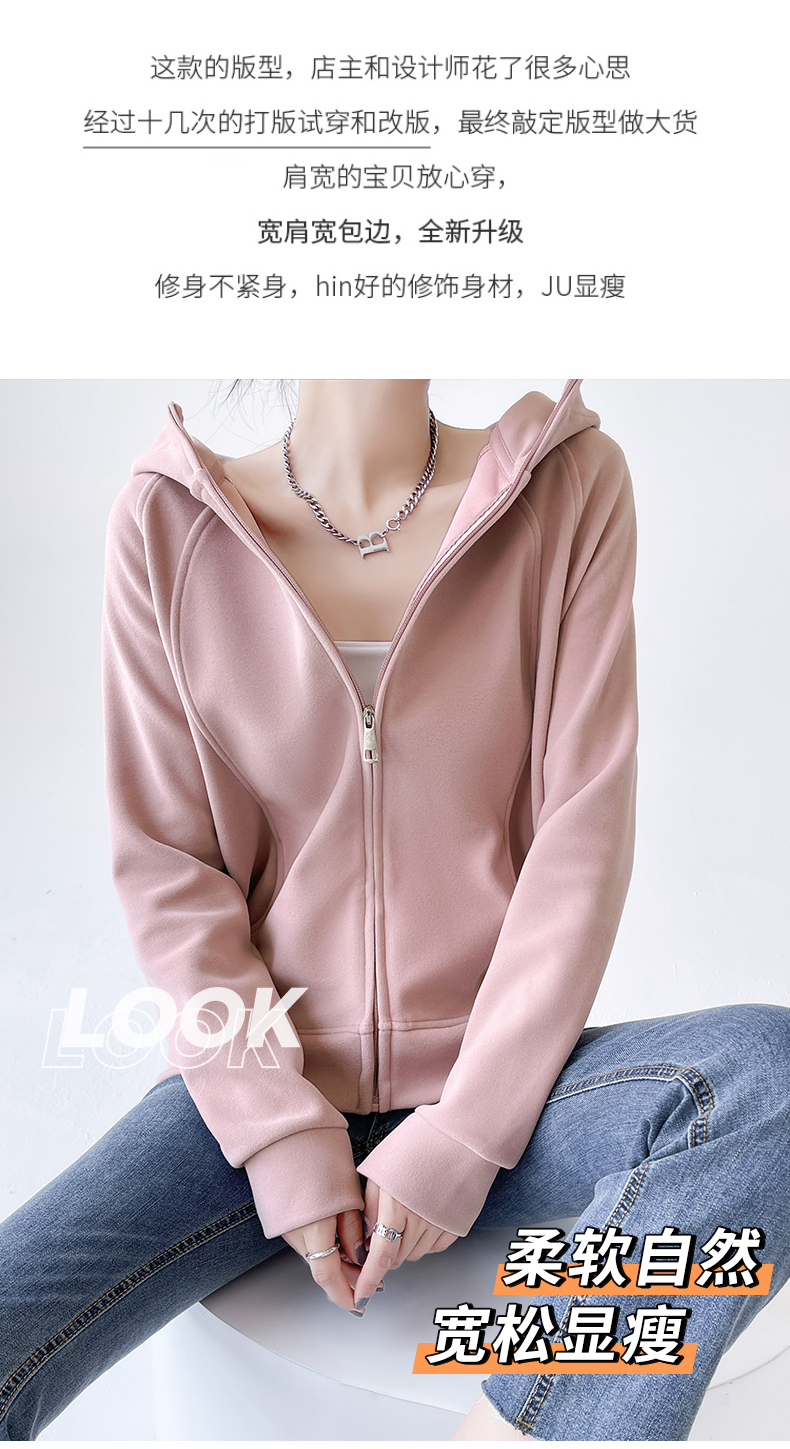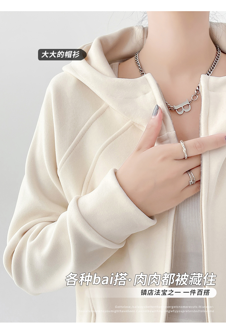 实拍2025新款修身外套女款正肩卫衣秋冬加绒加厚衣服连帽短款上衣