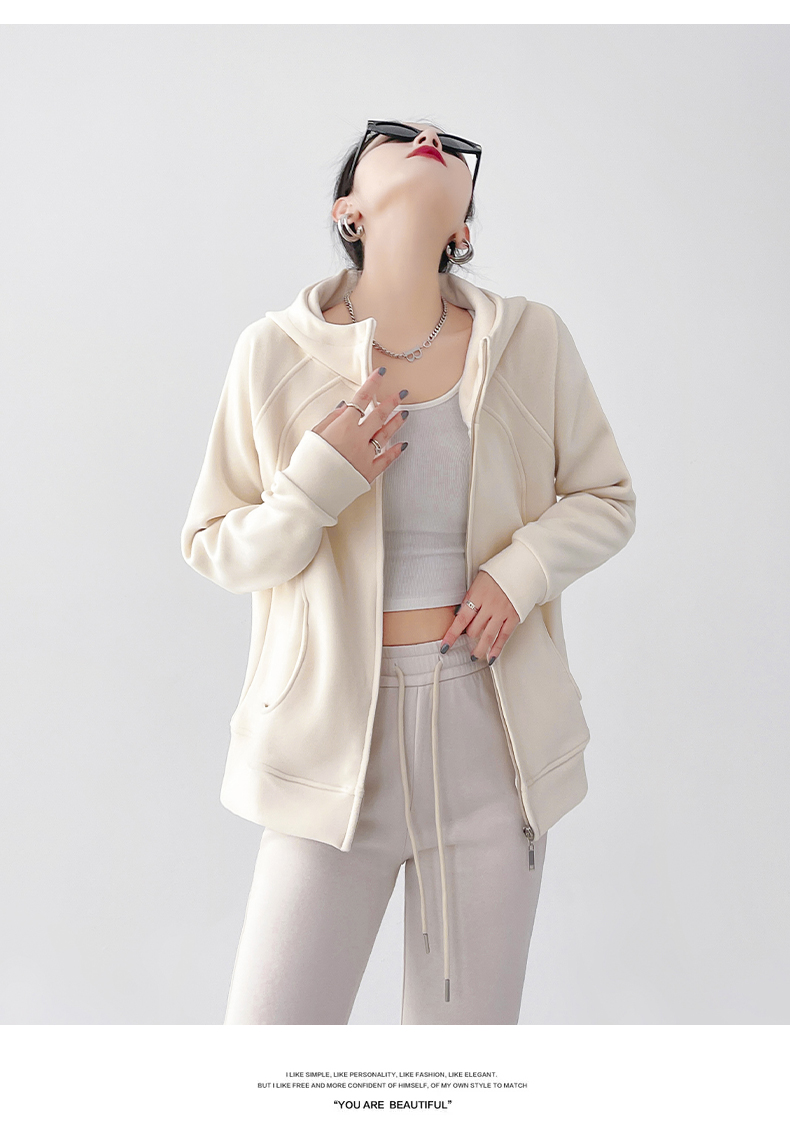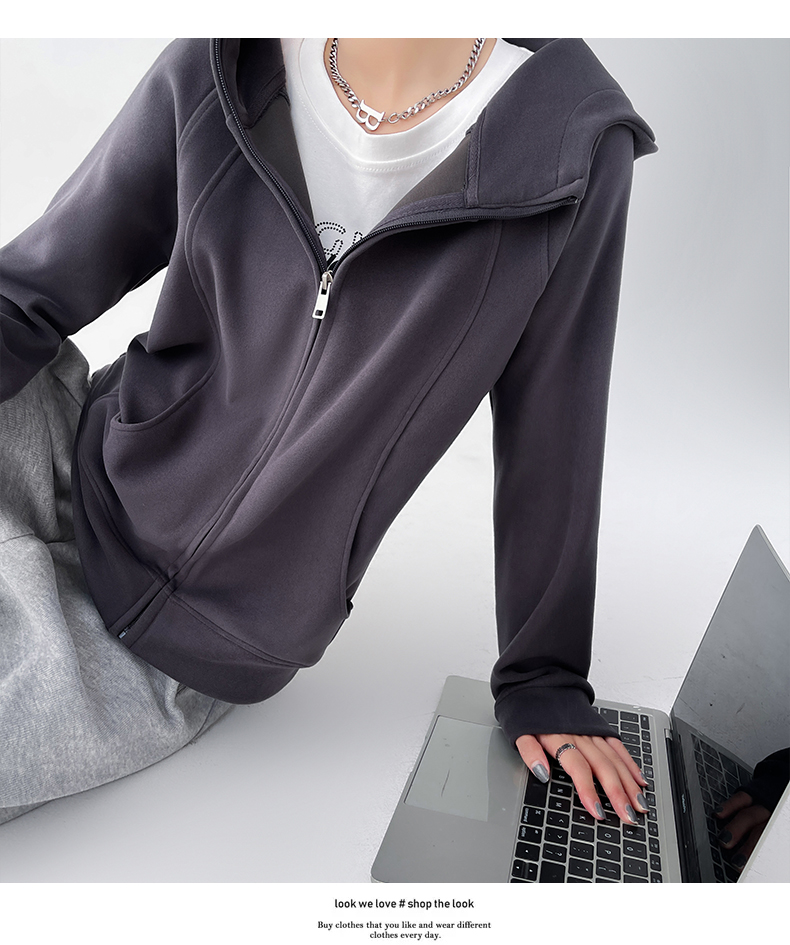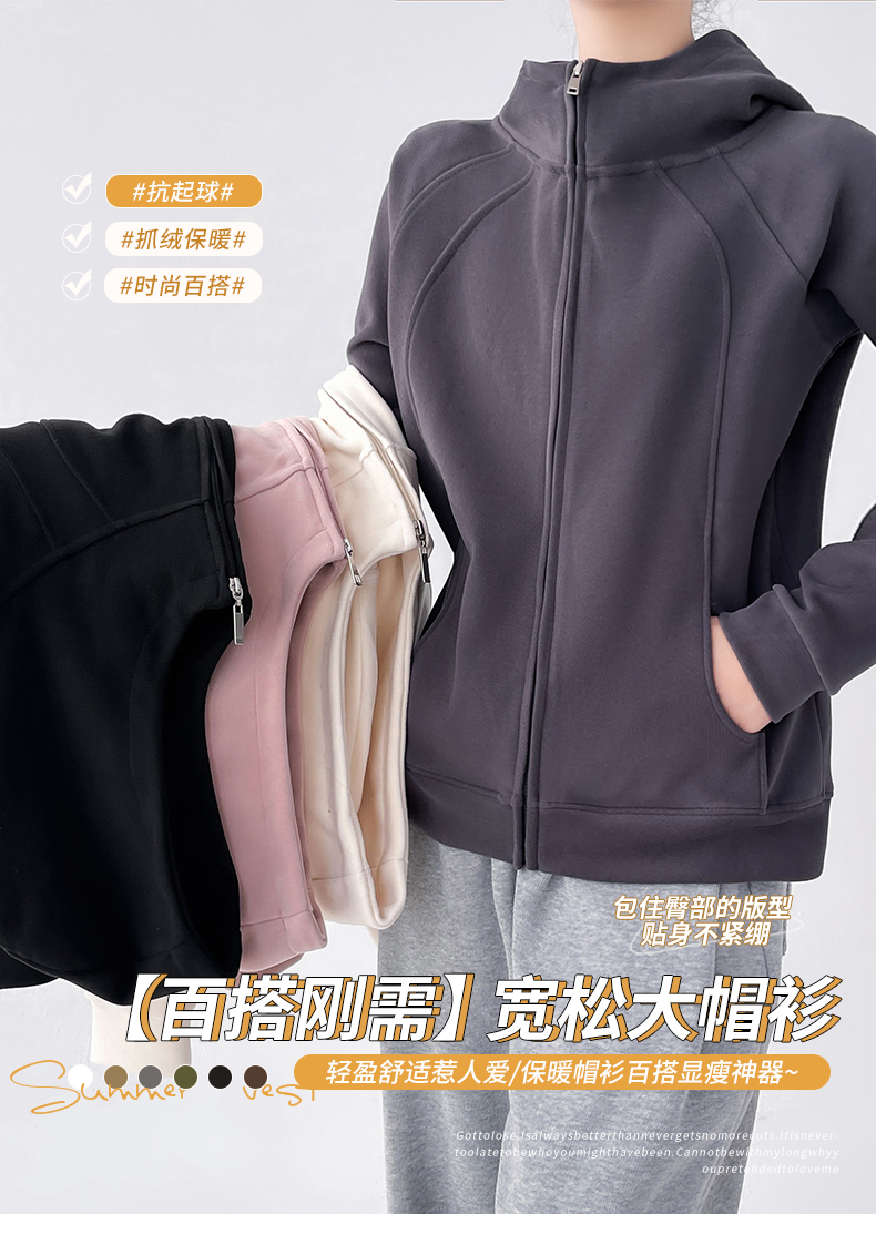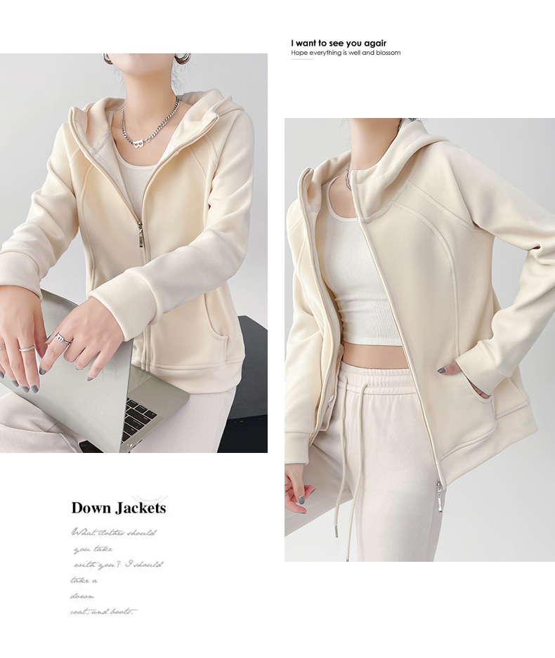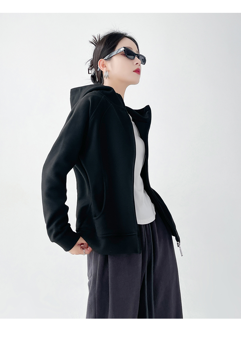 实拍2025新款修身外套女款正肩卫衣秋冬加绒加厚衣服连帽短款上衣