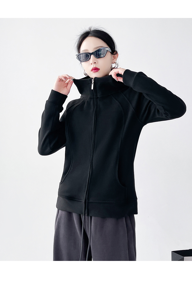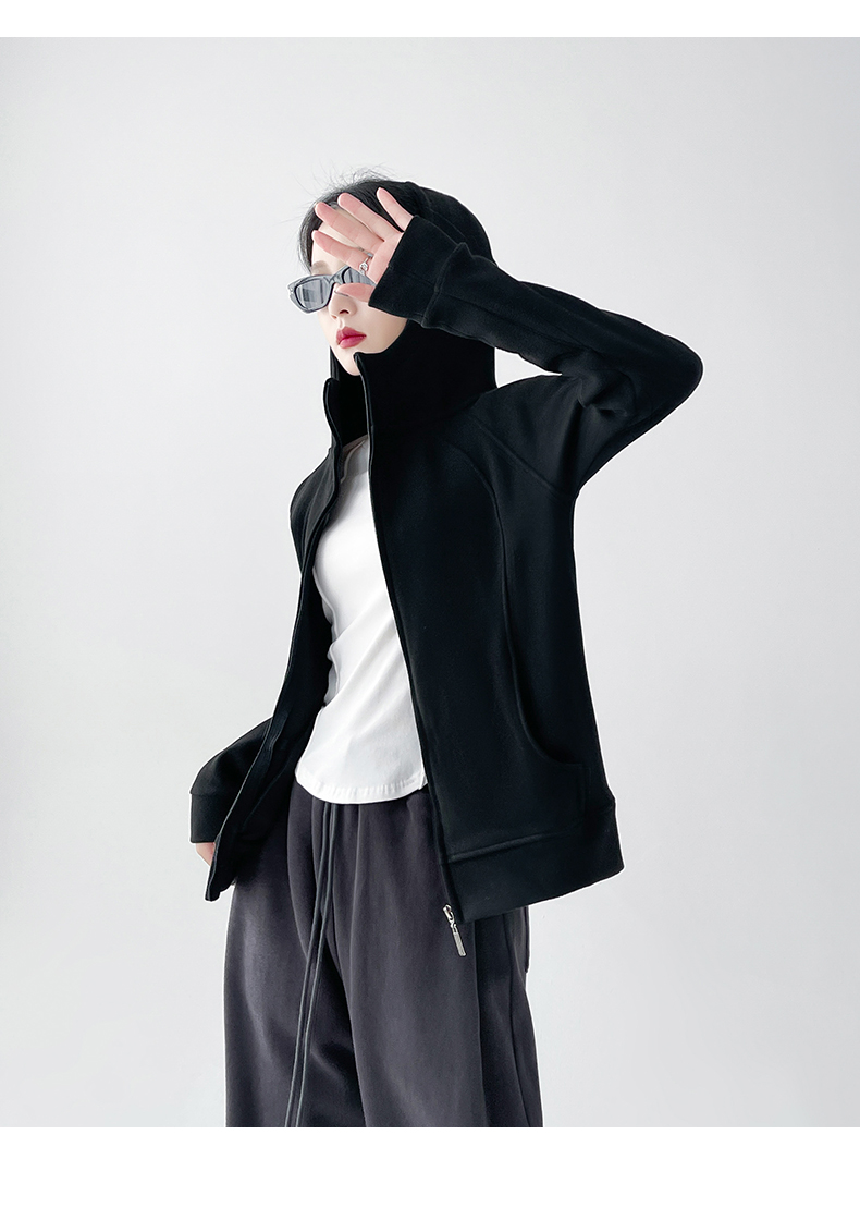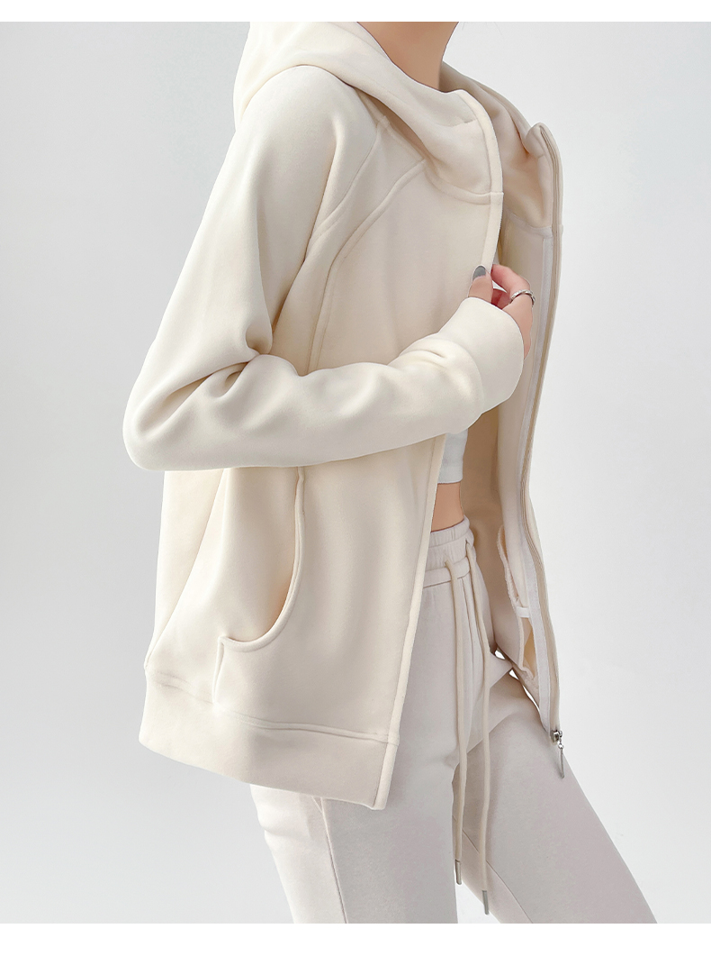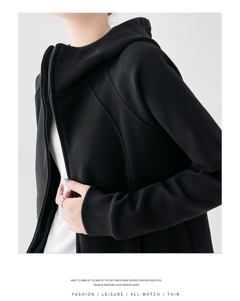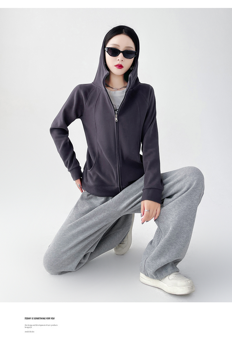 实拍2025新款修身外套女款正肩卫衣秋冬加绒加厚衣服连帽短款上衣