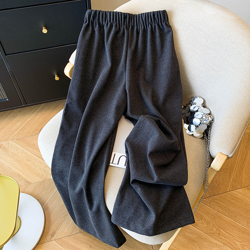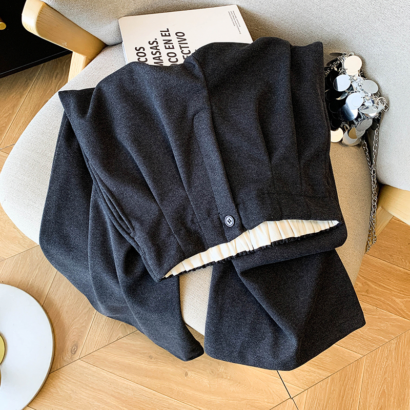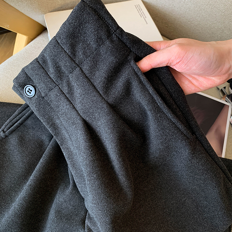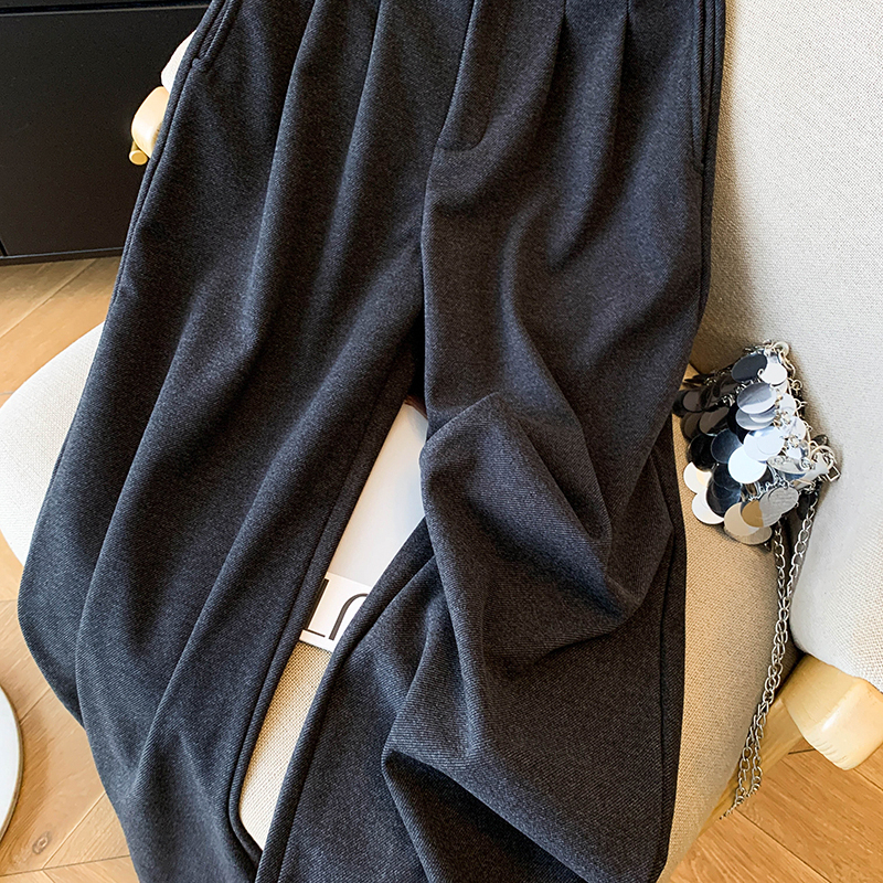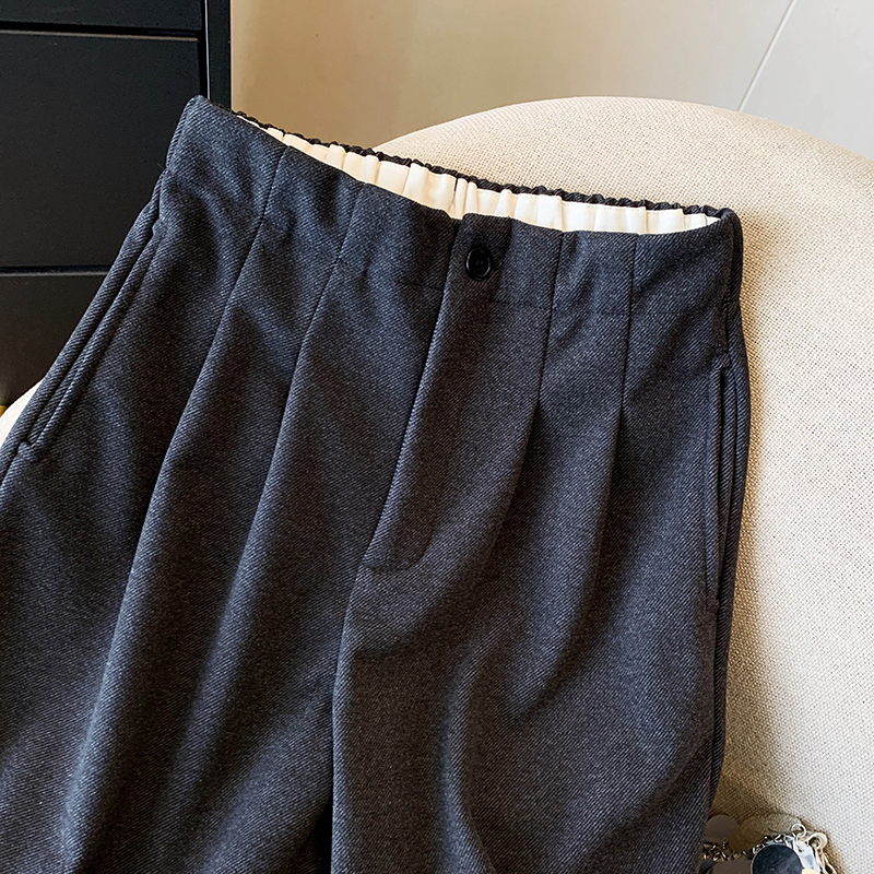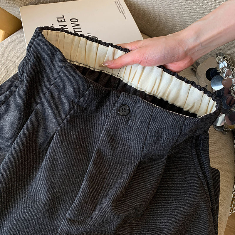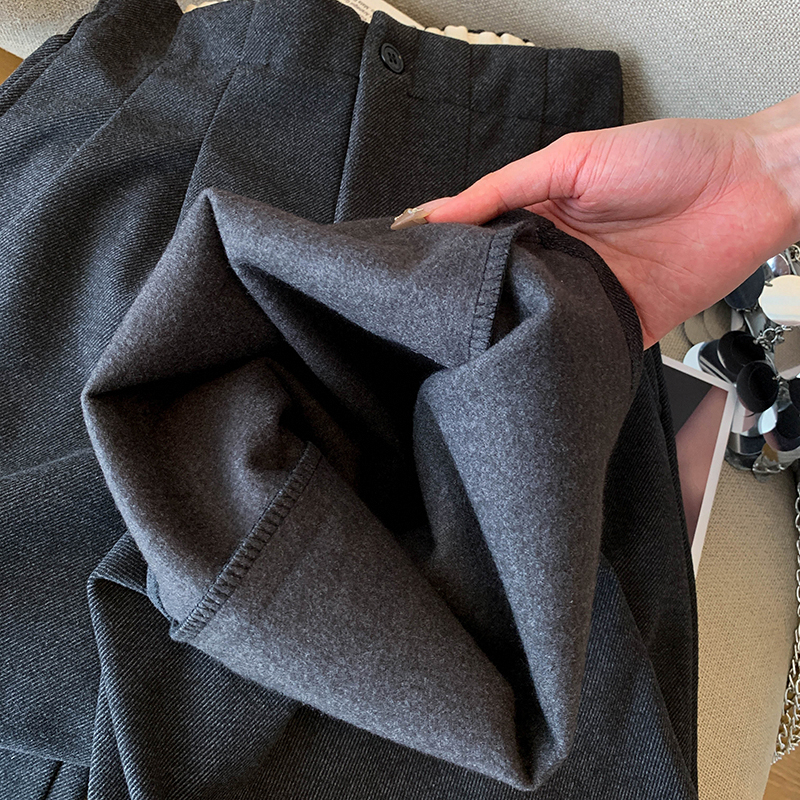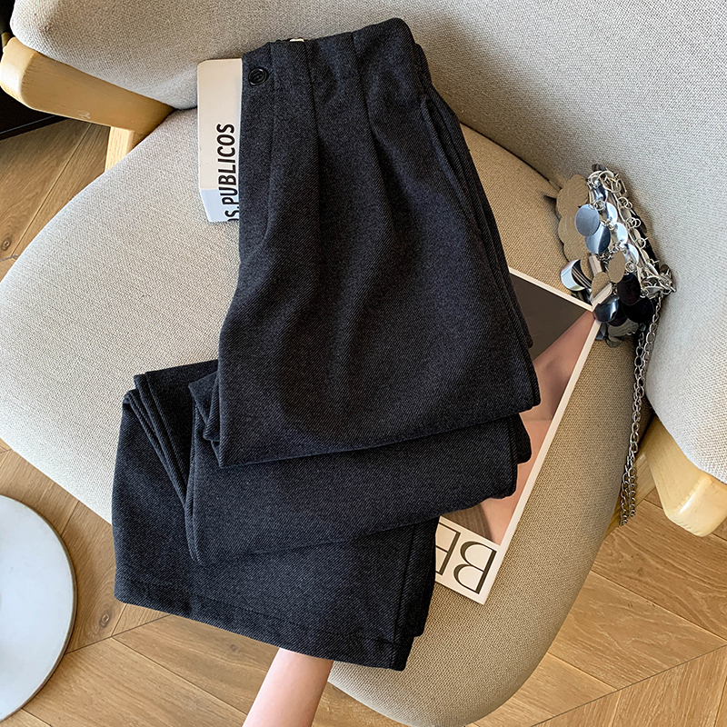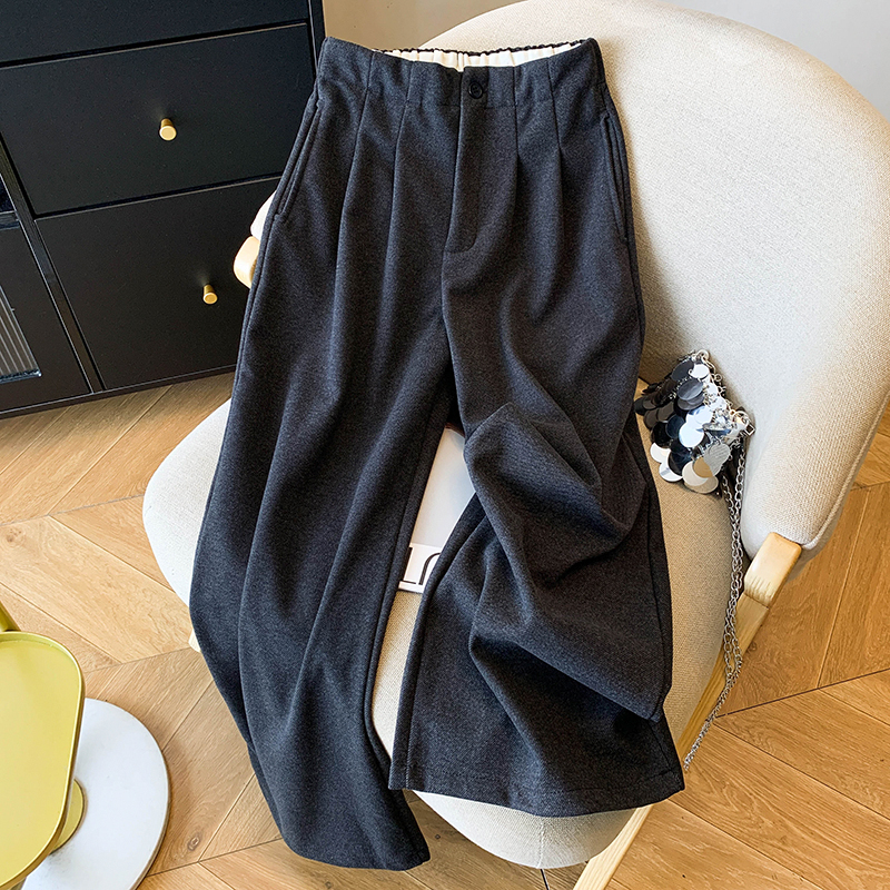 毛呢休闲裤女2025春秋新款高腰显瘦褶皱垂感宽松直筒裤阔腿九分裤