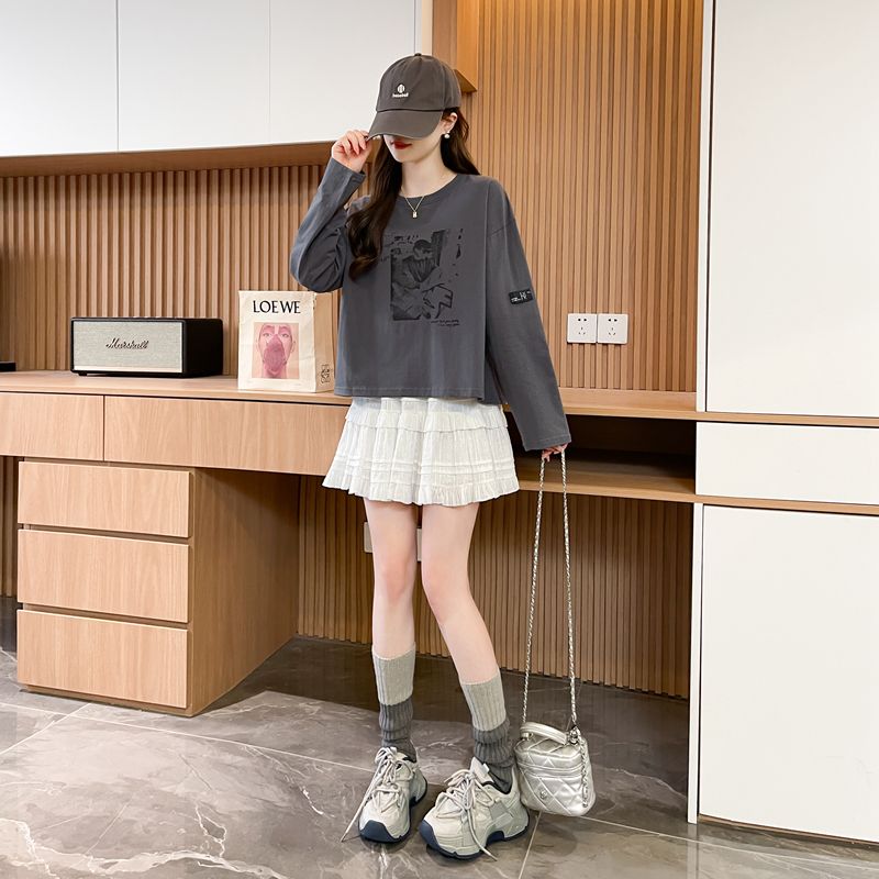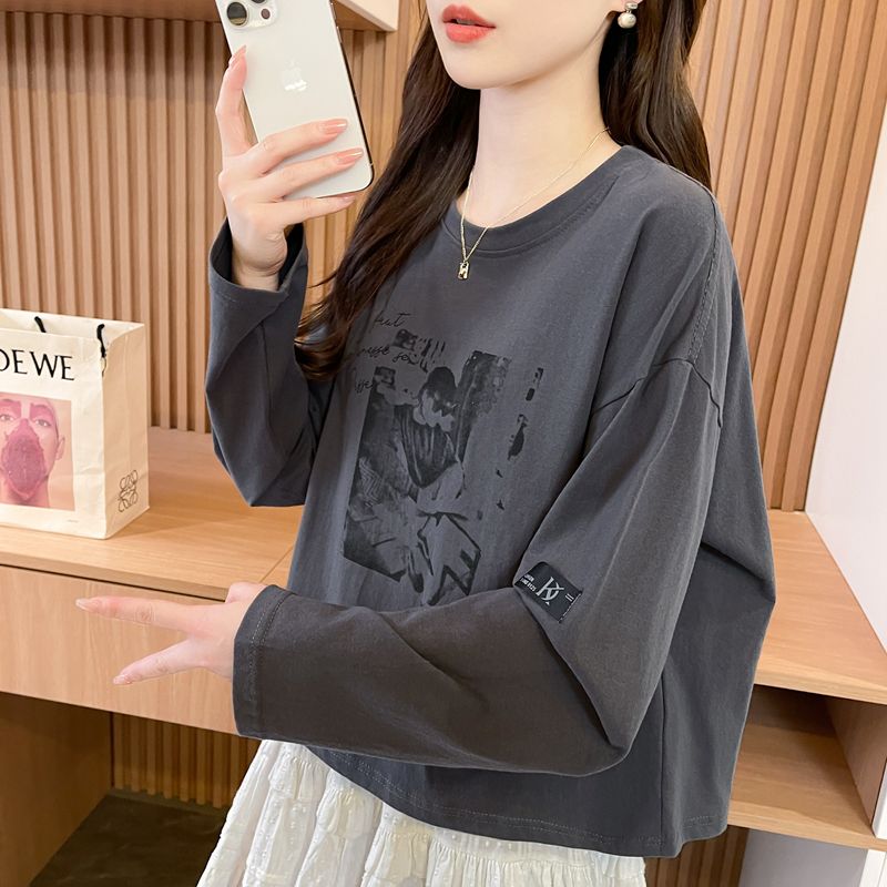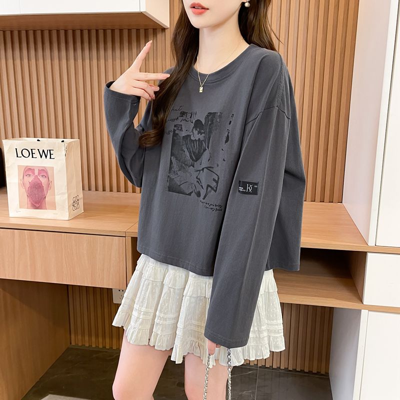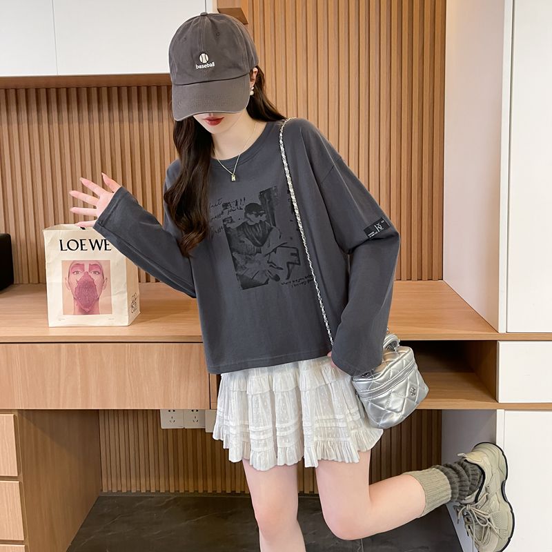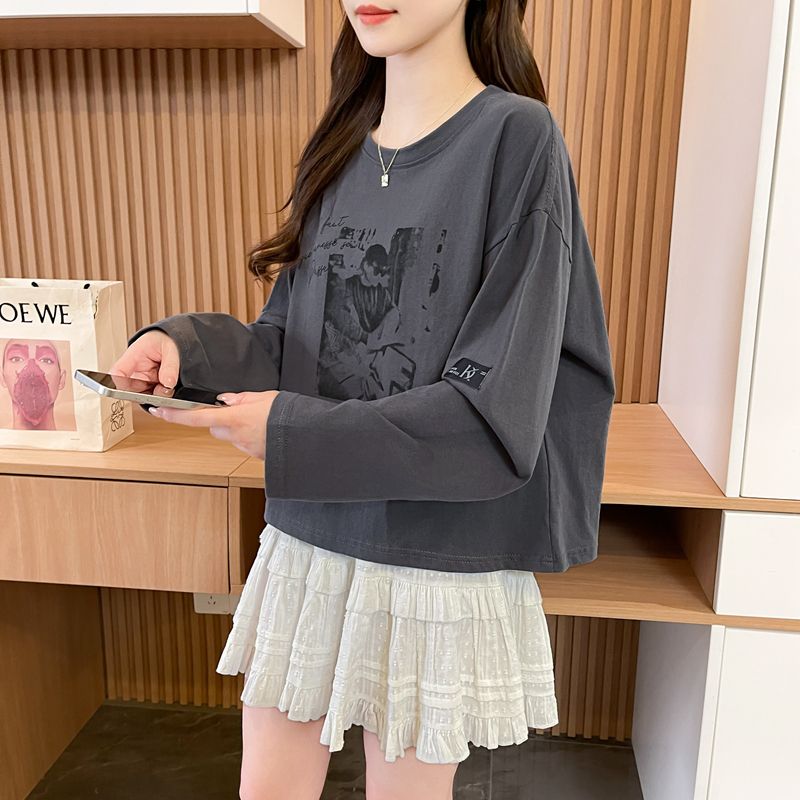 实拍 21支纯棉后包领 2025春秋短款长袖t恤上衣
