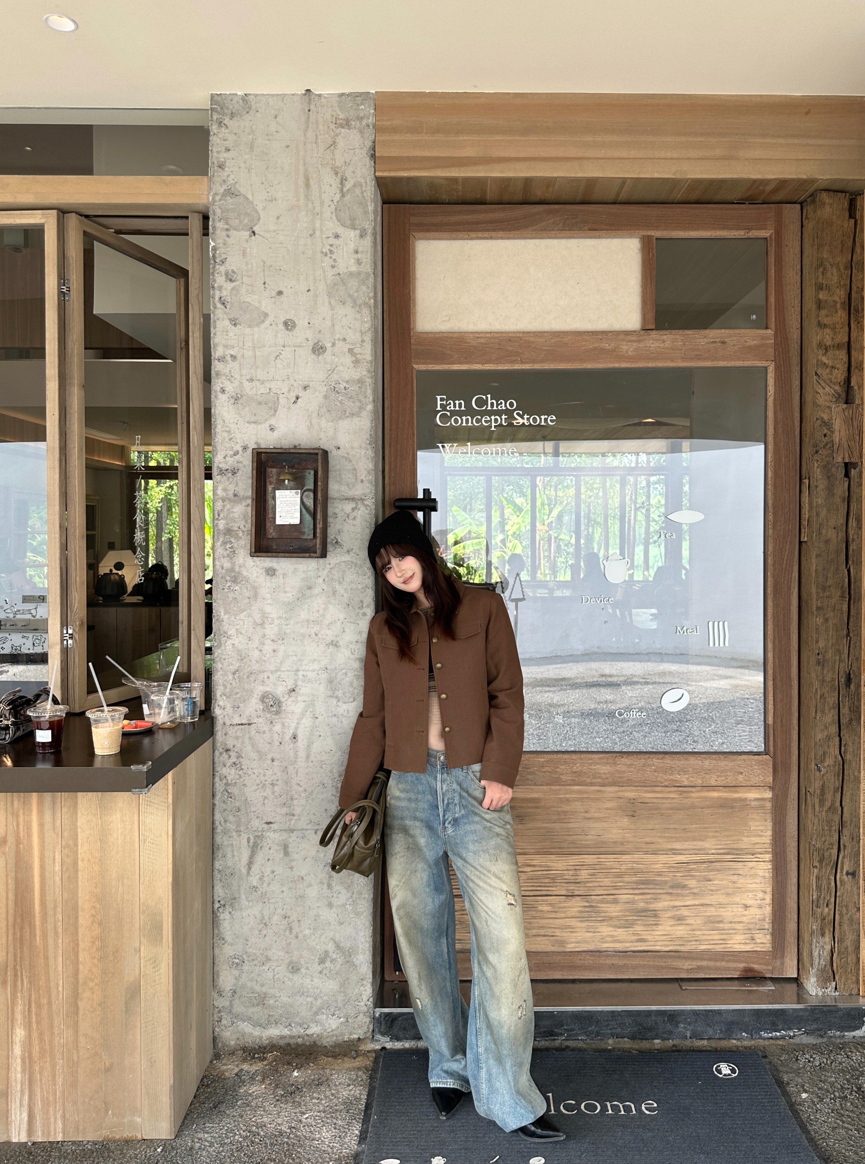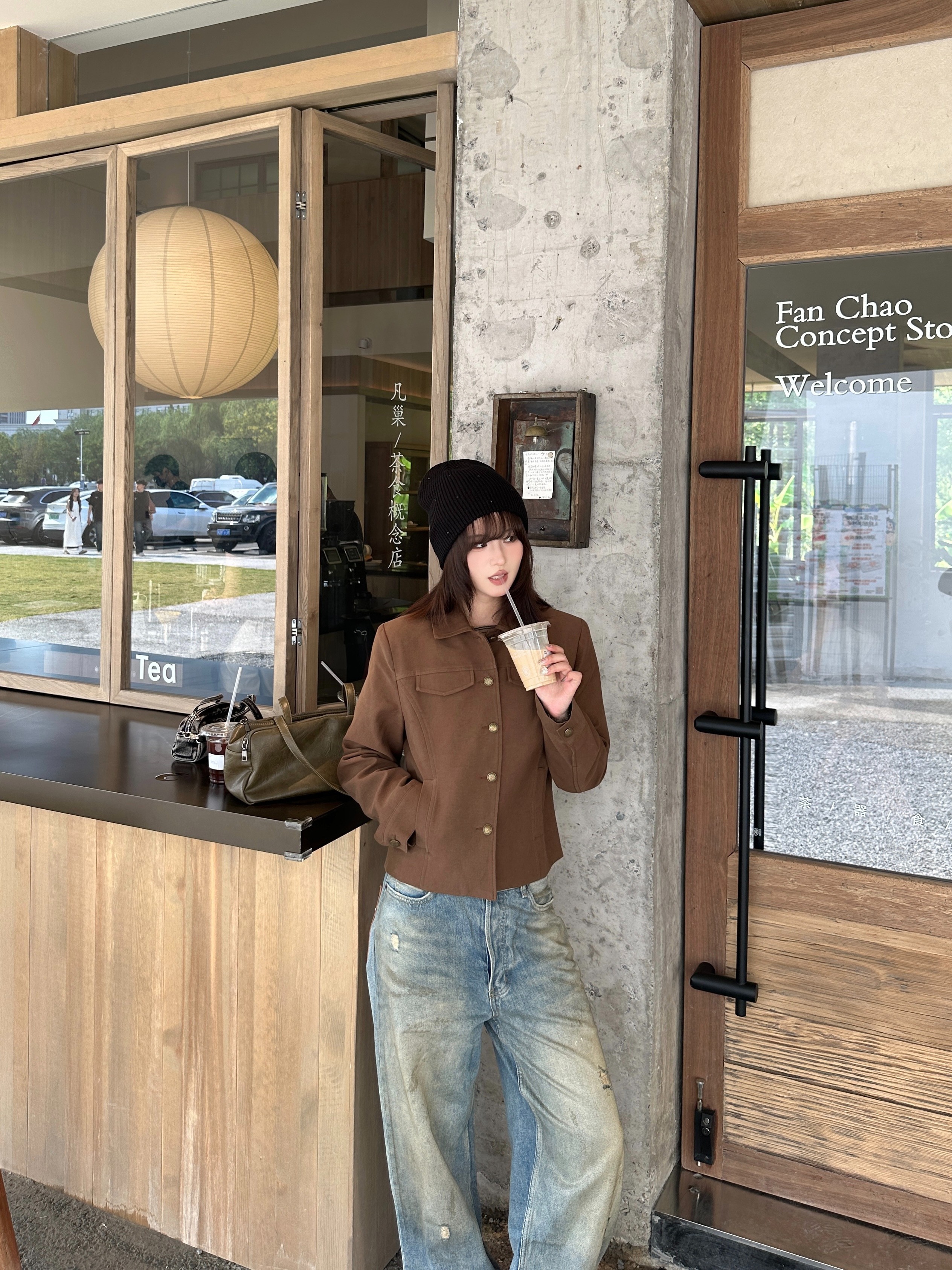 源头工厂来版定制—美式复古棕立领工装外套修身显瘦短款夹克上衣