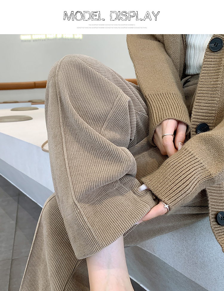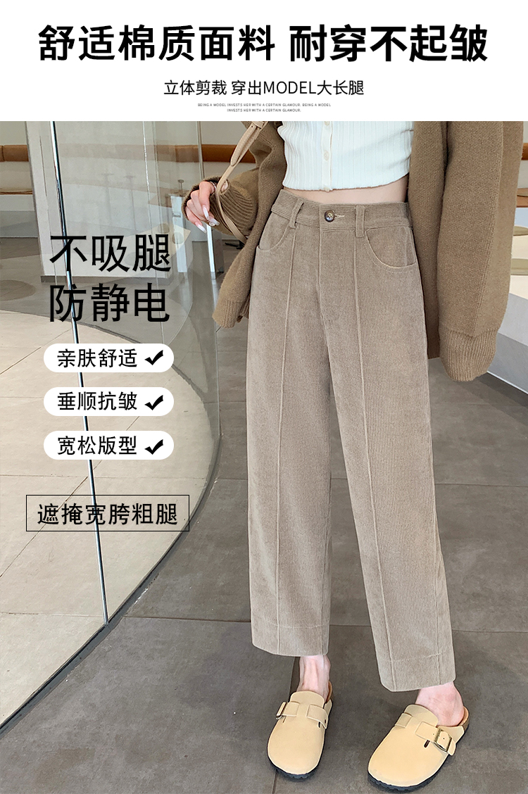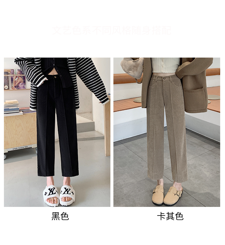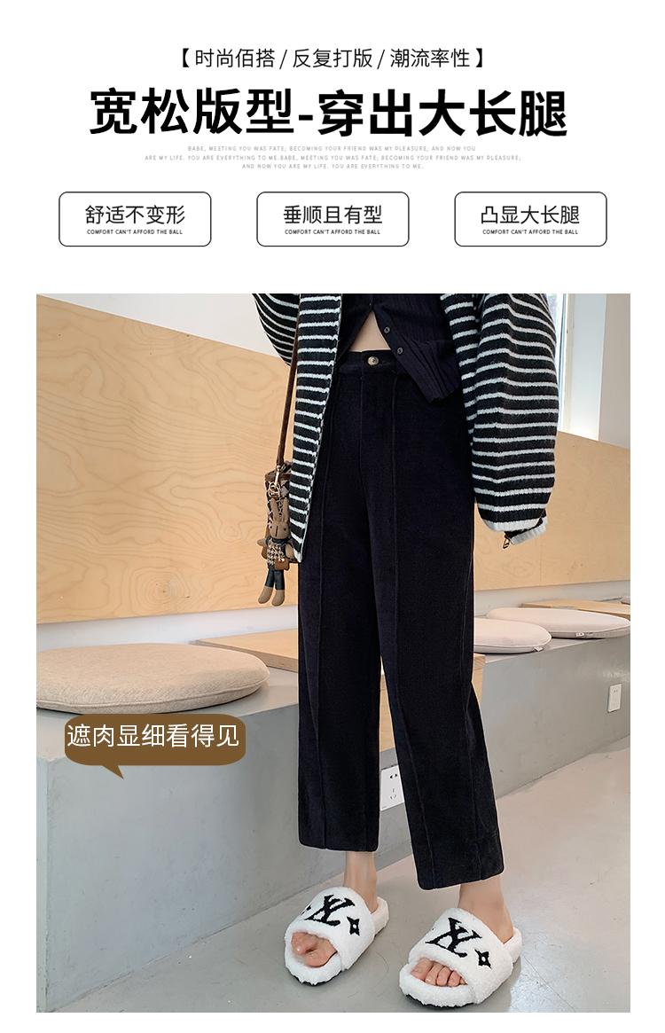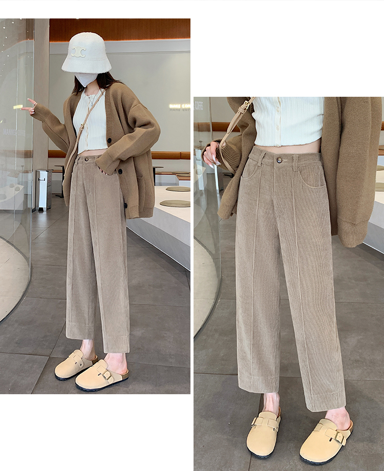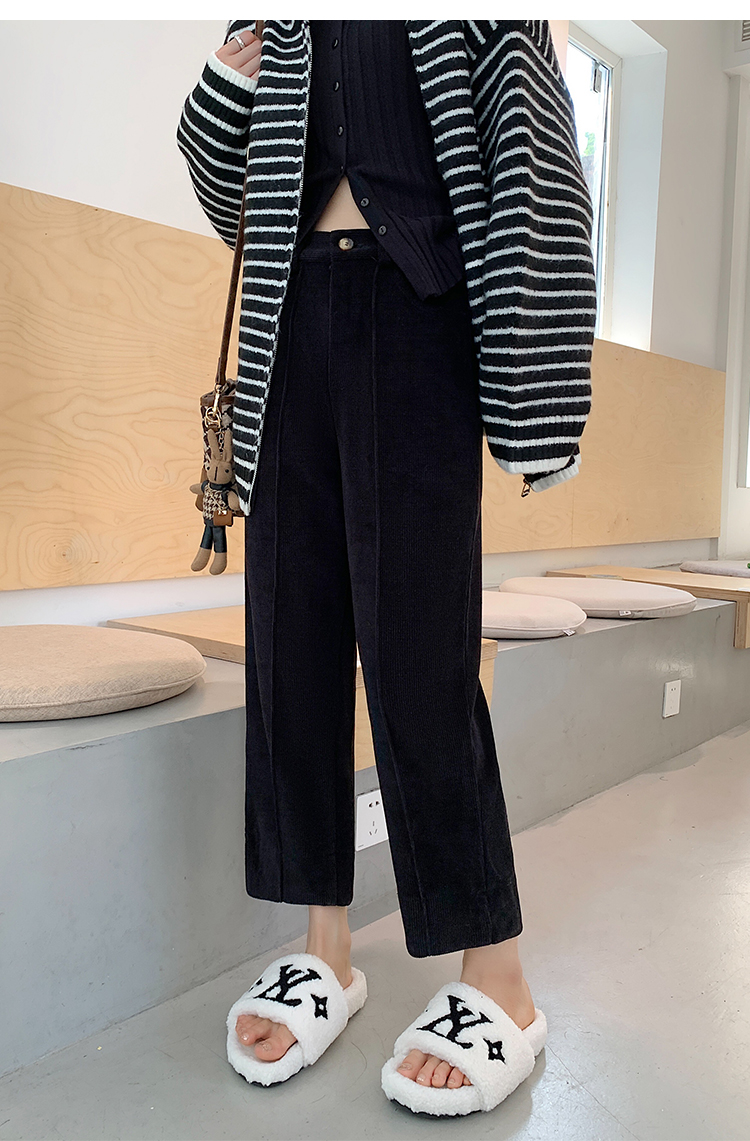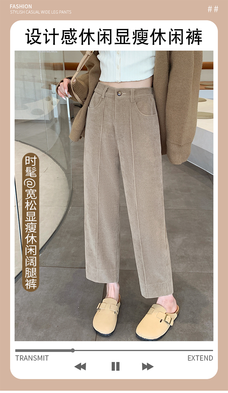实拍学院风阔腿裤女秋冬垂感显瘦裤宽松百搭高腰灯芯绒直筒九分裤