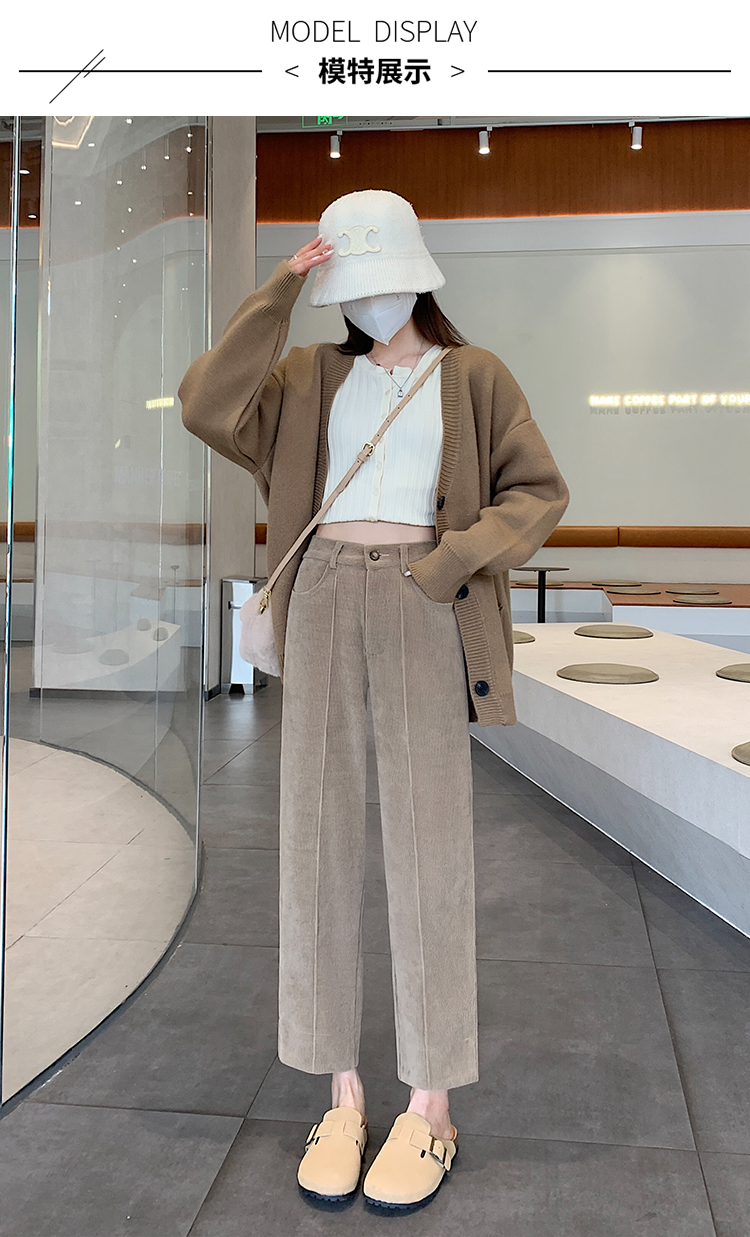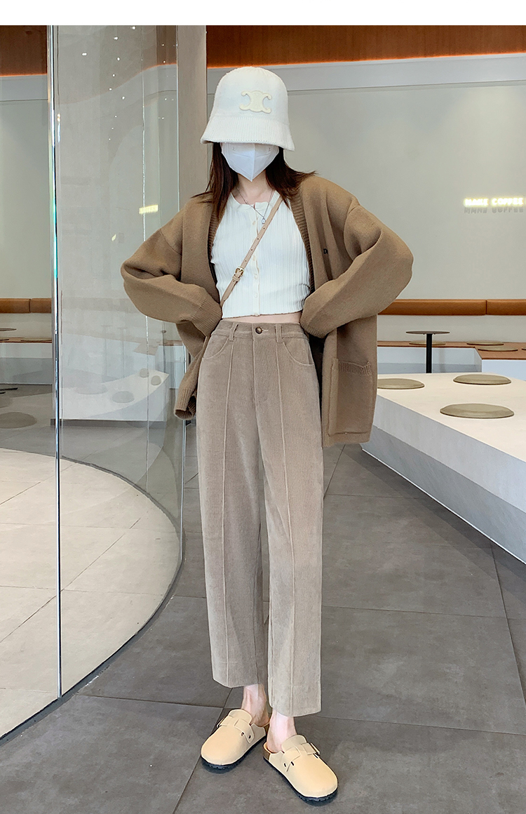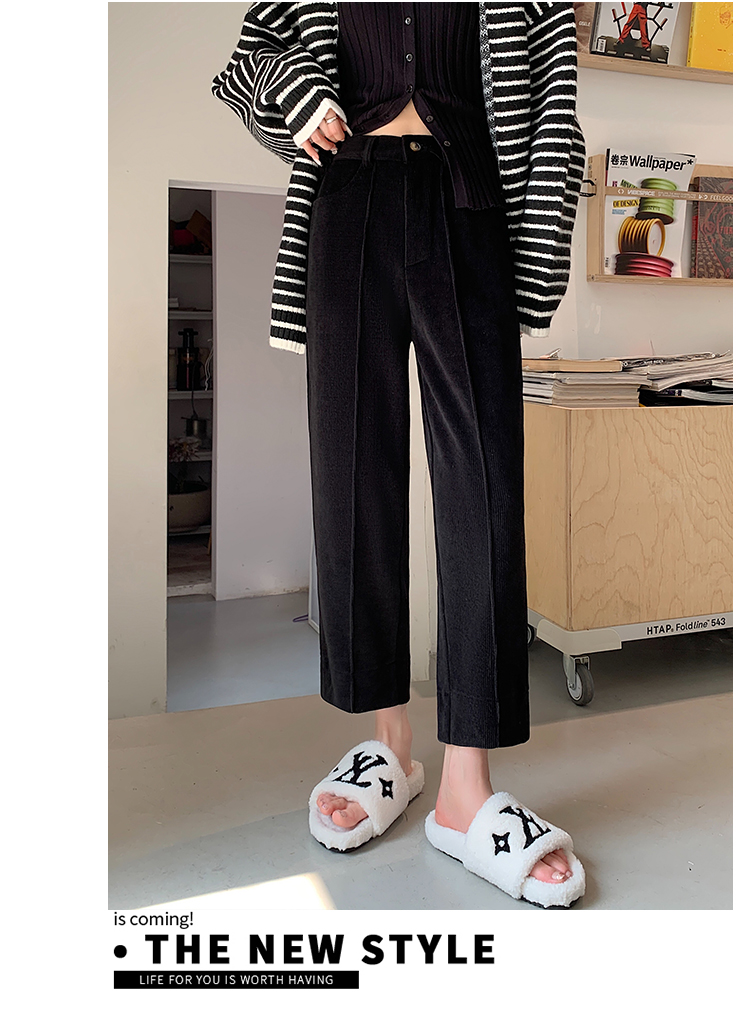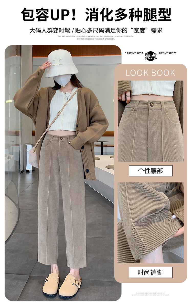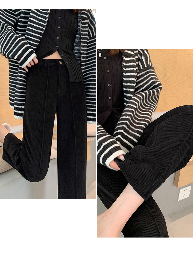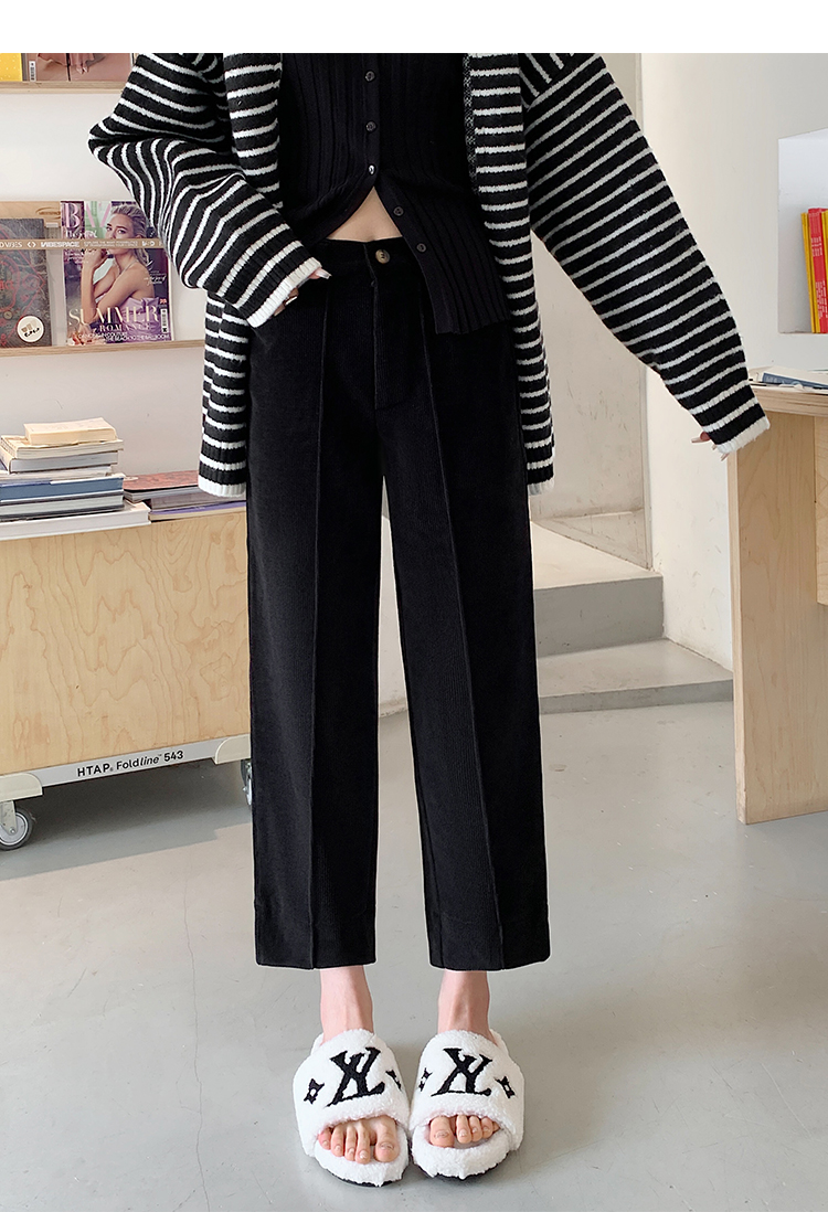 实拍学院风阔腿裤女秋冬垂感显瘦裤宽松百搭高腰灯芯绒直筒九分裤