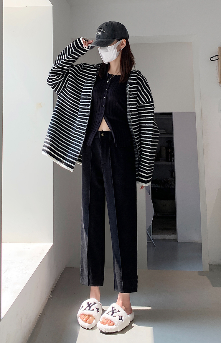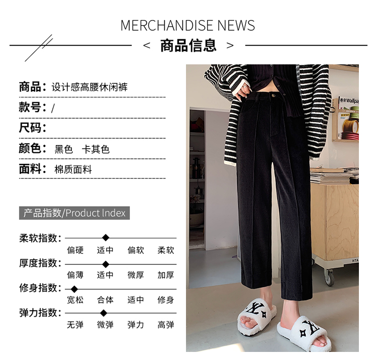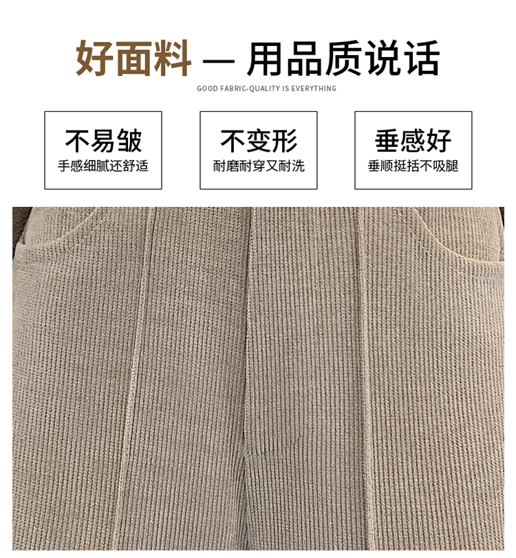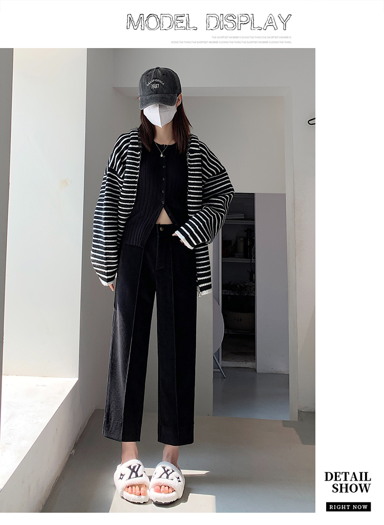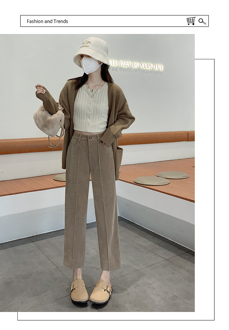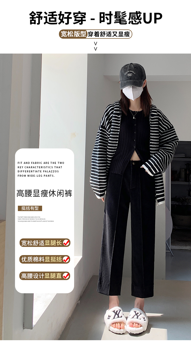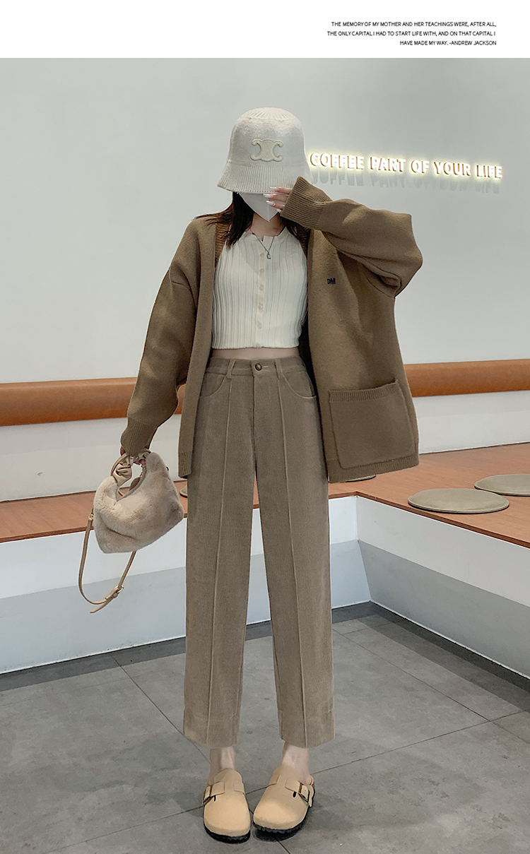 实拍学院风阔腿裤女秋冬垂感显瘦裤宽松百搭高腰灯芯绒直筒九分裤