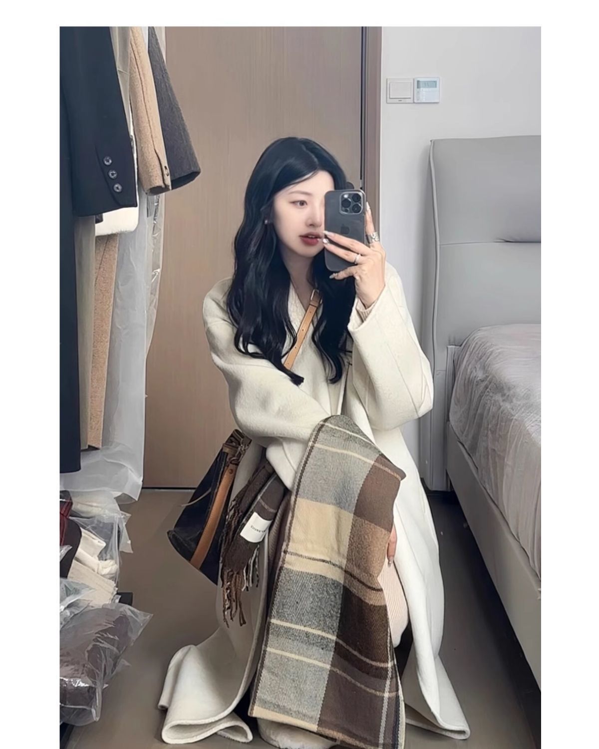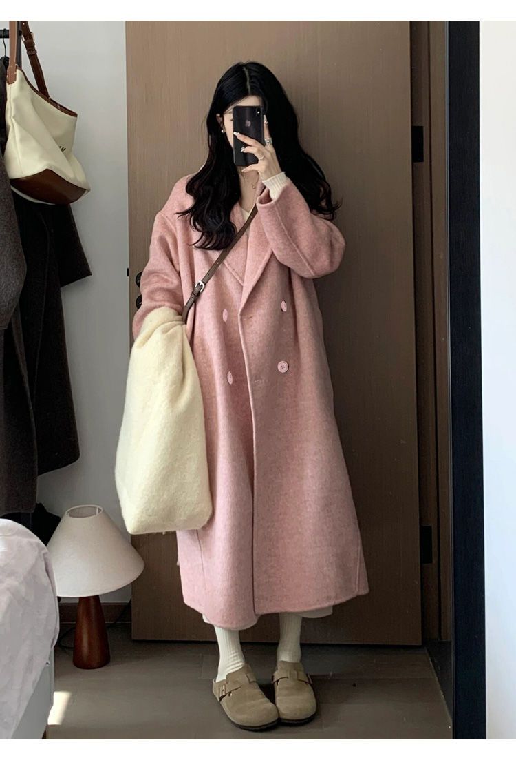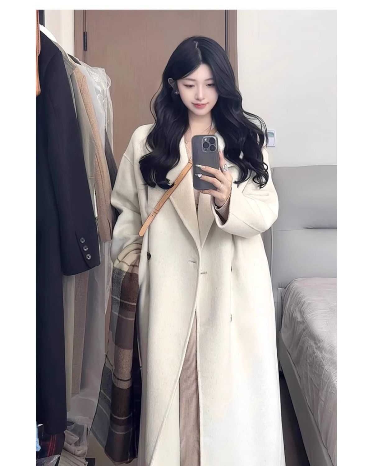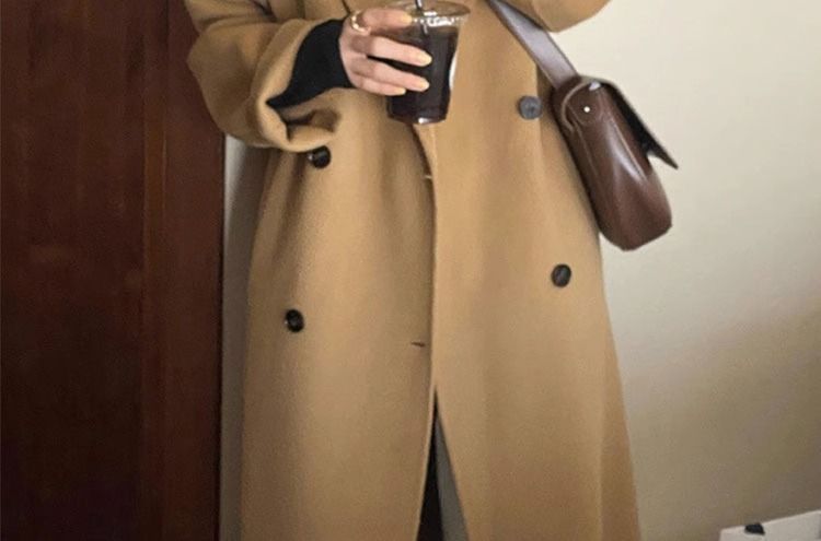 燕麦色毛呢大衣女2025秋冬新款韩版宽松中长款爆款呢外套
