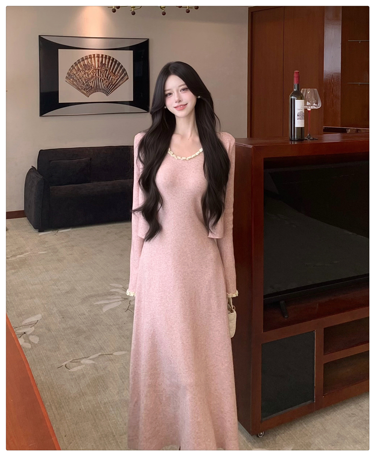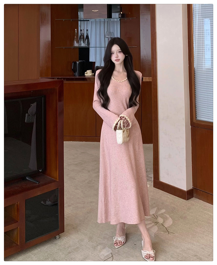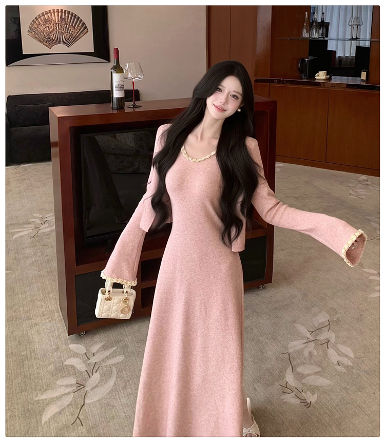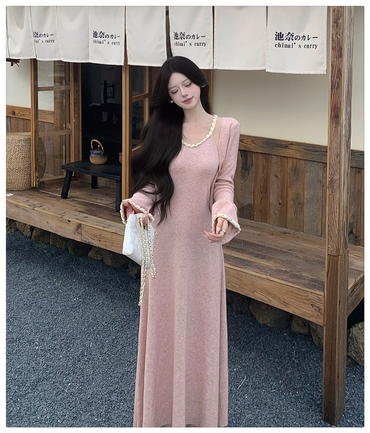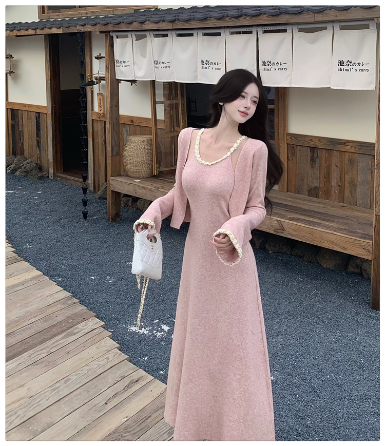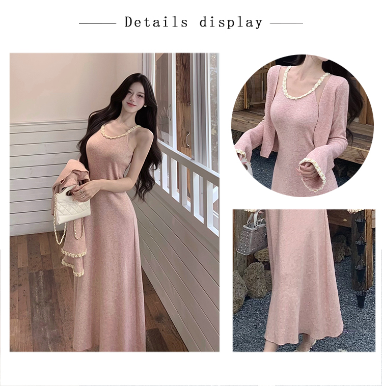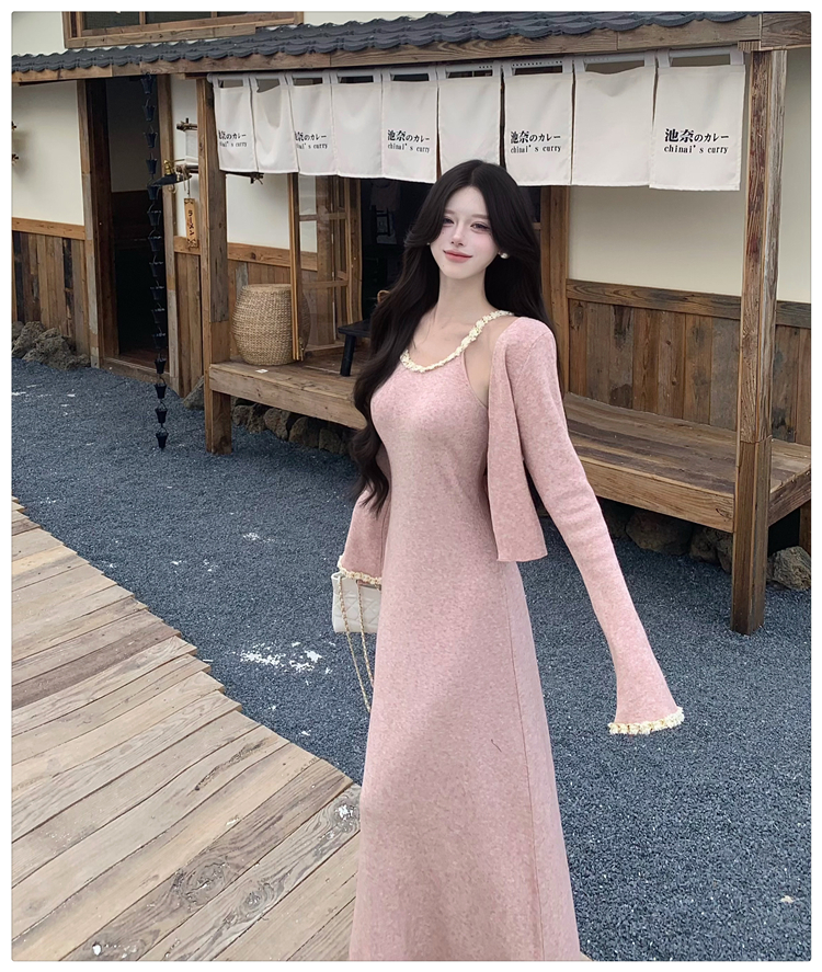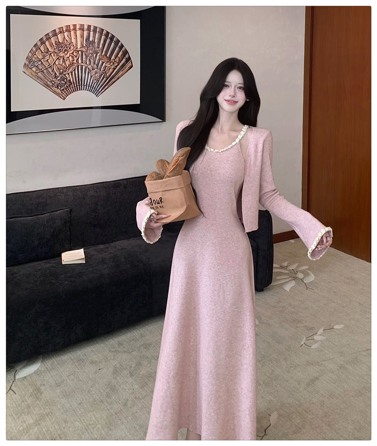 小香风链条吊带针织套装连衣裙女秋冬纯欲风修身A字长裙两件套