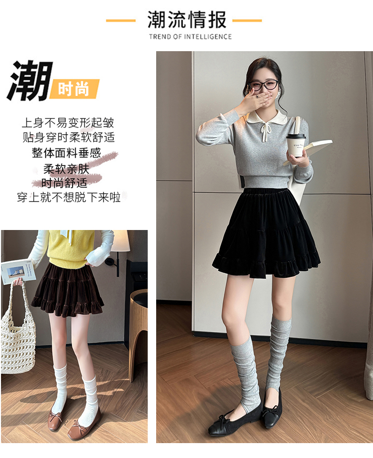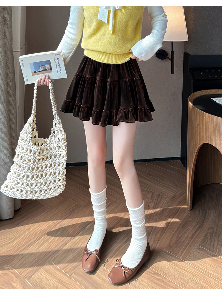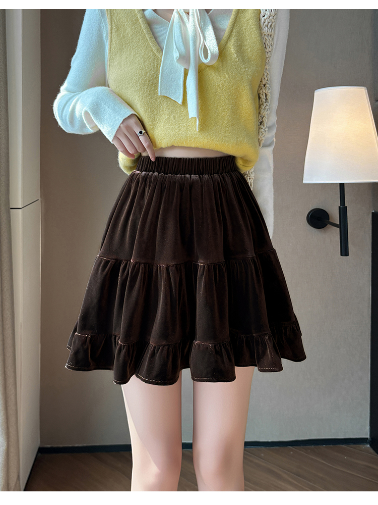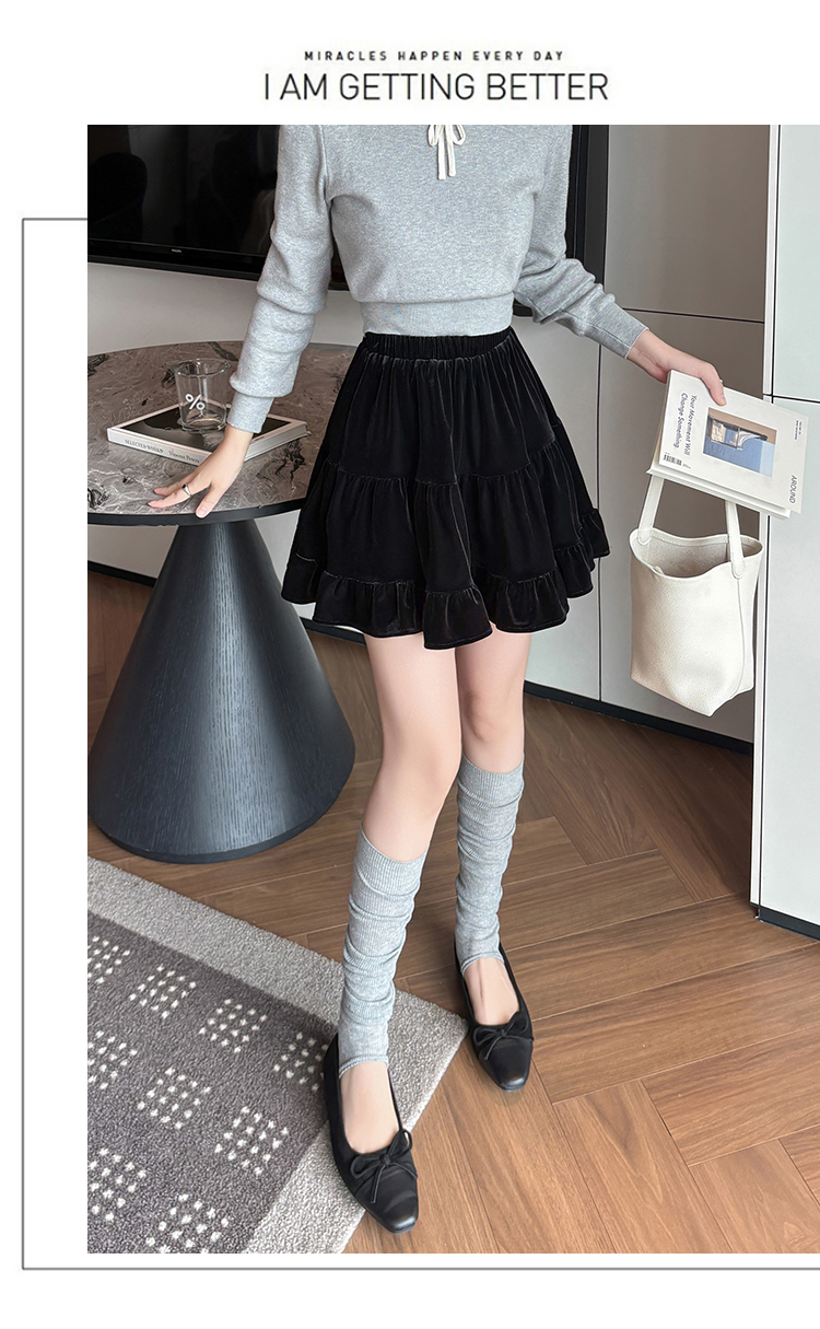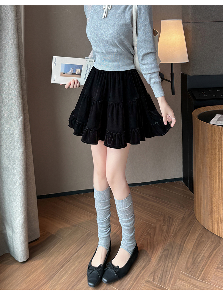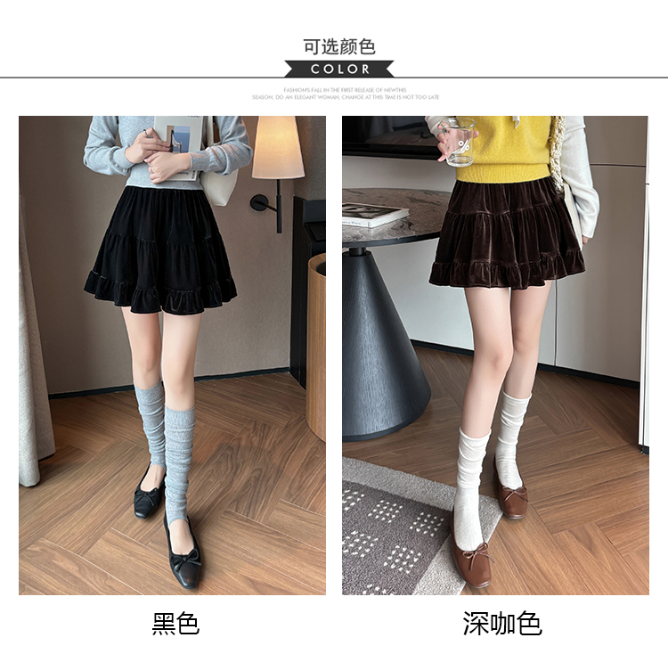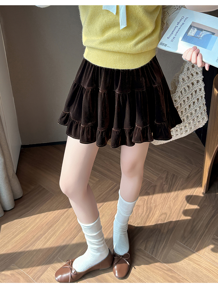 有货2025秋冬芭蕾风丝绒甜美蛋糕半身裙女A字裙蓬蓬木耳百褶短裙