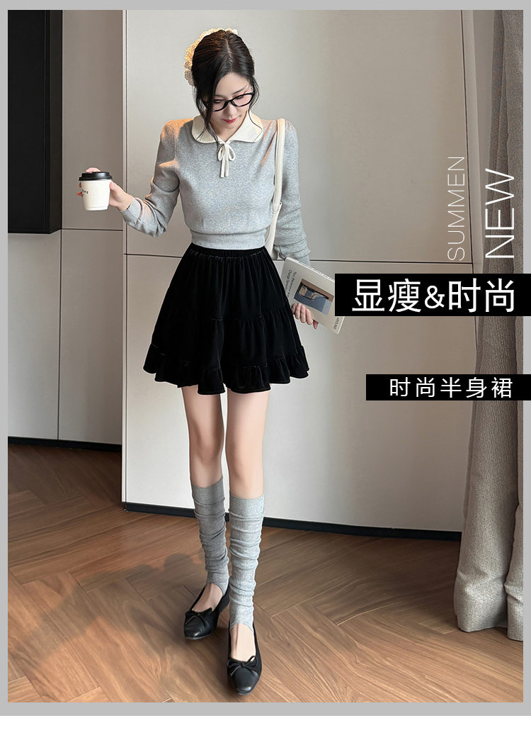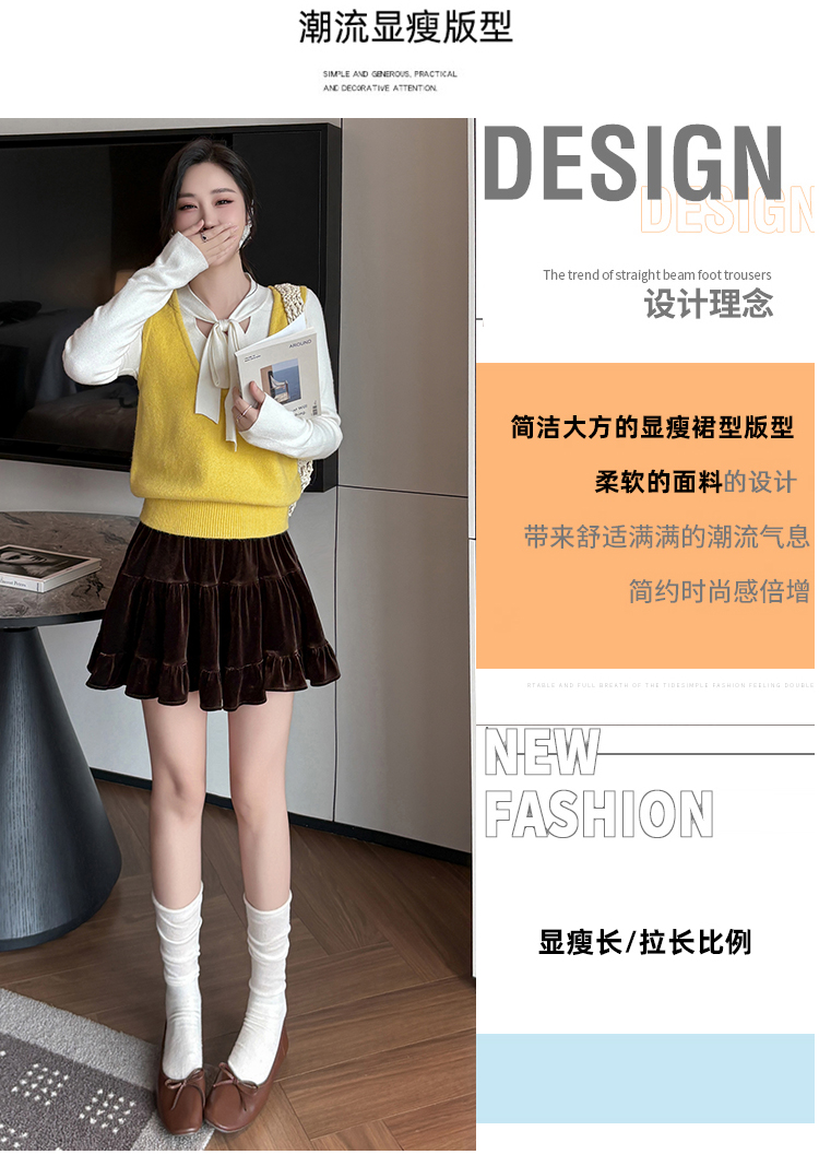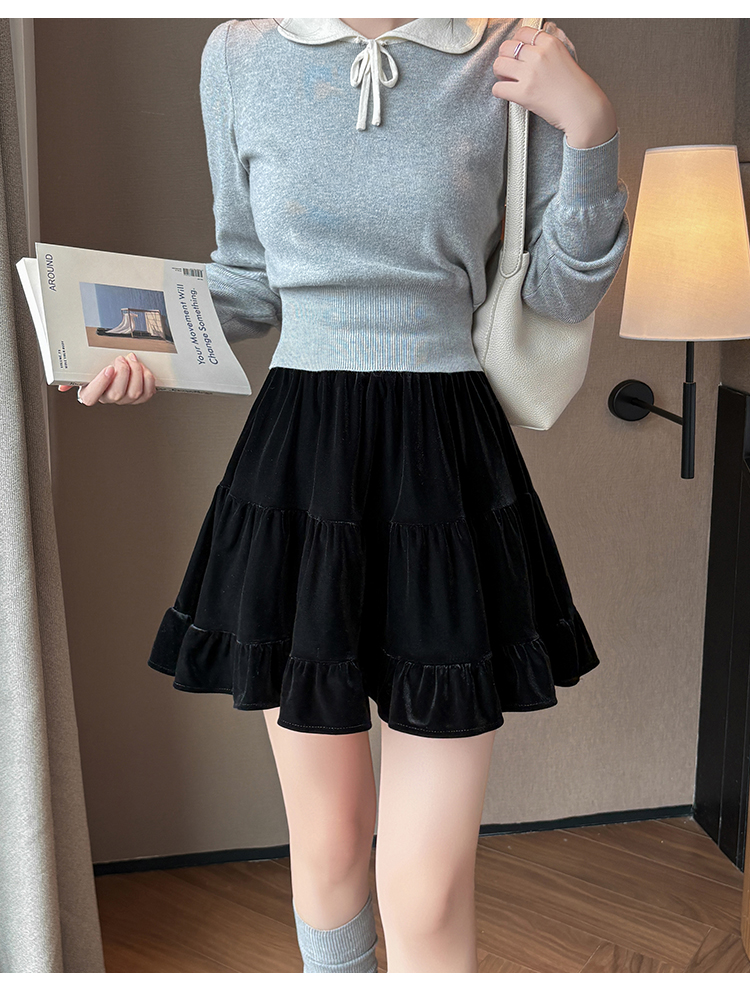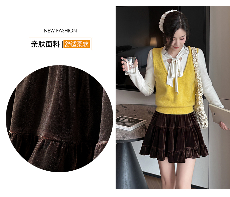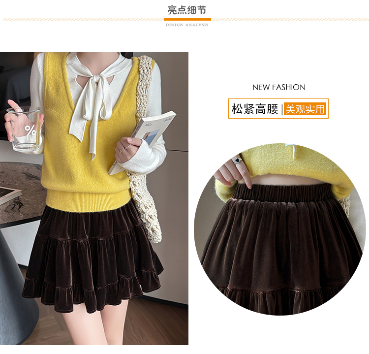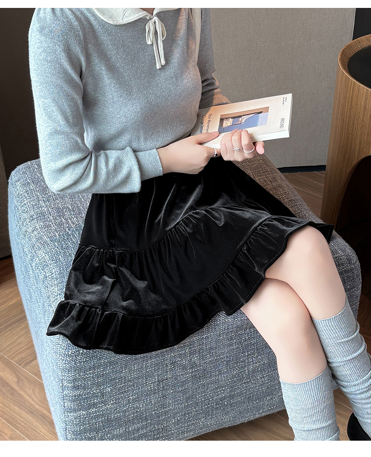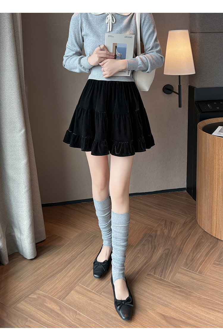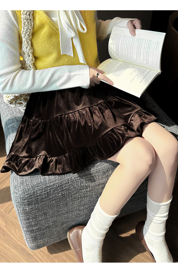 有货2025秋冬芭蕾风丝绒甜美蛋糕半身裙女A字裙蓬蓬木耳百褶短裙