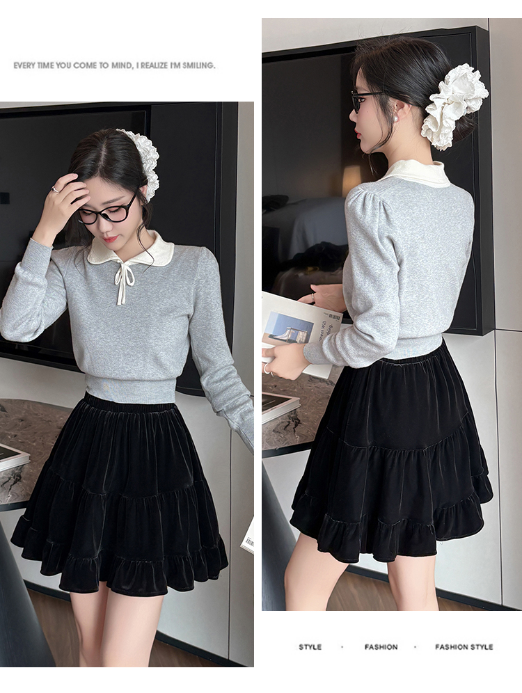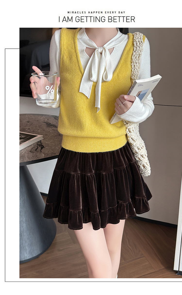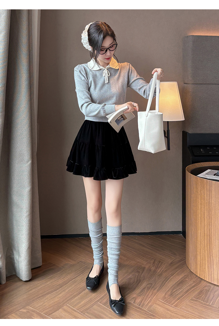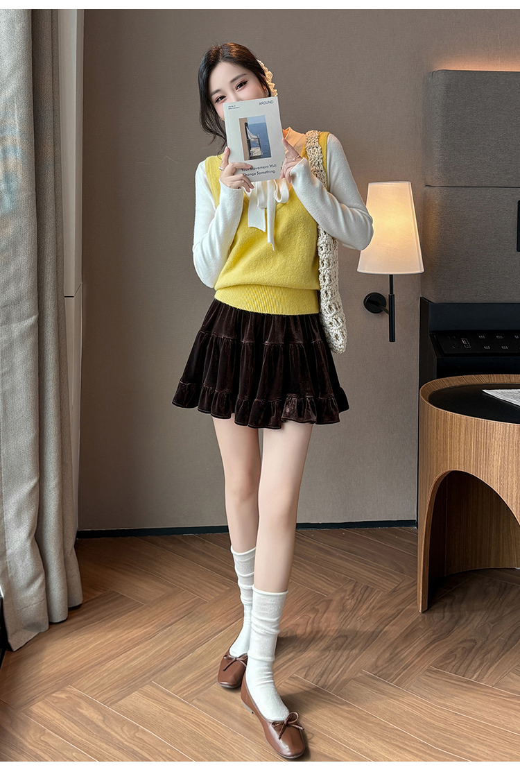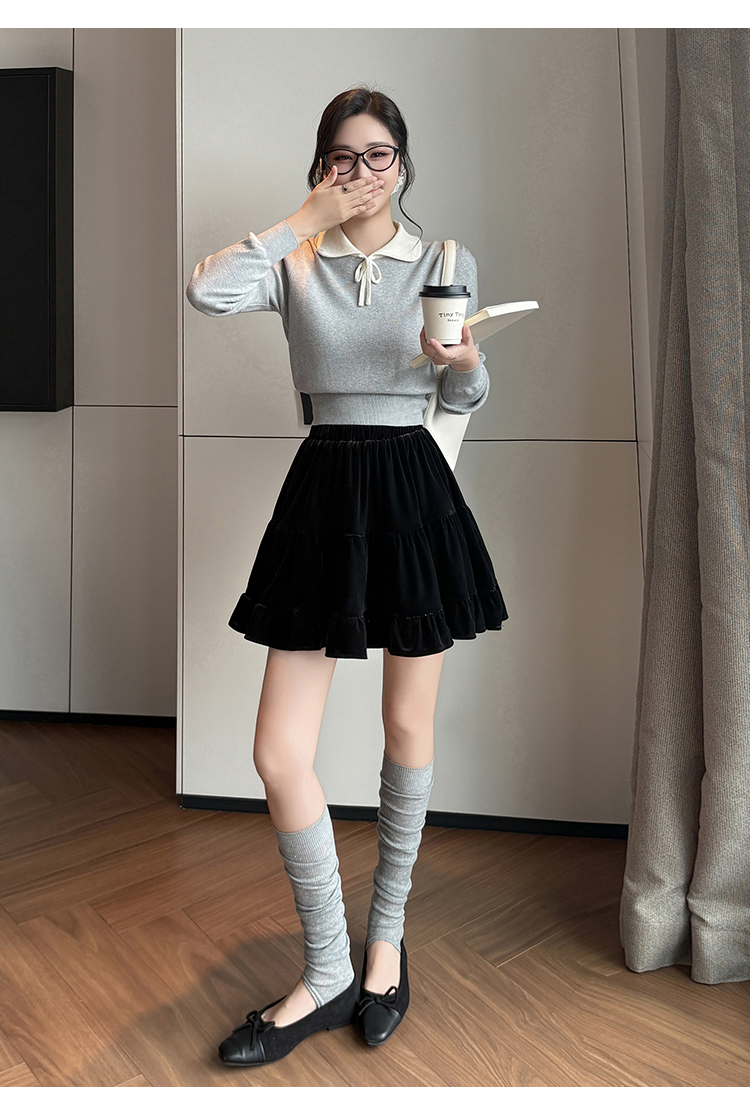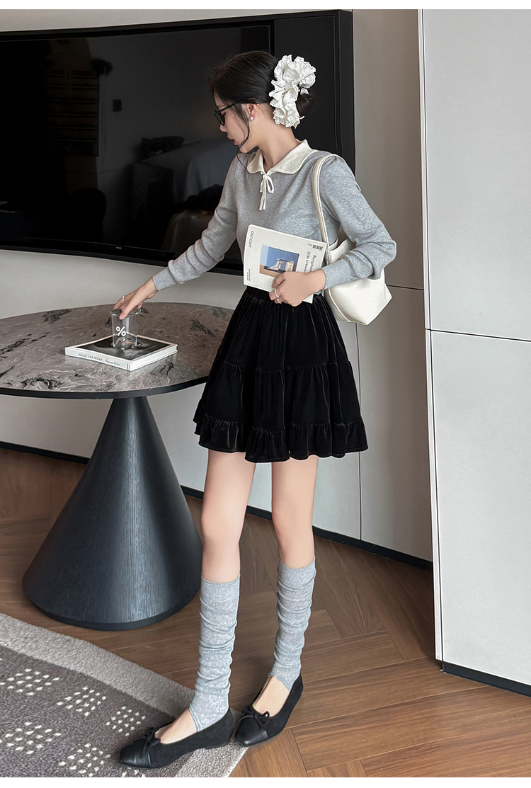 有货2025秋冬芭蕾风丝绒甜美蛋糕半身裙女A字裙蓬蓬木耳百褶短裙