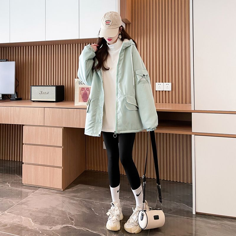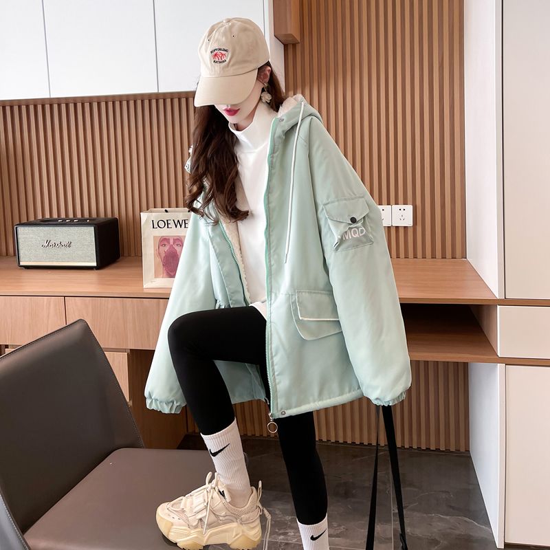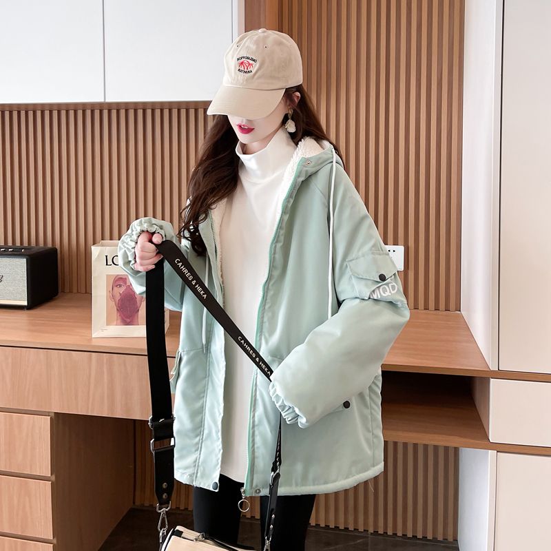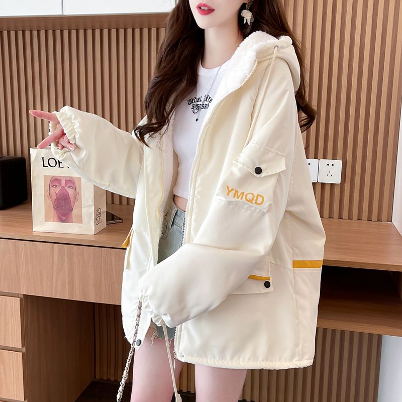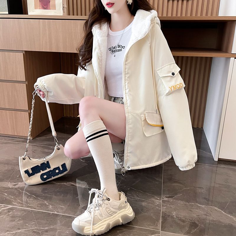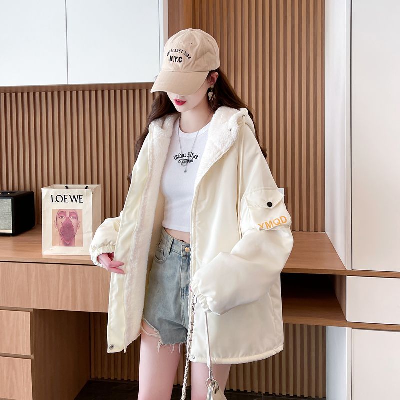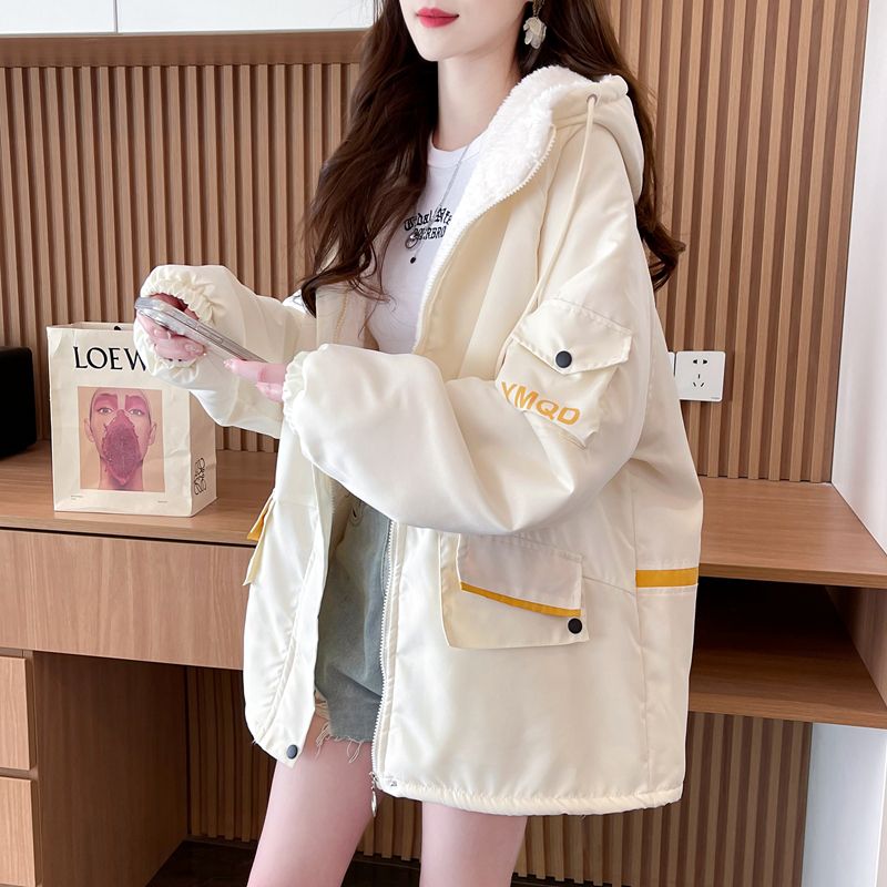 实拍外小牛津内冰岛绒加绒加厚连帽工装外套女秋冬季新款