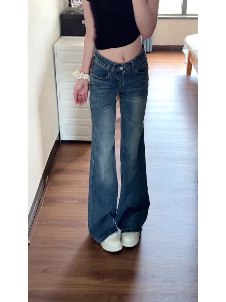美式复古低腰复古辣妹微喇牛仔裤女2025秋季新款宽松垂感拖地裤潮