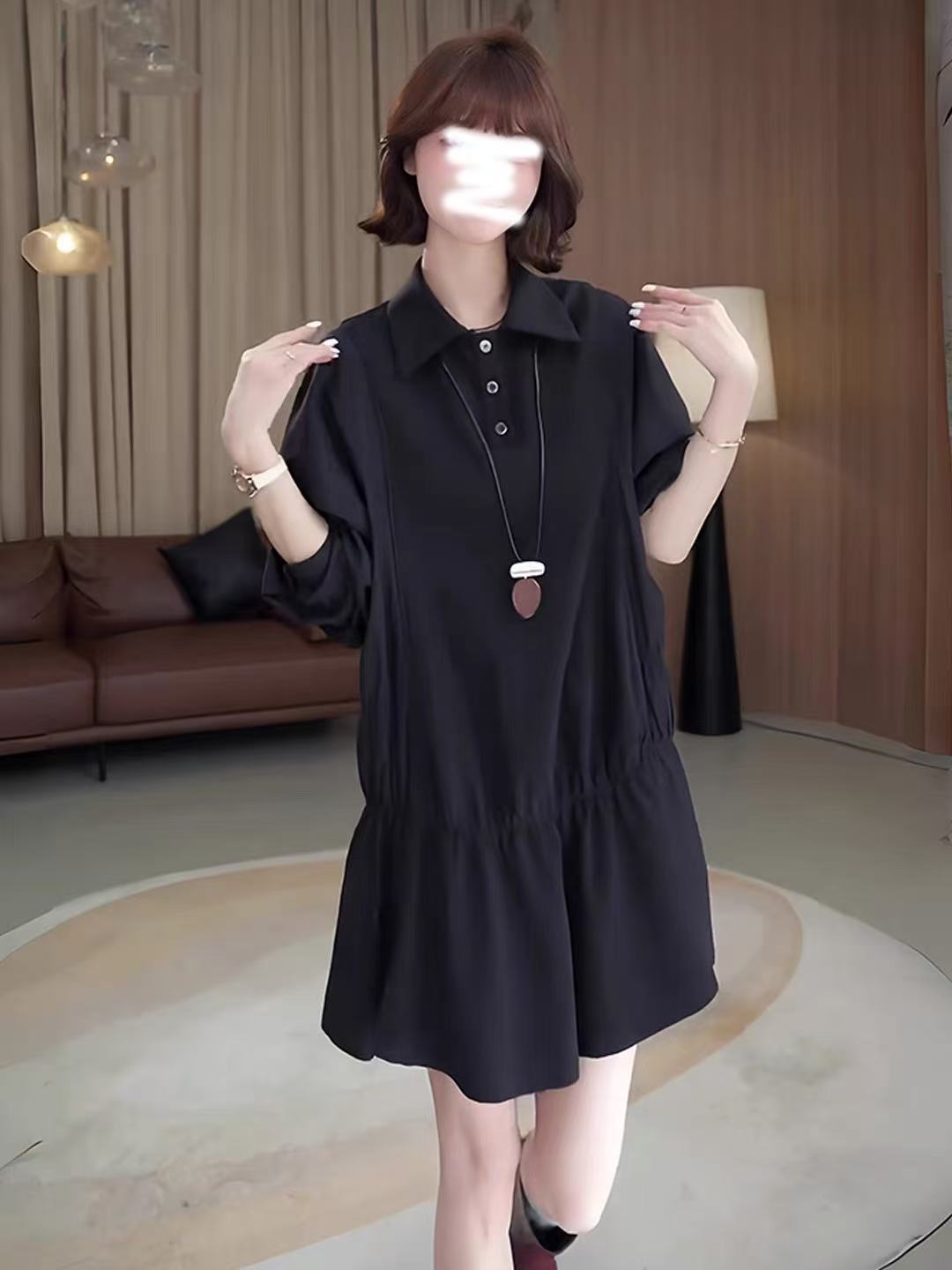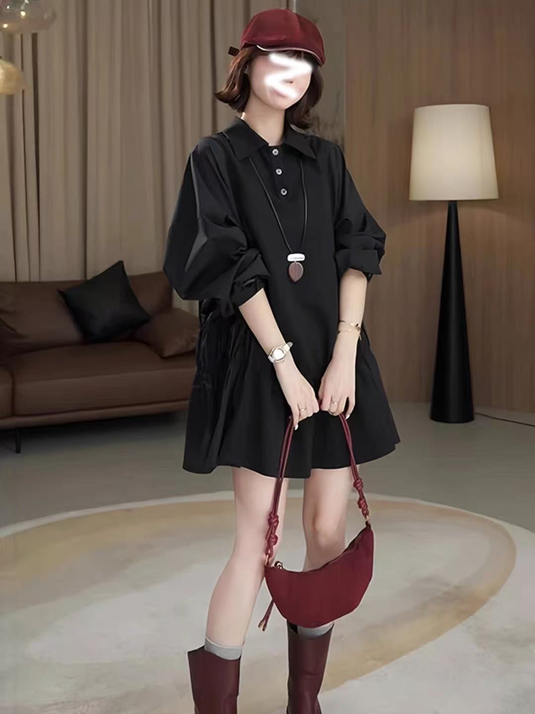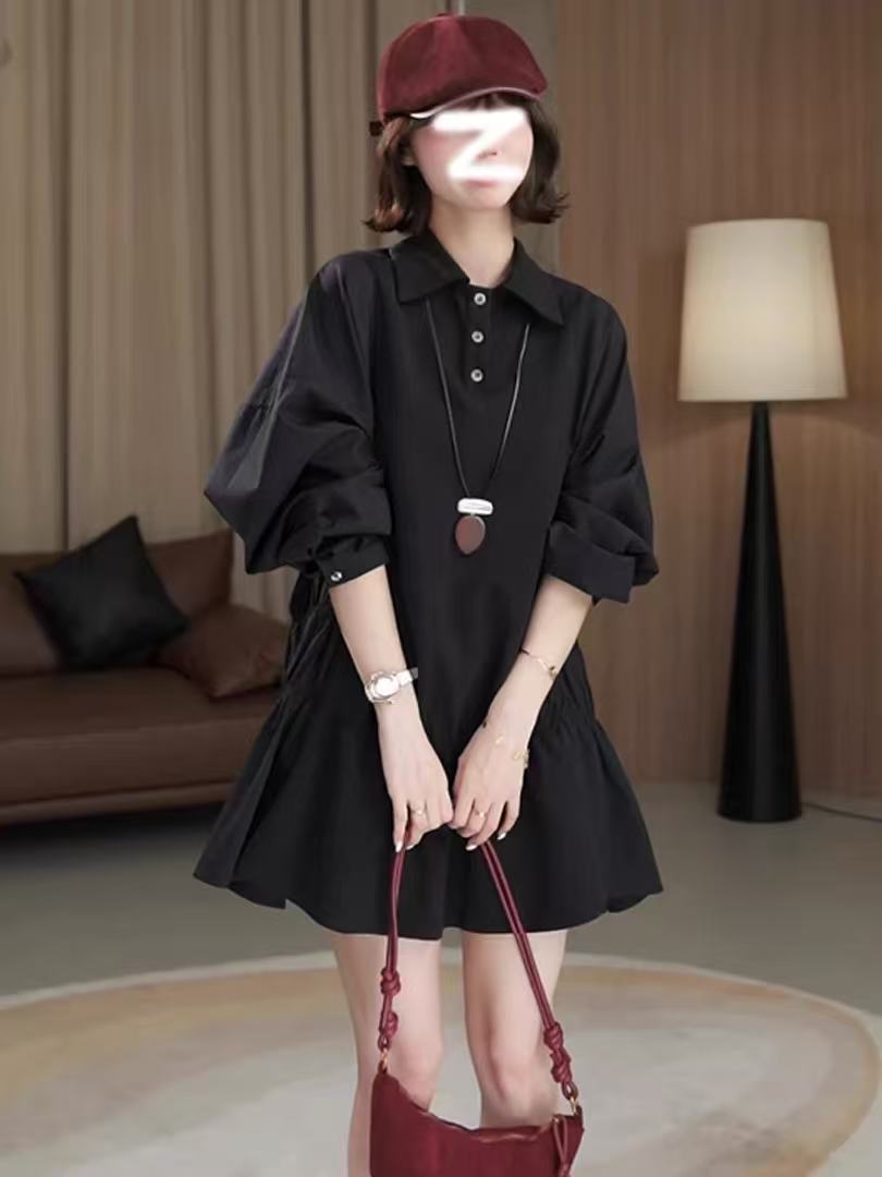 巨好看的早秋连衣裙女2025年新款法式气质拼接中长款黑色衬衫裙子