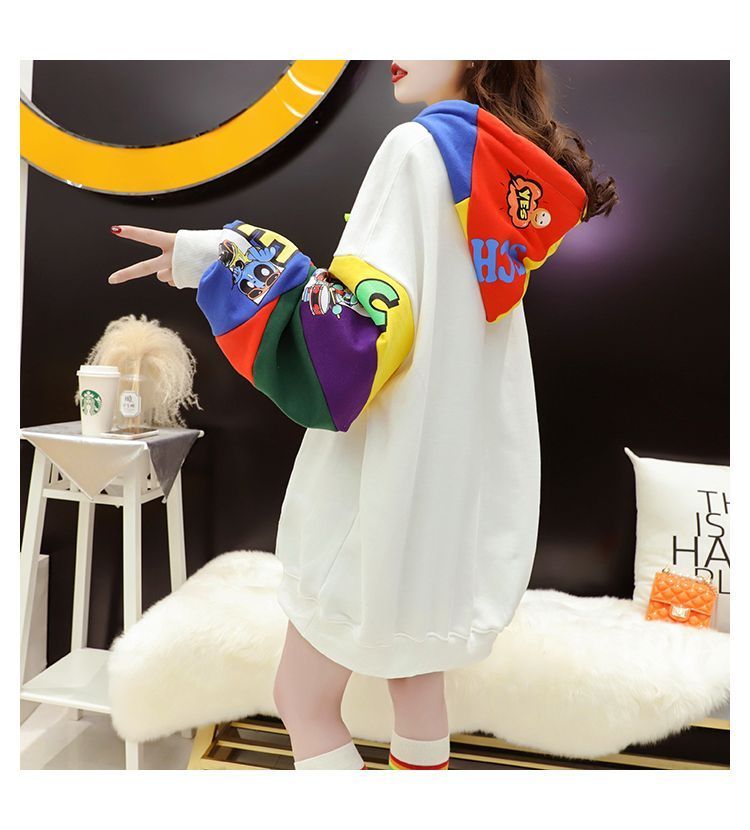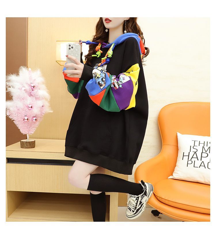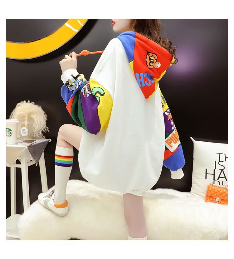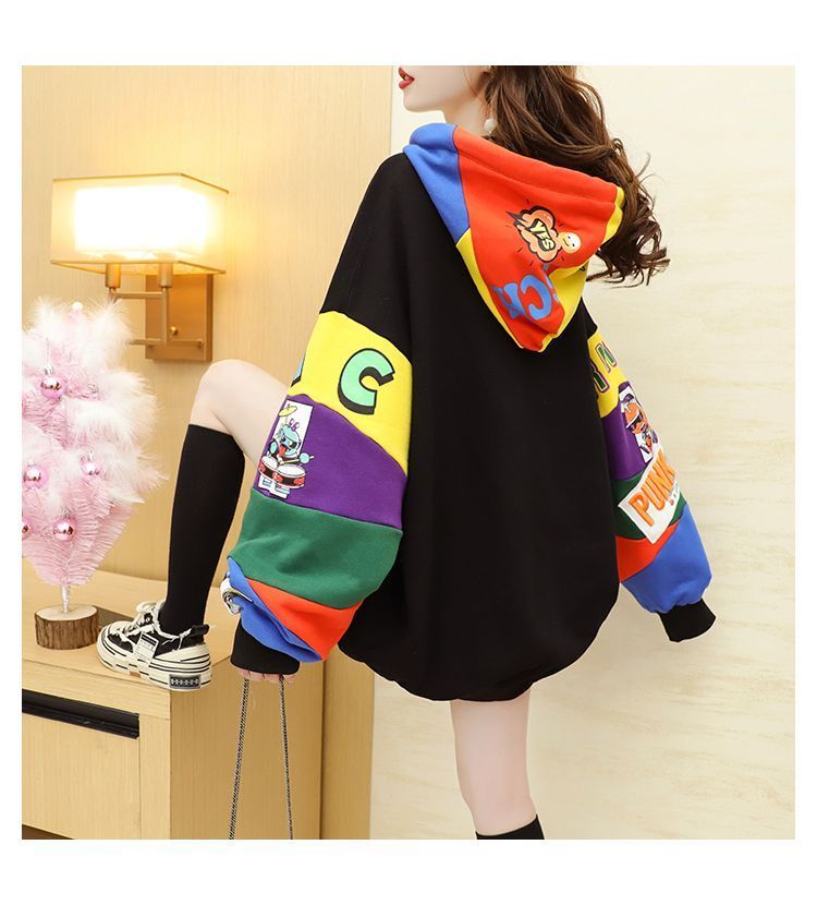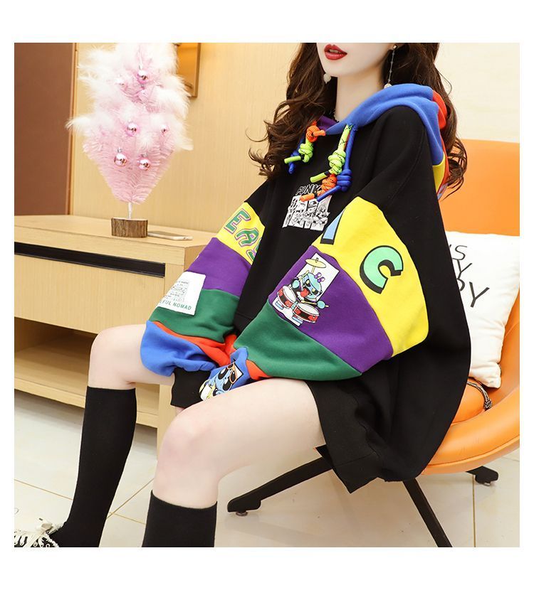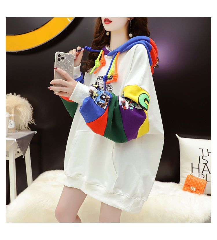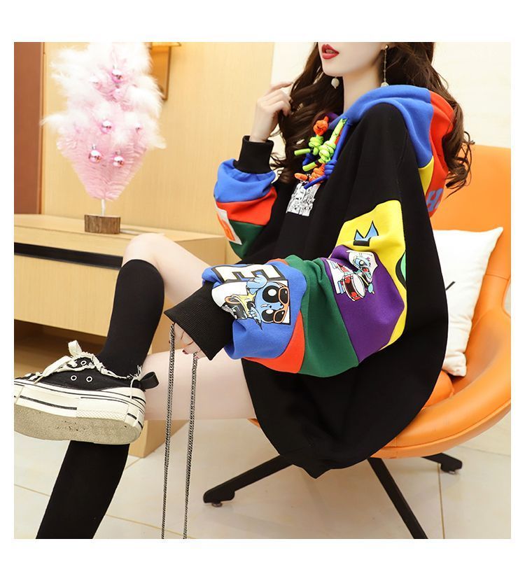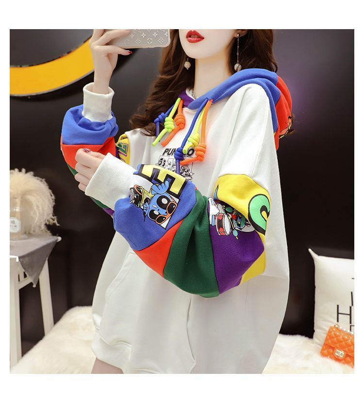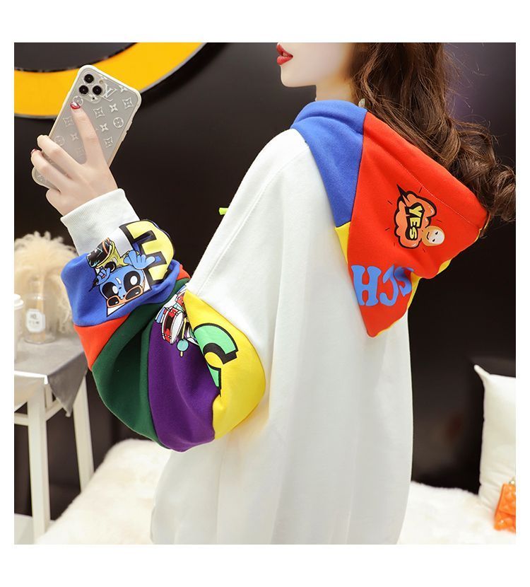 韩版卡通拼色连帽长袖卫衣女2025春秋季薄款设计感慵懒风宽松上衣