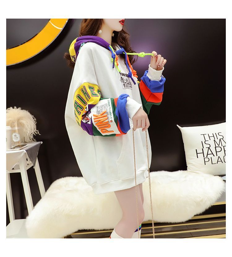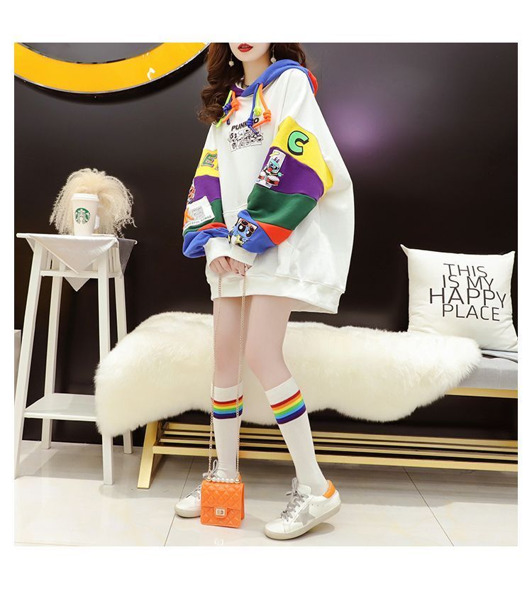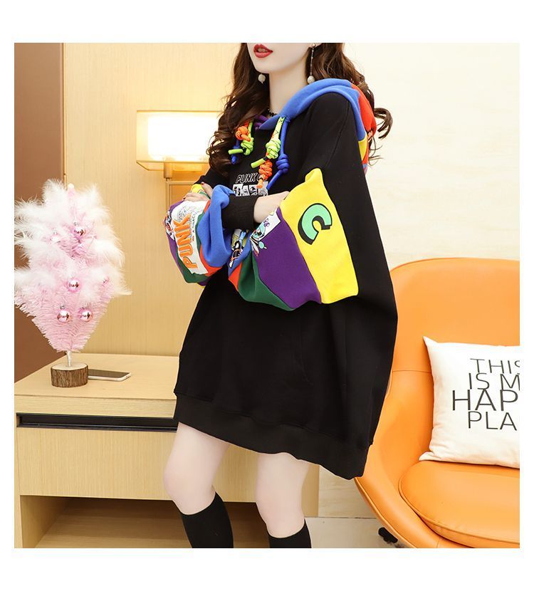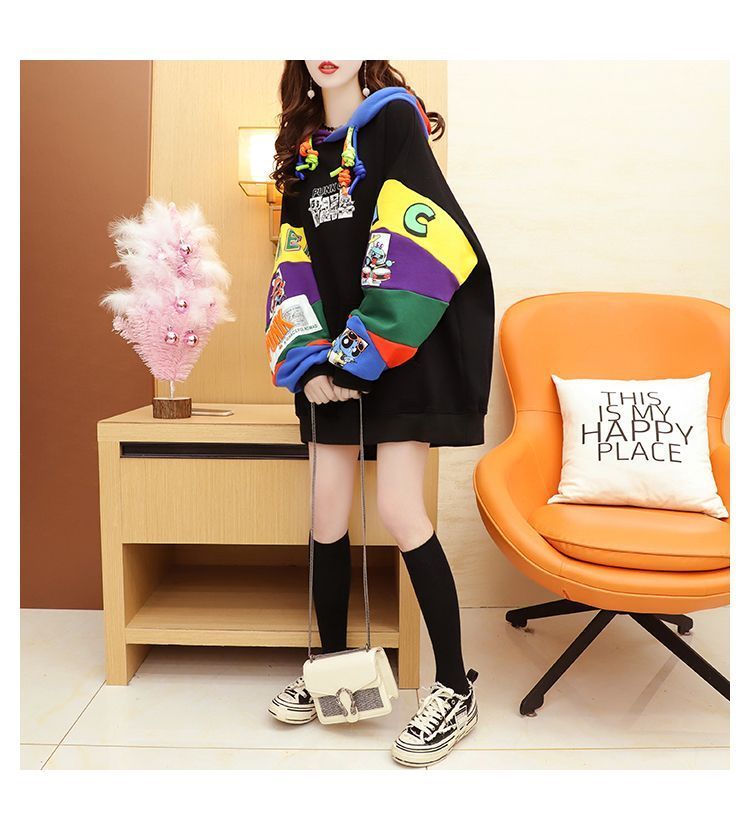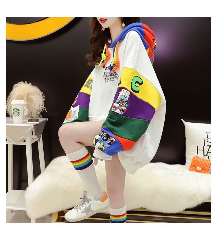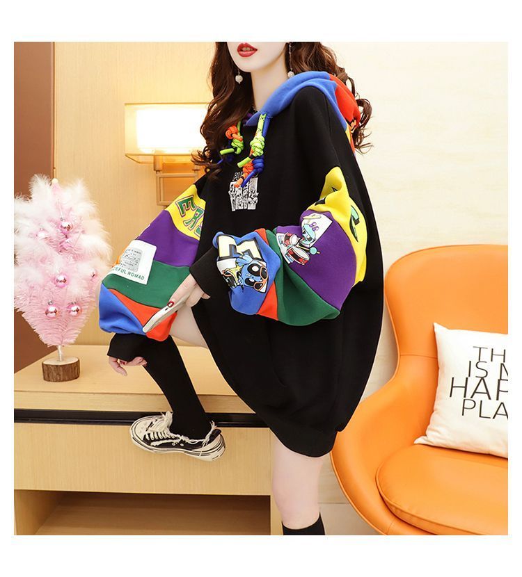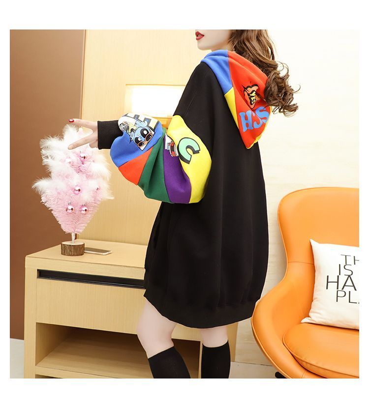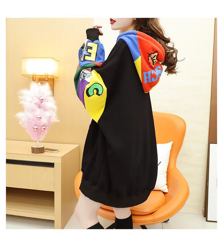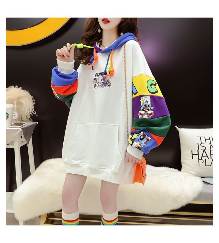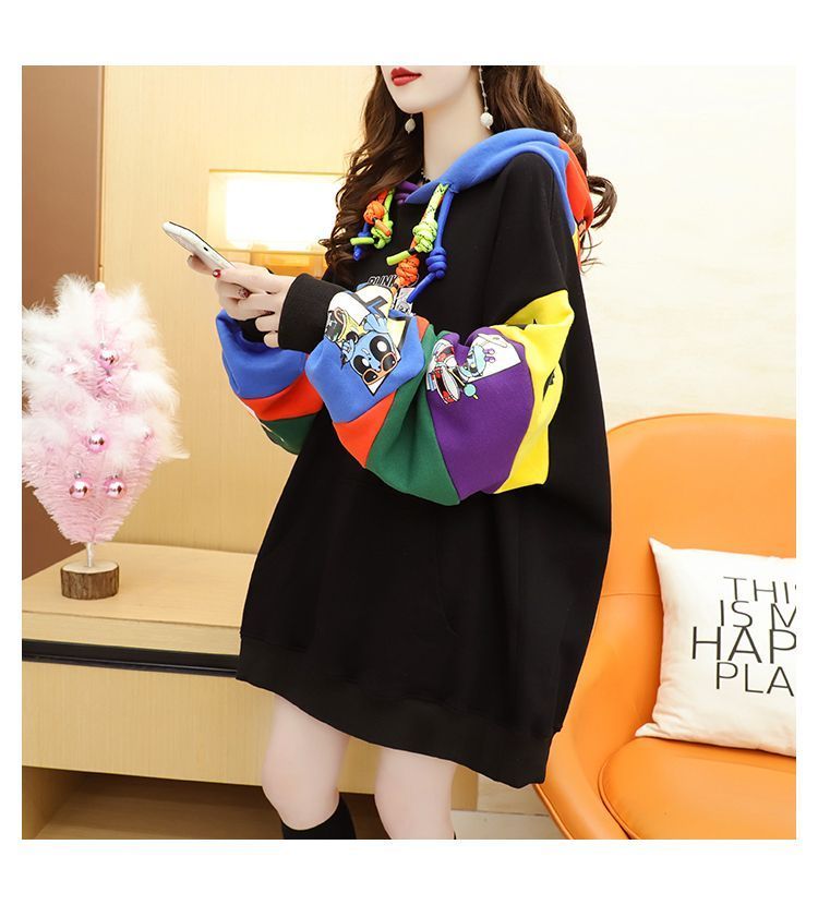 韩版卡通拼色连帽长袖卫衣女2025春秋季薄款设计感慵懒风宽松上衣