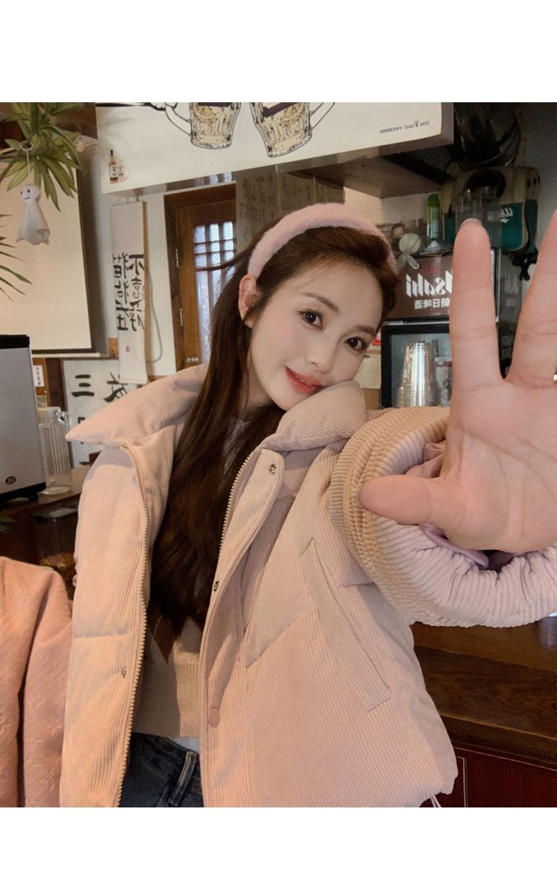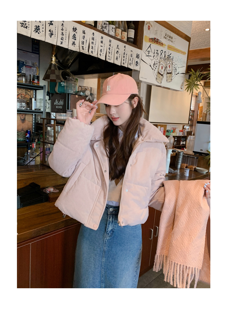 温柔软糯粉色翻领棉衣女冬季2025新款气质小个子加厚保暖棉服外套