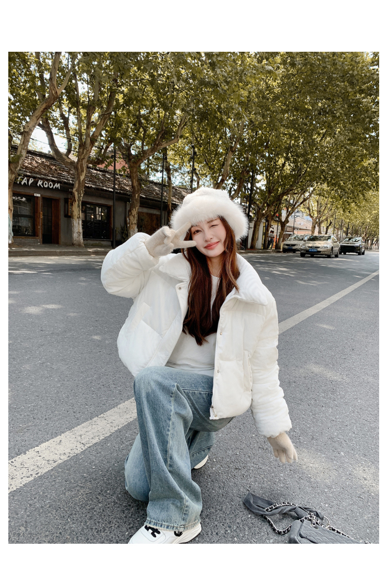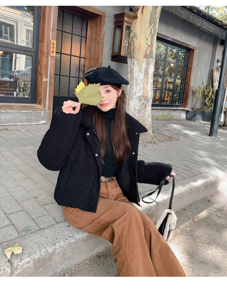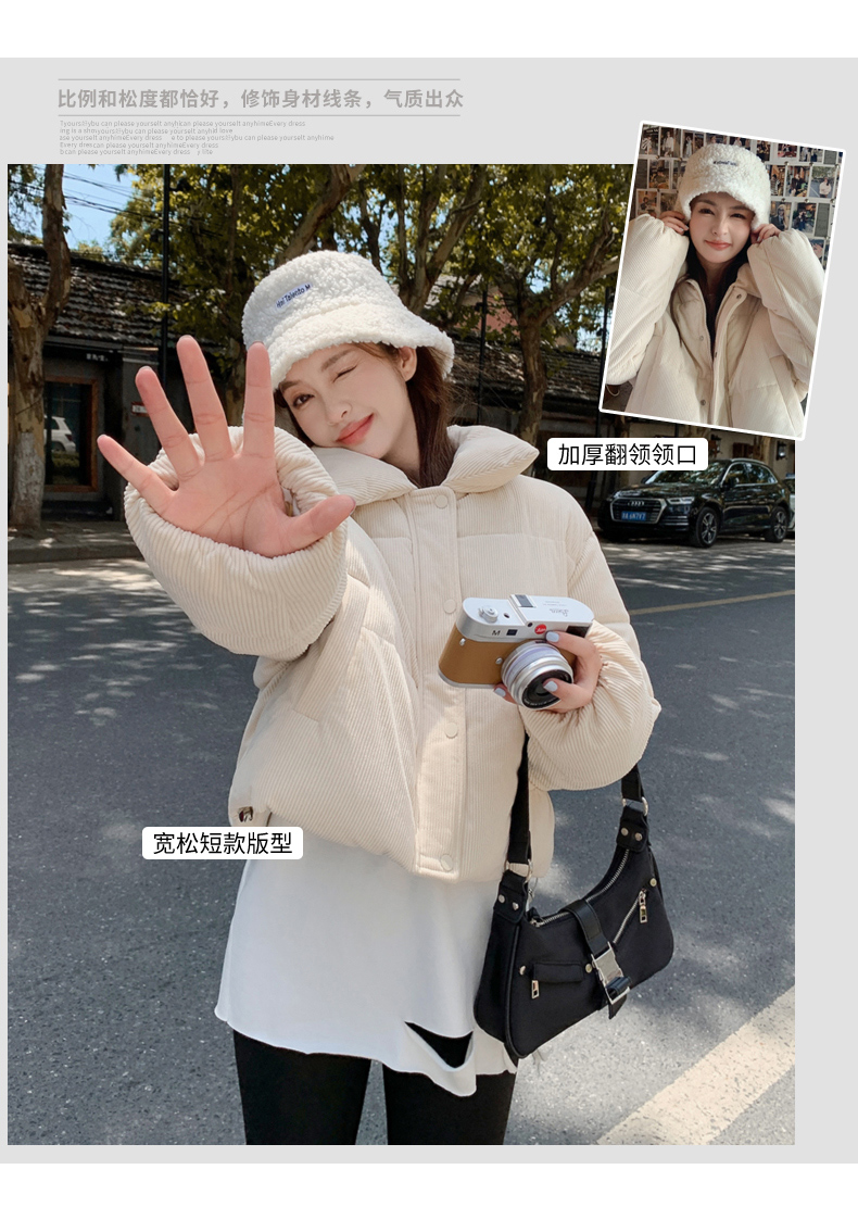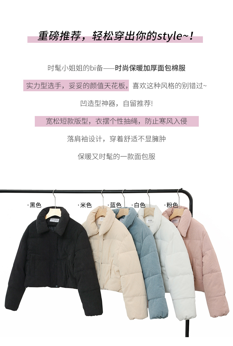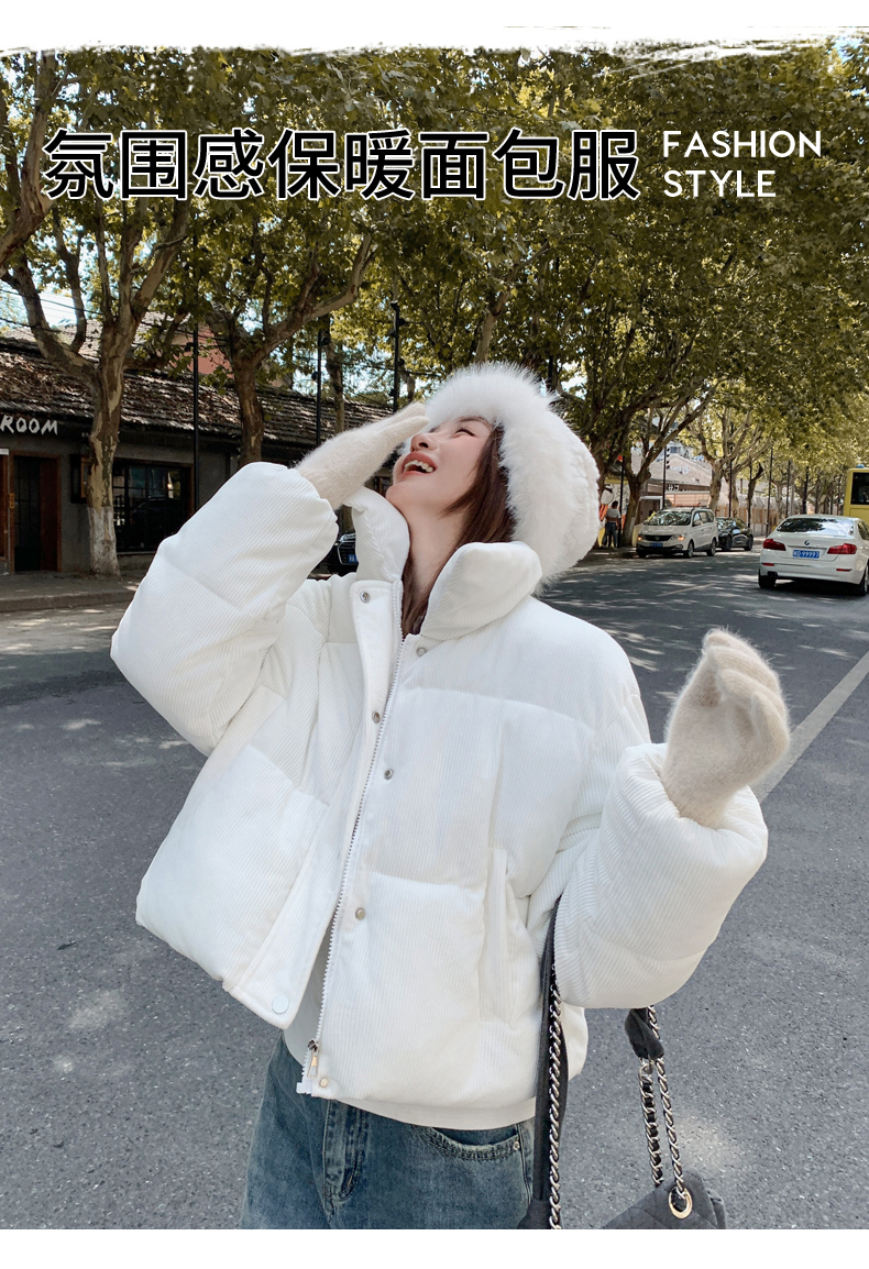 冬季新款加厚保暖面包服女减龄小个子条绒棉衣棉服棉袄小外套