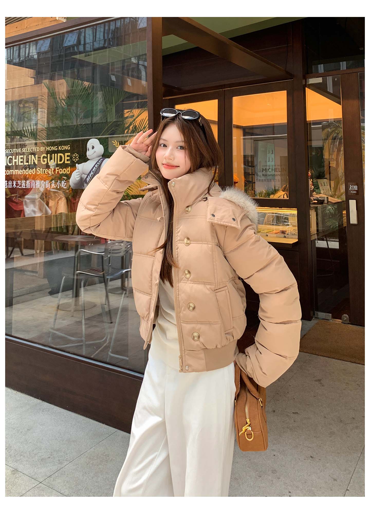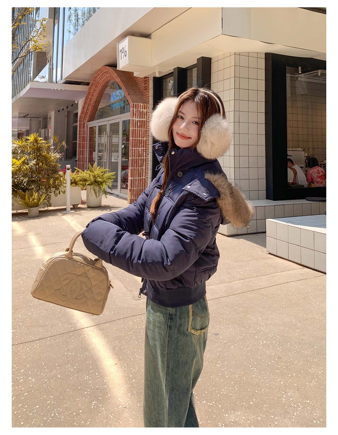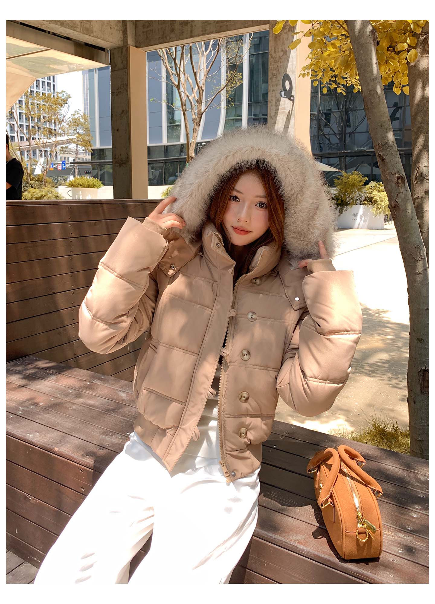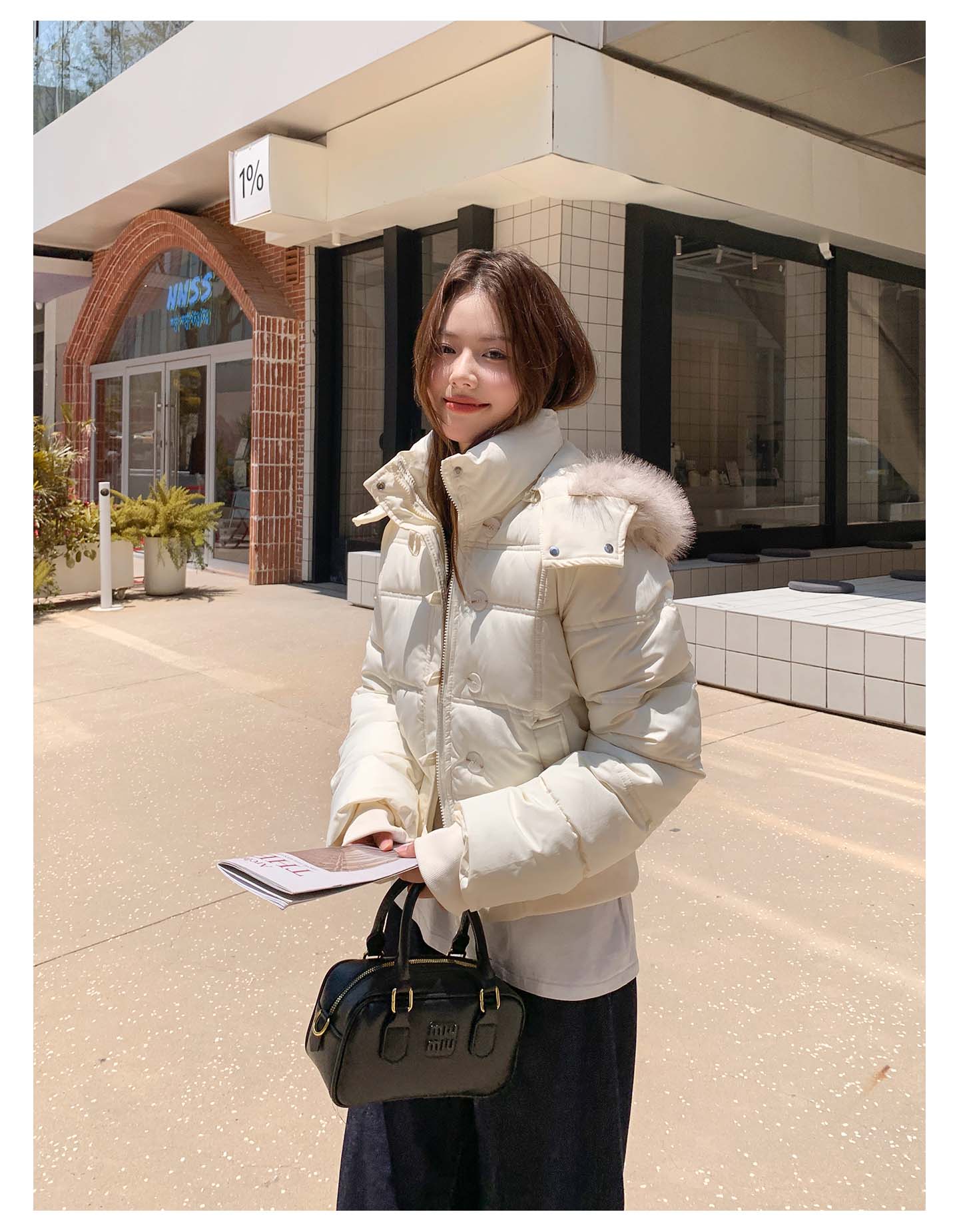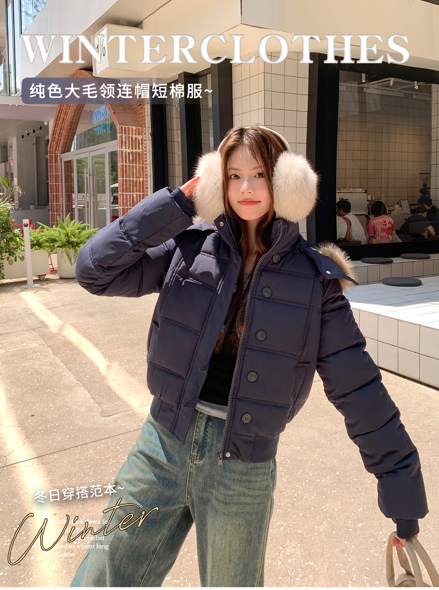 美式复古宽松毛领加厚可拆卸棉服外套女冬短款羽绒派克服上衣