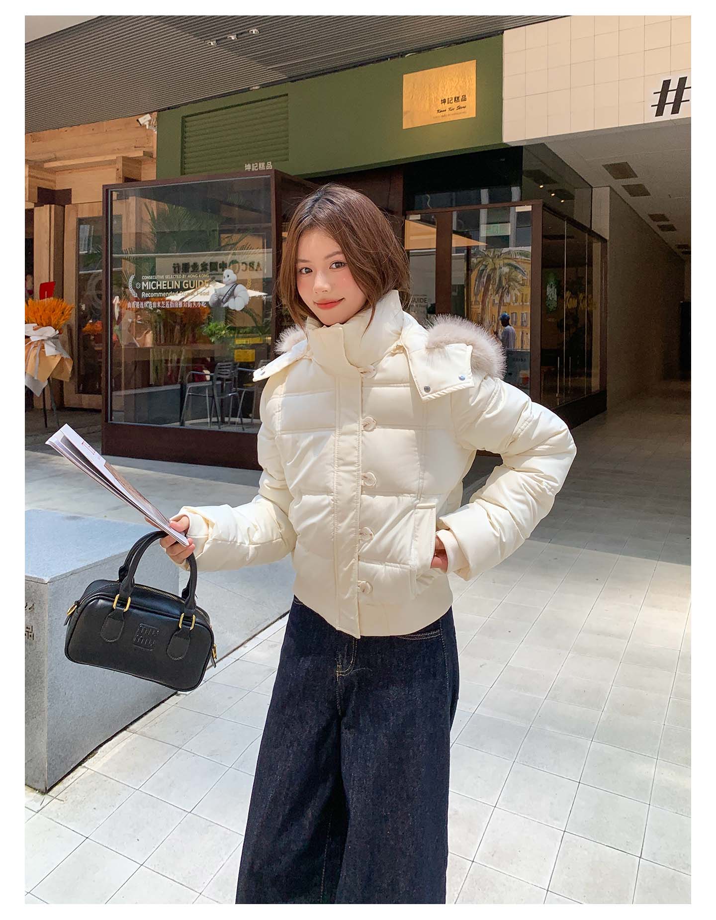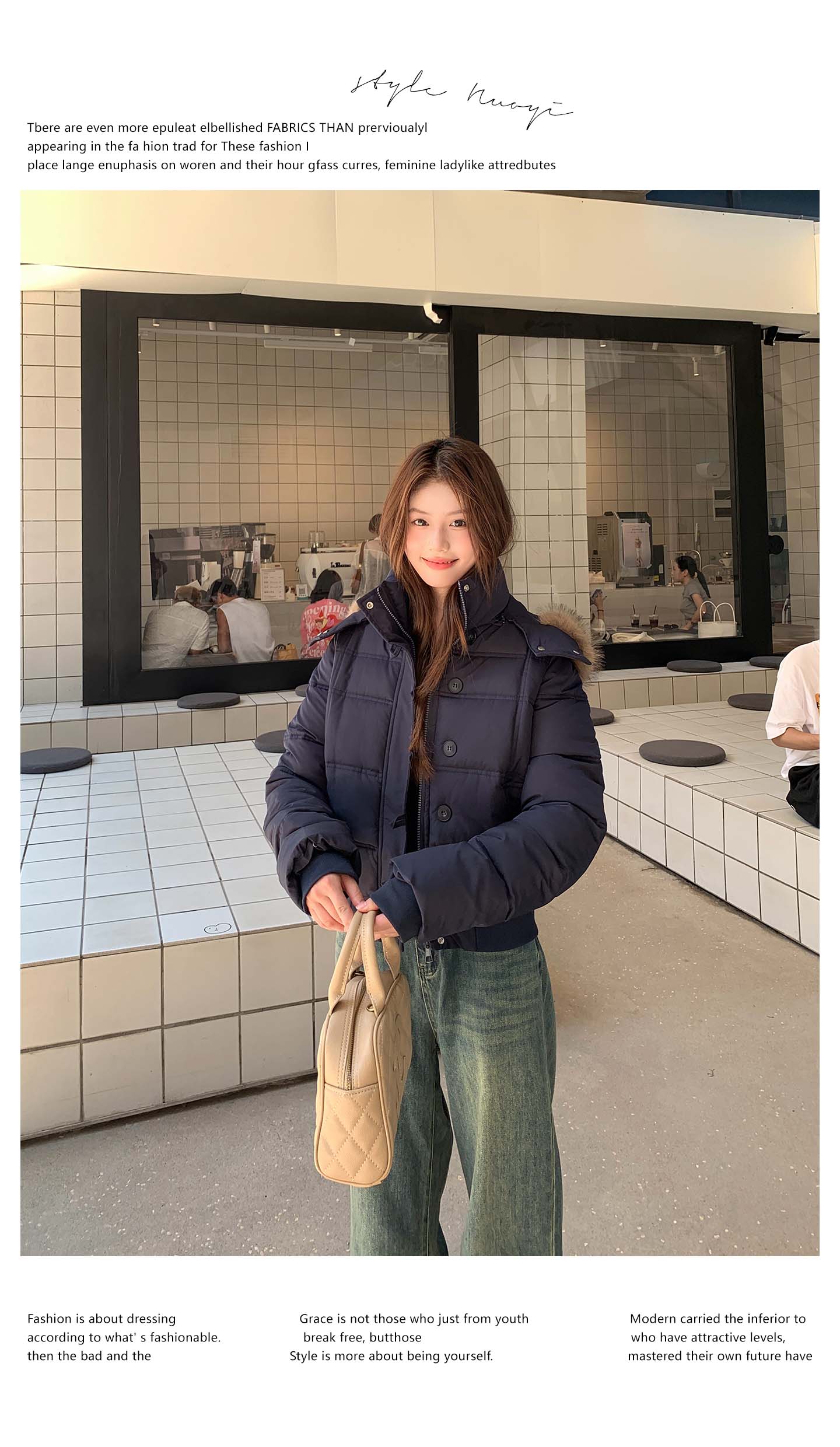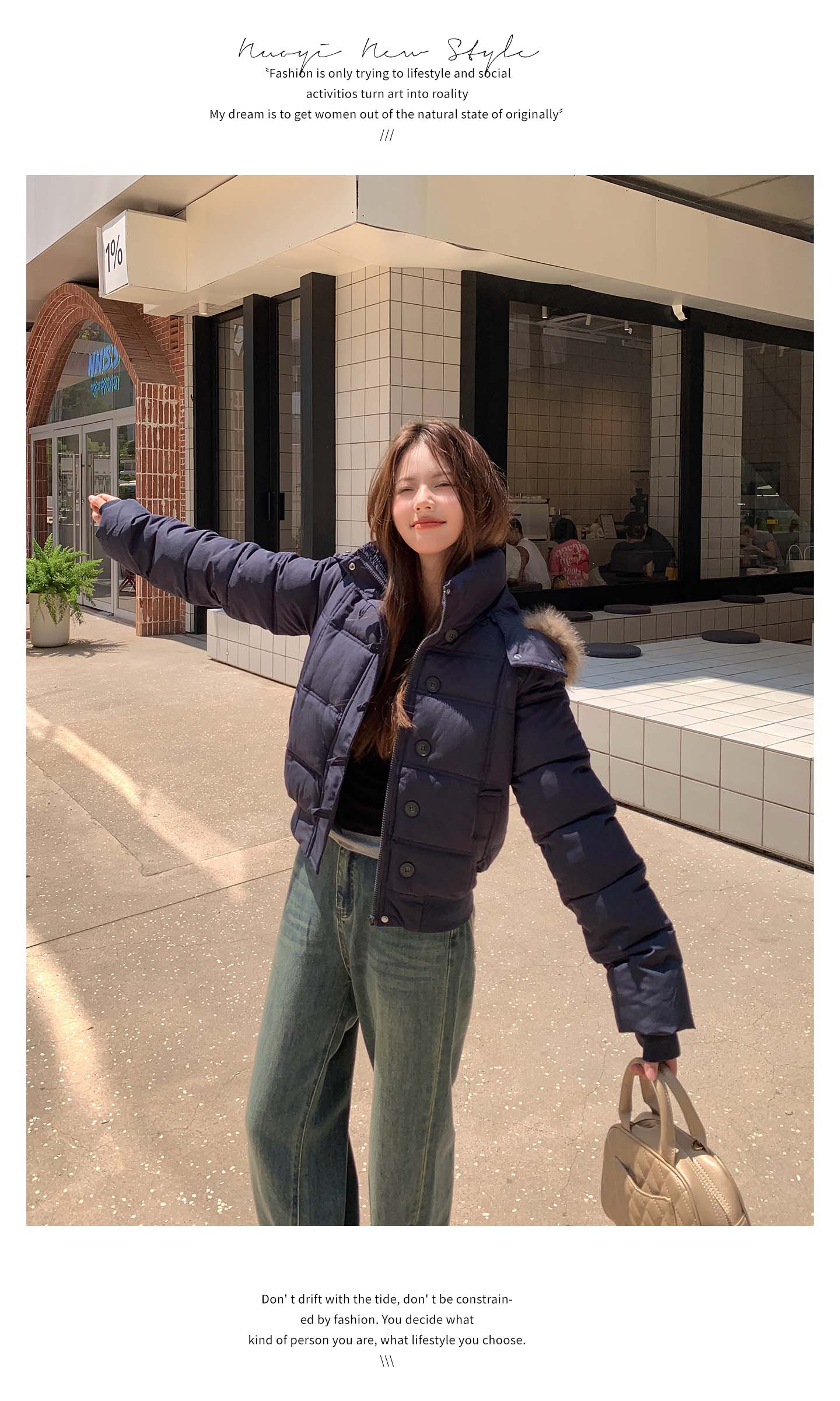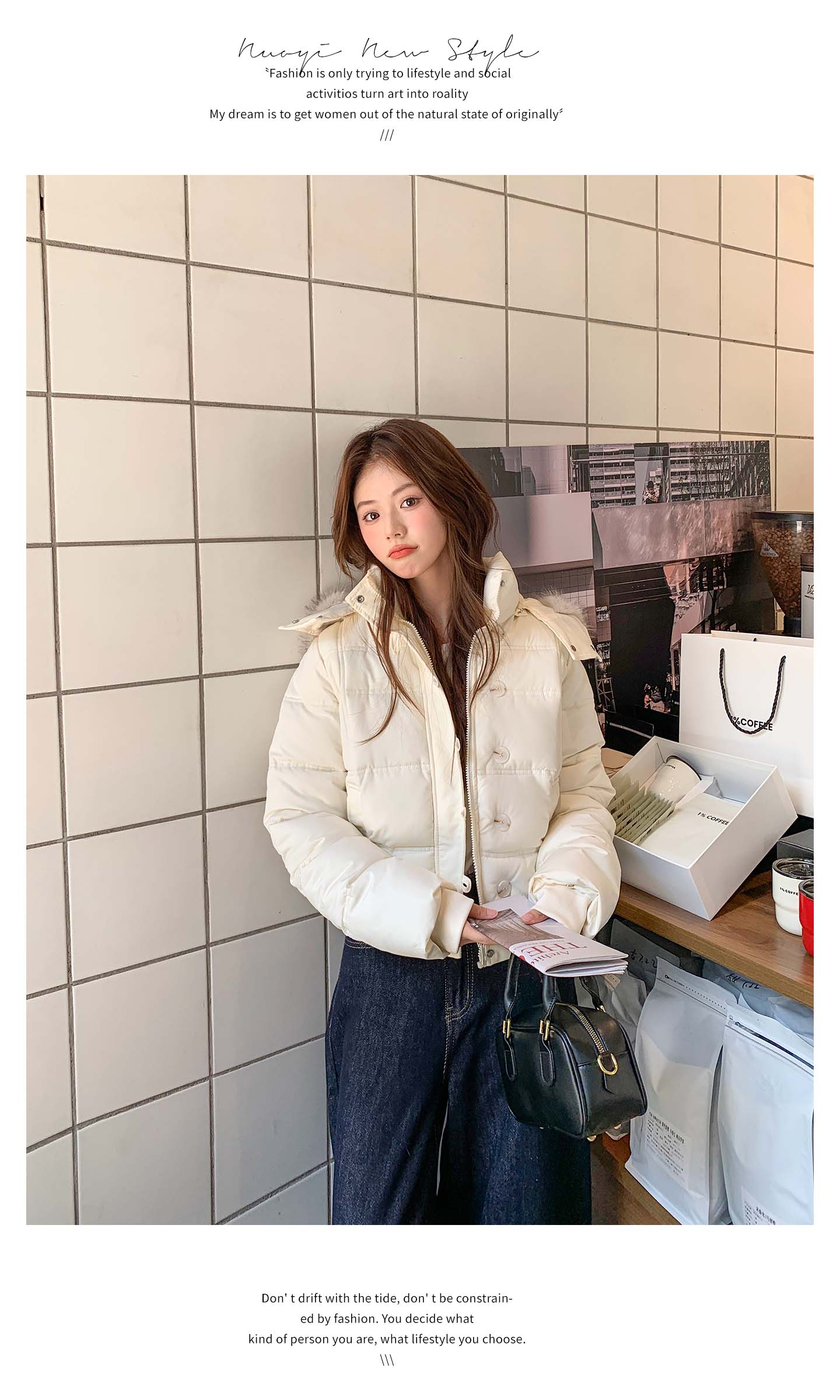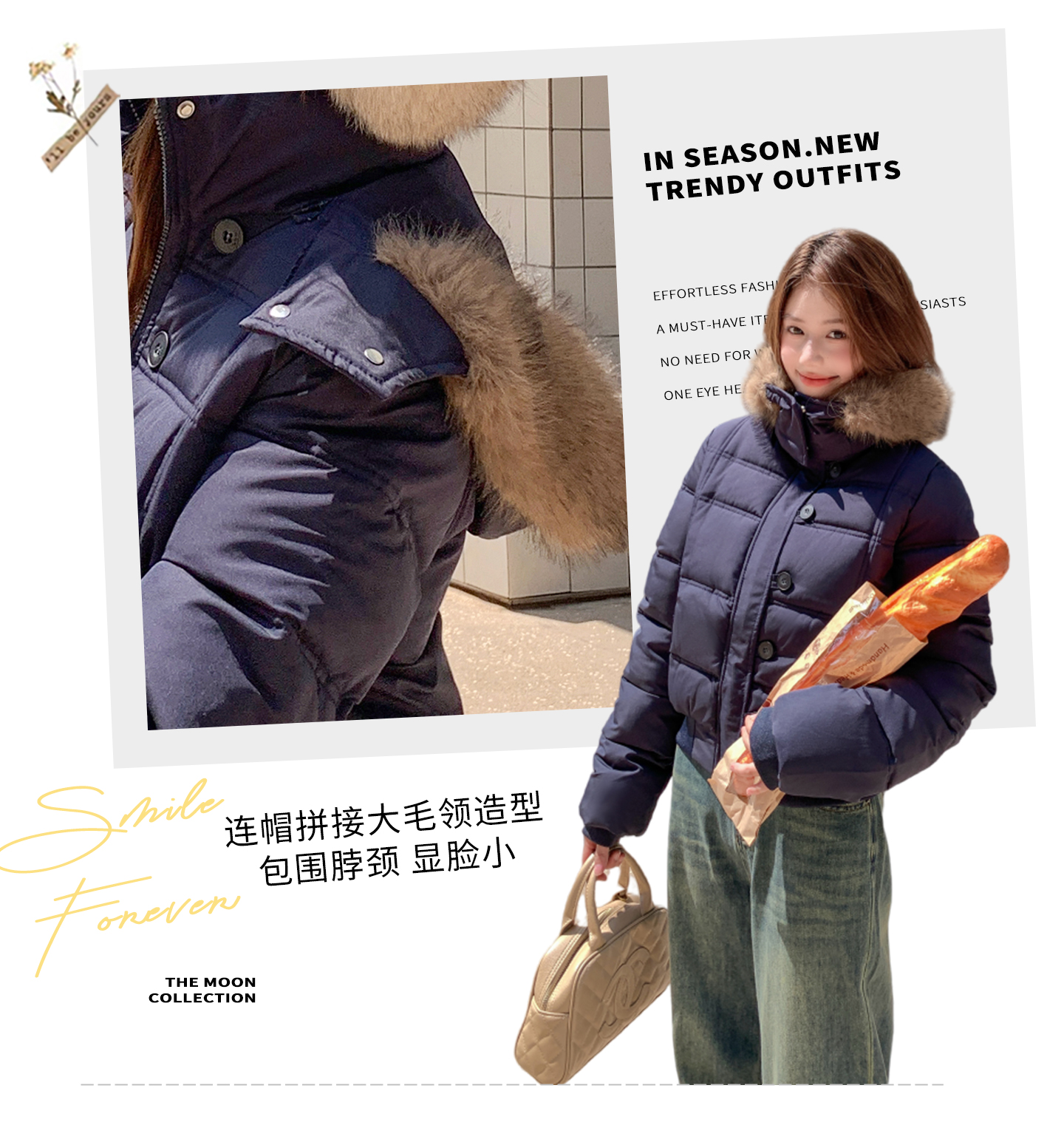 美式复古宽松毛领加厚可拆卸棉服外套女冬短款羽绒派克服上衣